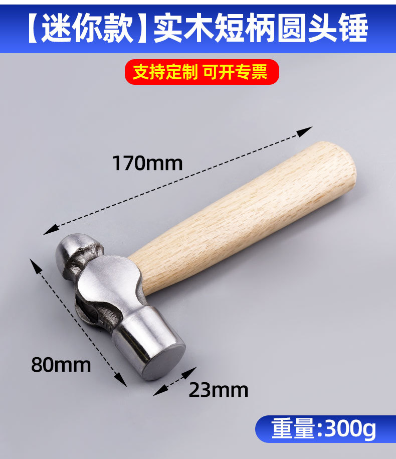 • 1276, [미니] 원목 짧은 손잡이 둥근 머리 망치, 0.3kg