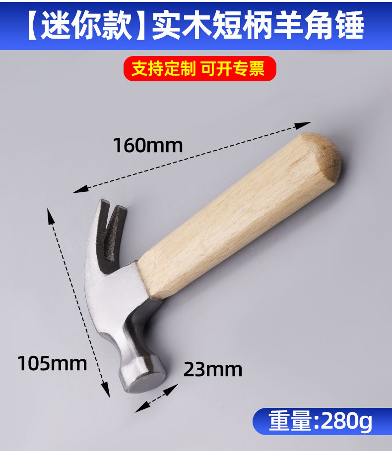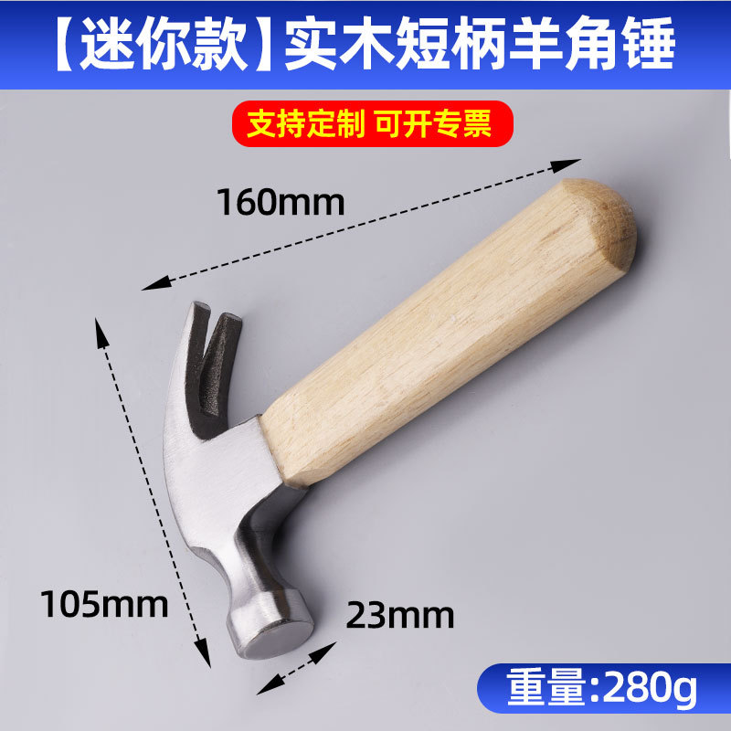 • 1275, [미니모델] 원목 짧은 손잡이 클로 해머, 0.28kg