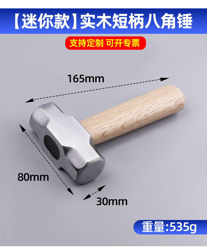 • 1277, [미니모델] 원목 단자루 팔각망치, 0.54kg