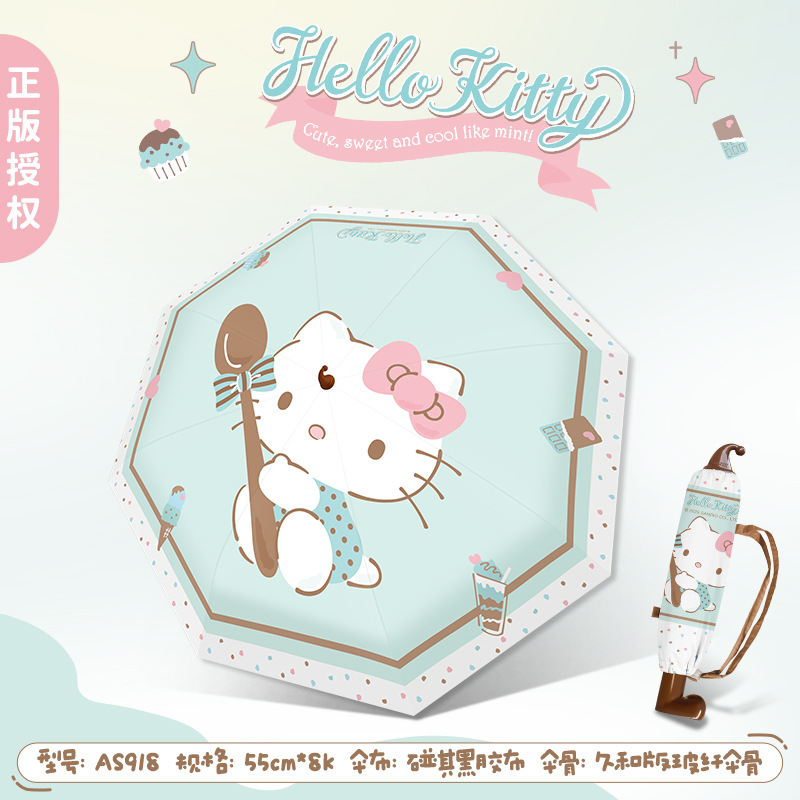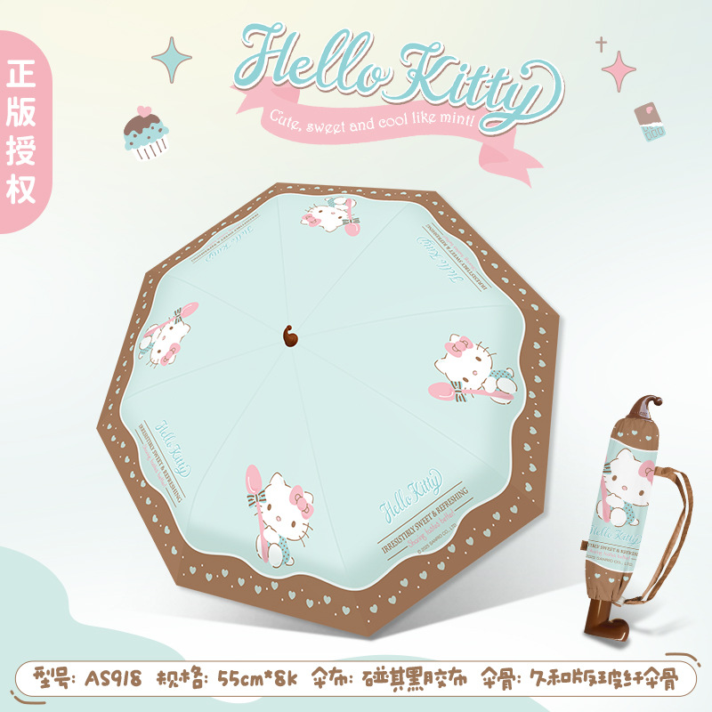 KT 고양이 우산 검은 접착제 차양 양산 이중 목적 맑고 비오는 자외선 방지 3 배 8 골 수동 빨간 부츠 우산