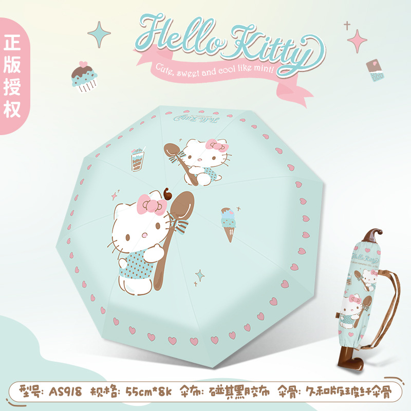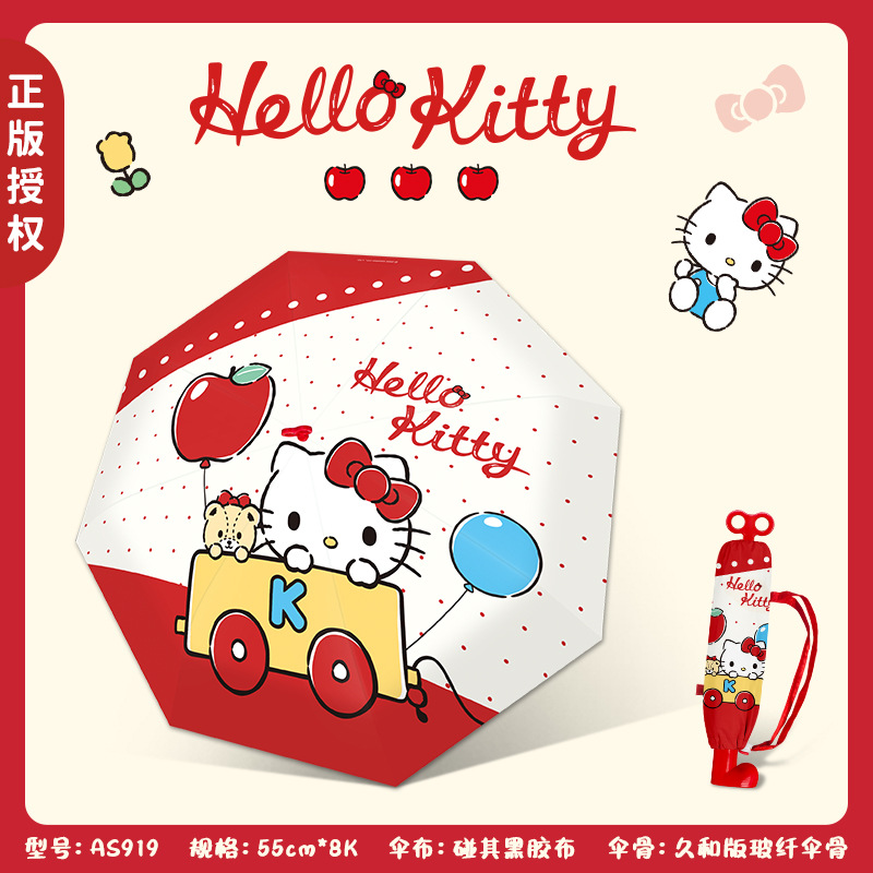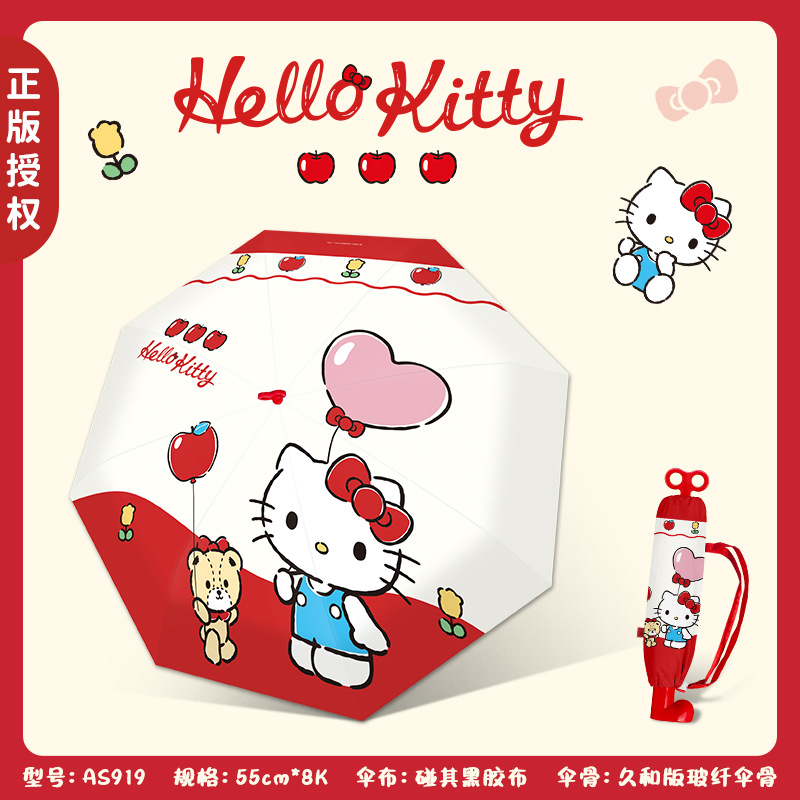 KT 고양이 우산 검은 접착제 차양 양산 이중 목적 맑고 비오는 자외선 방지 3 배 8 골 수동 빨간 부츠 우산스토어 가기