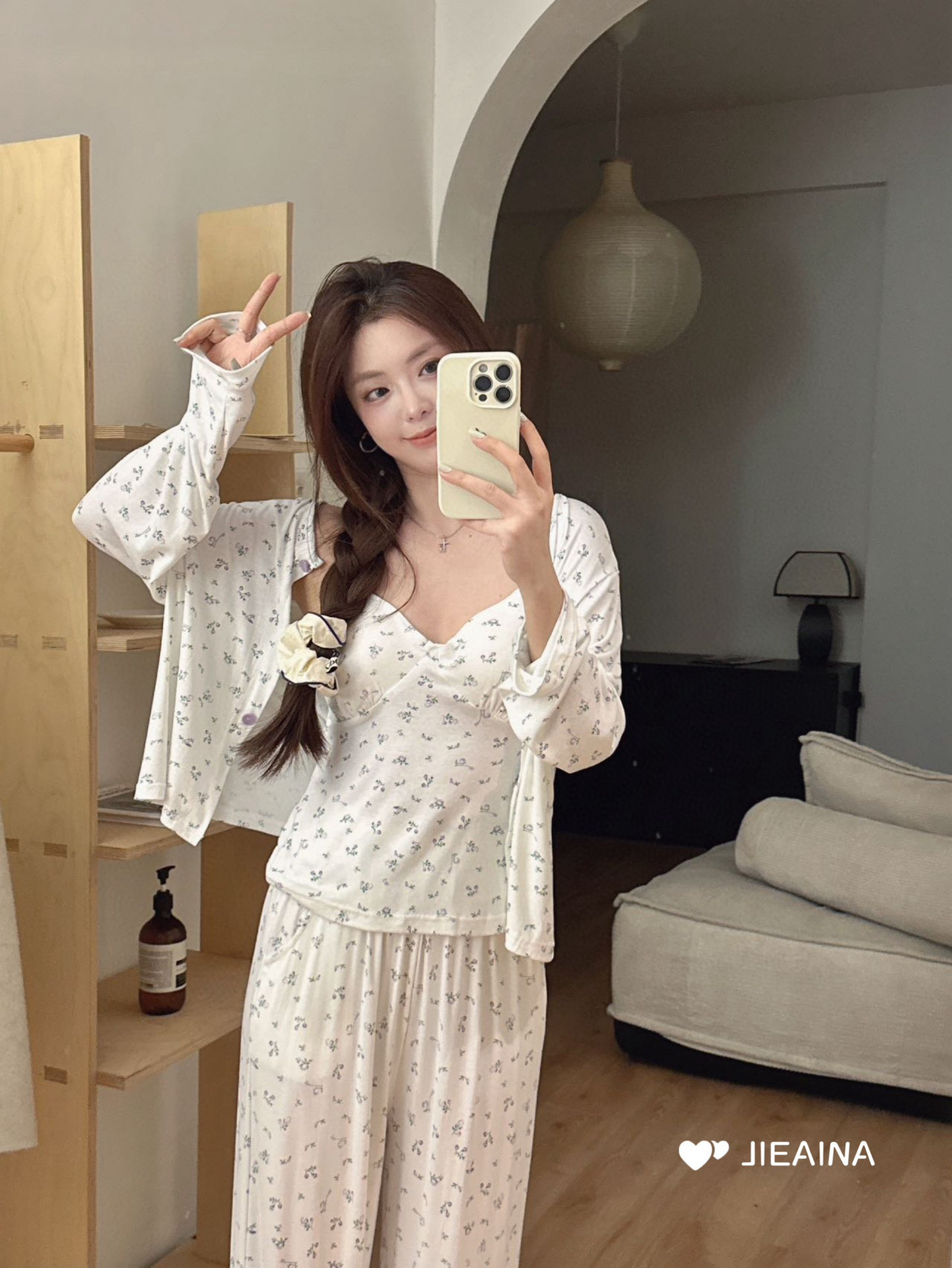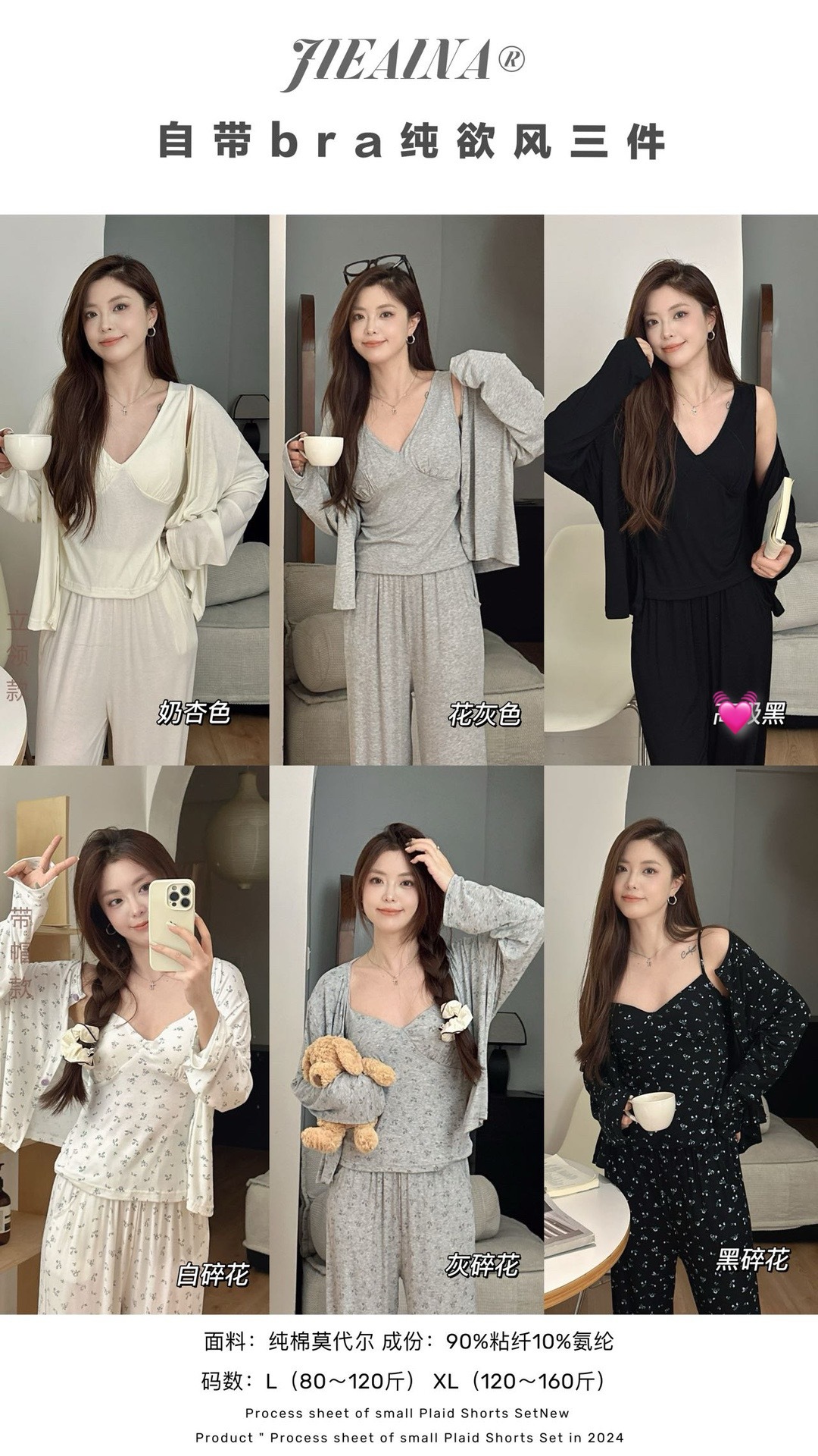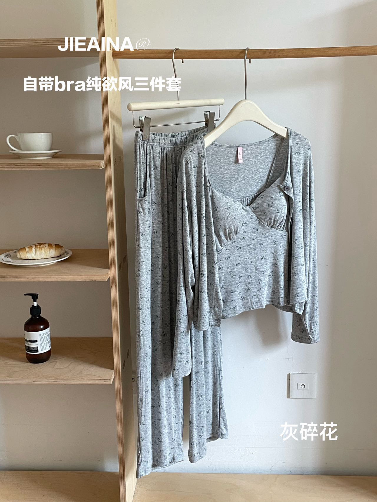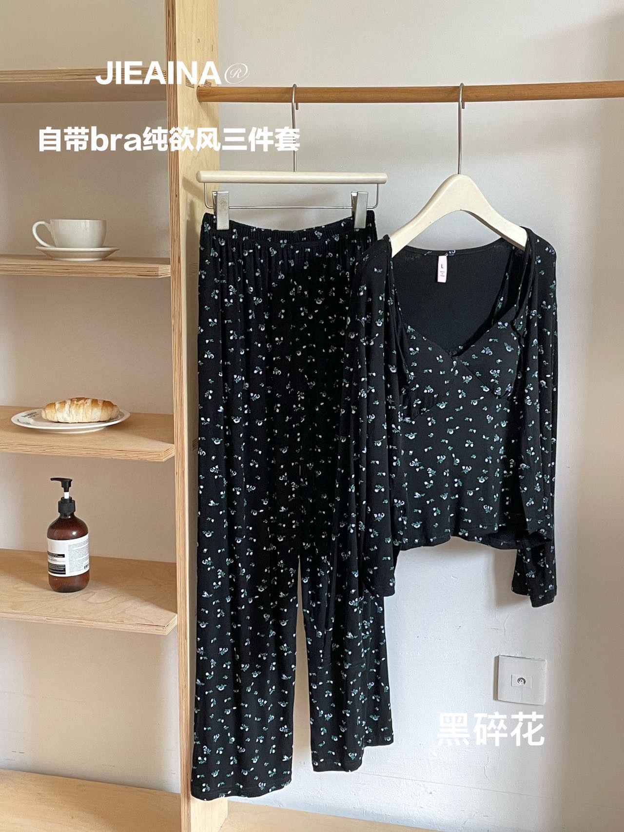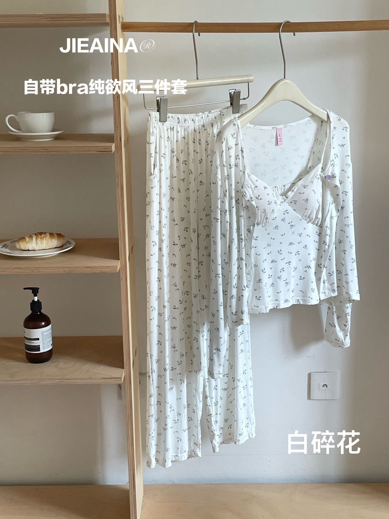 WD211 # 브라 순수한 욕망 바람 작은 꽃 슬링 3 조각 세트 여성의 봄과 가을 긴 소매 모달 홈 웨어스토어 가기