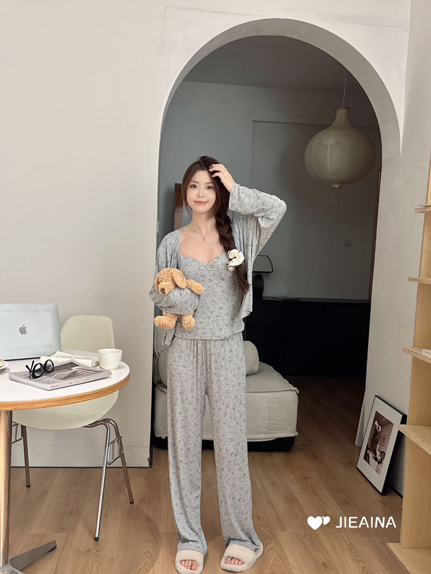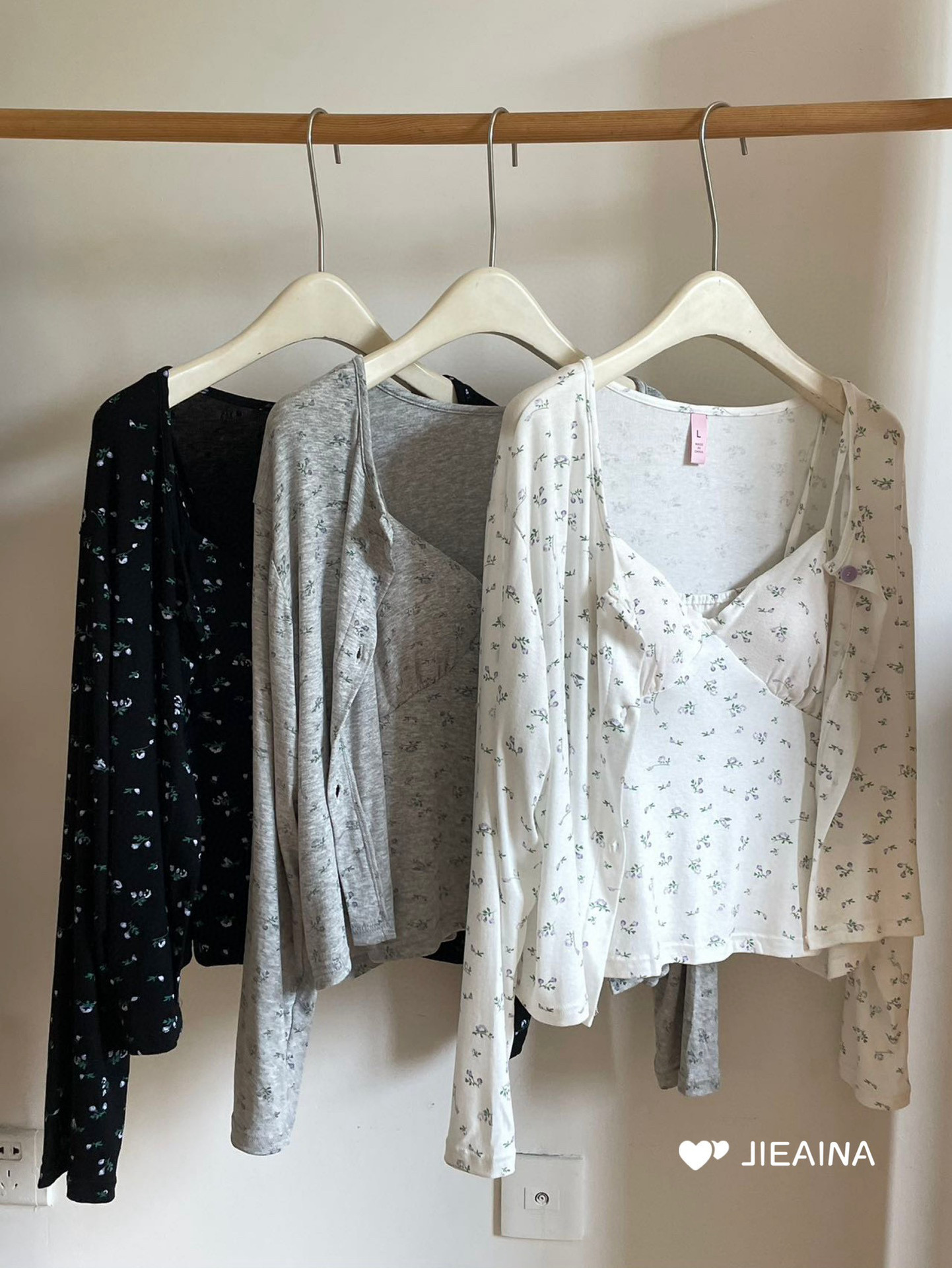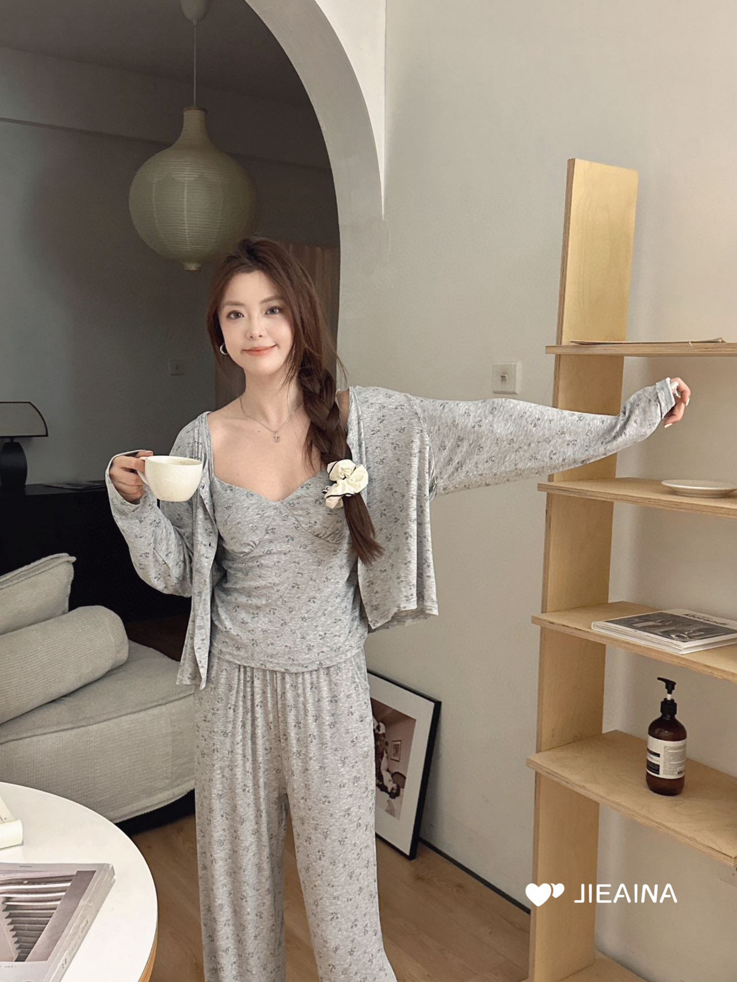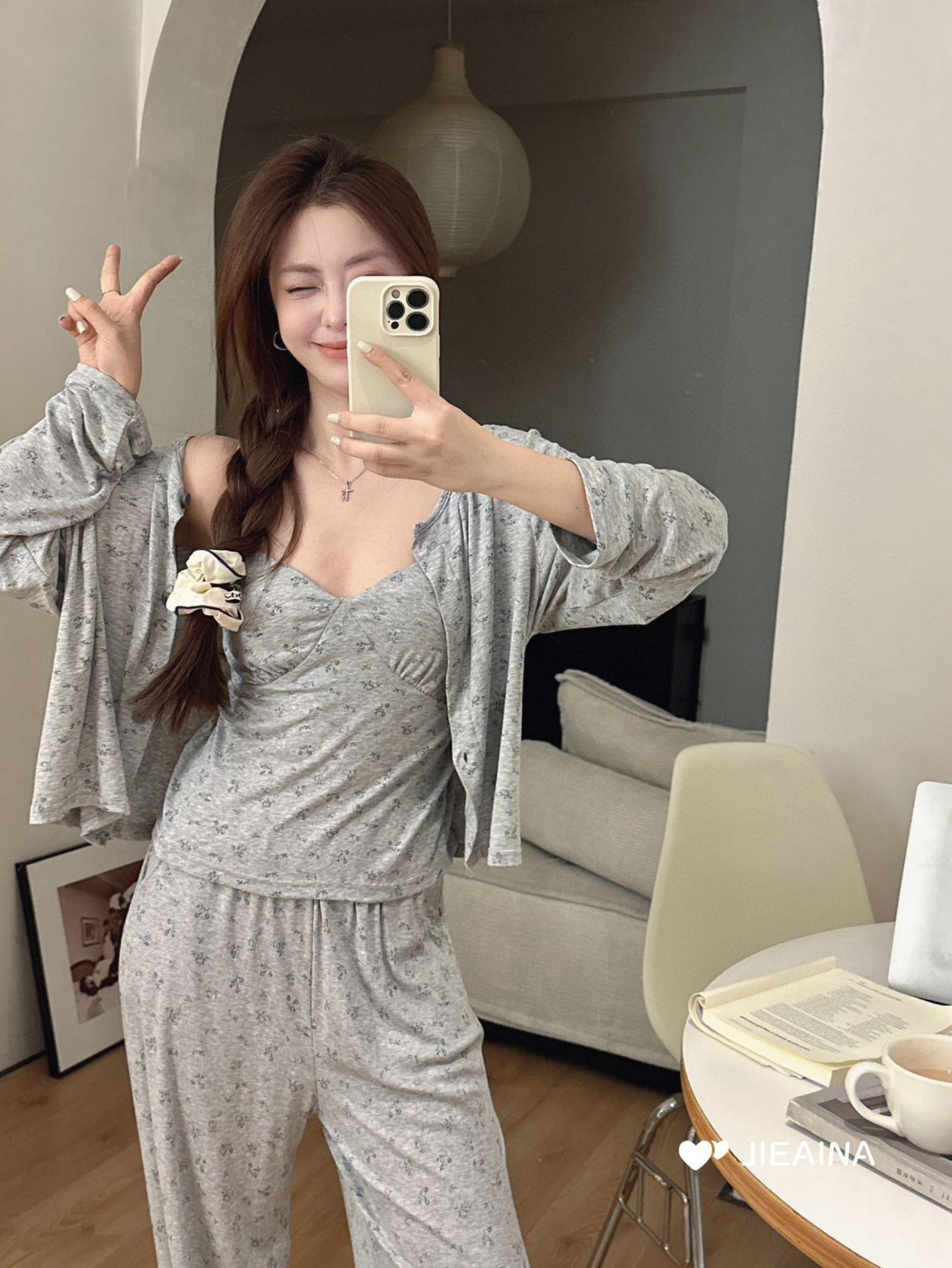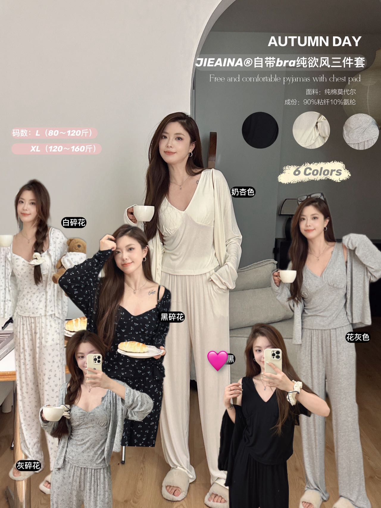 WD211 # 브라 순수한 욕망 바람 작은 꽃 슬링 3 조각 세트 여성의 봄과 가을 긴 소매 모달 홈 웨어스토어 가기