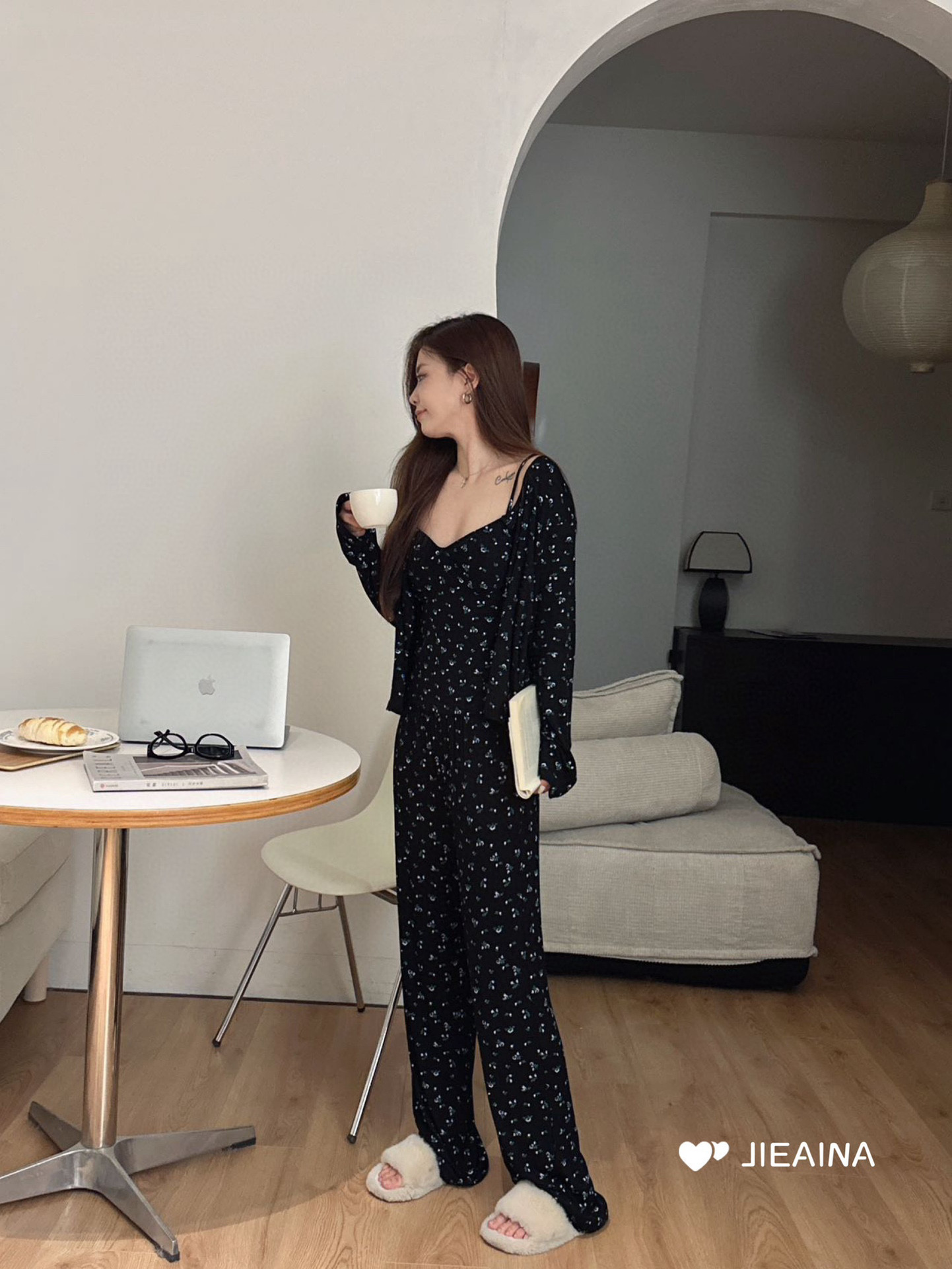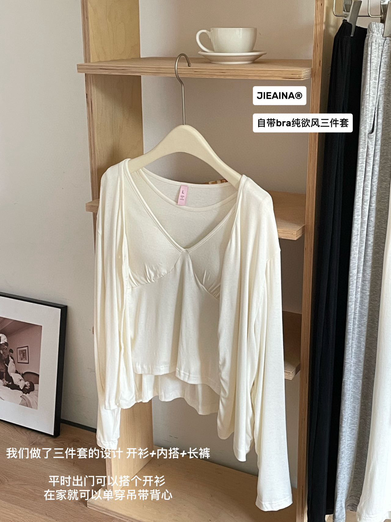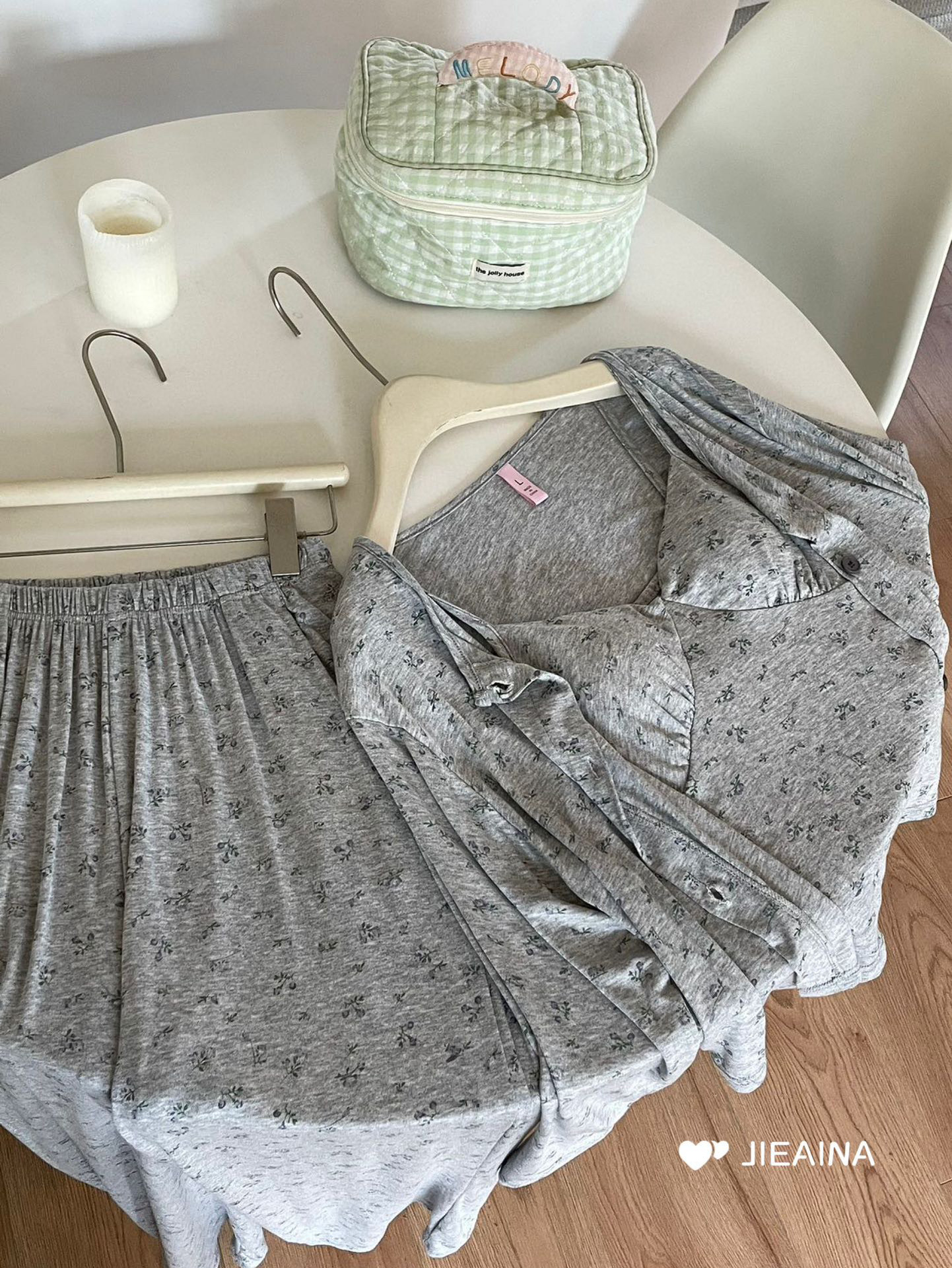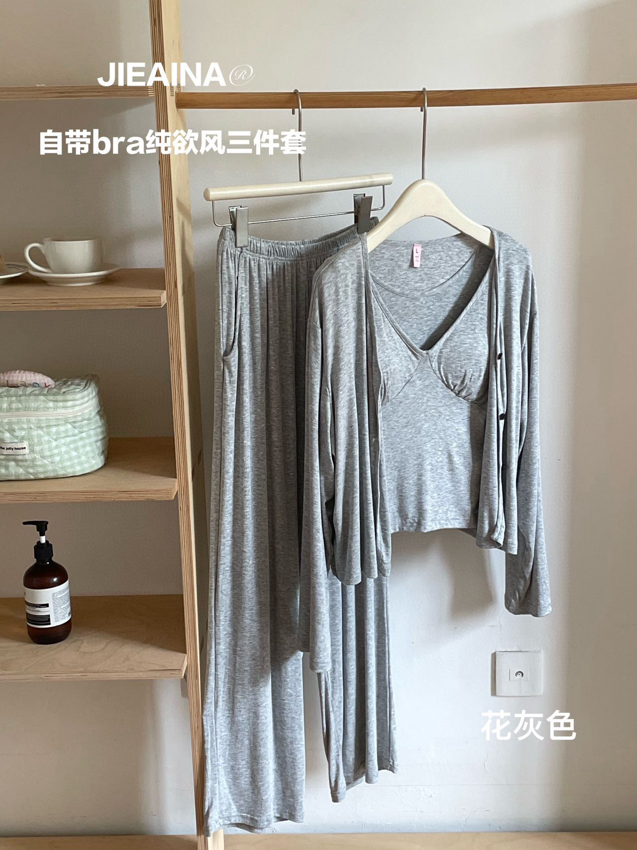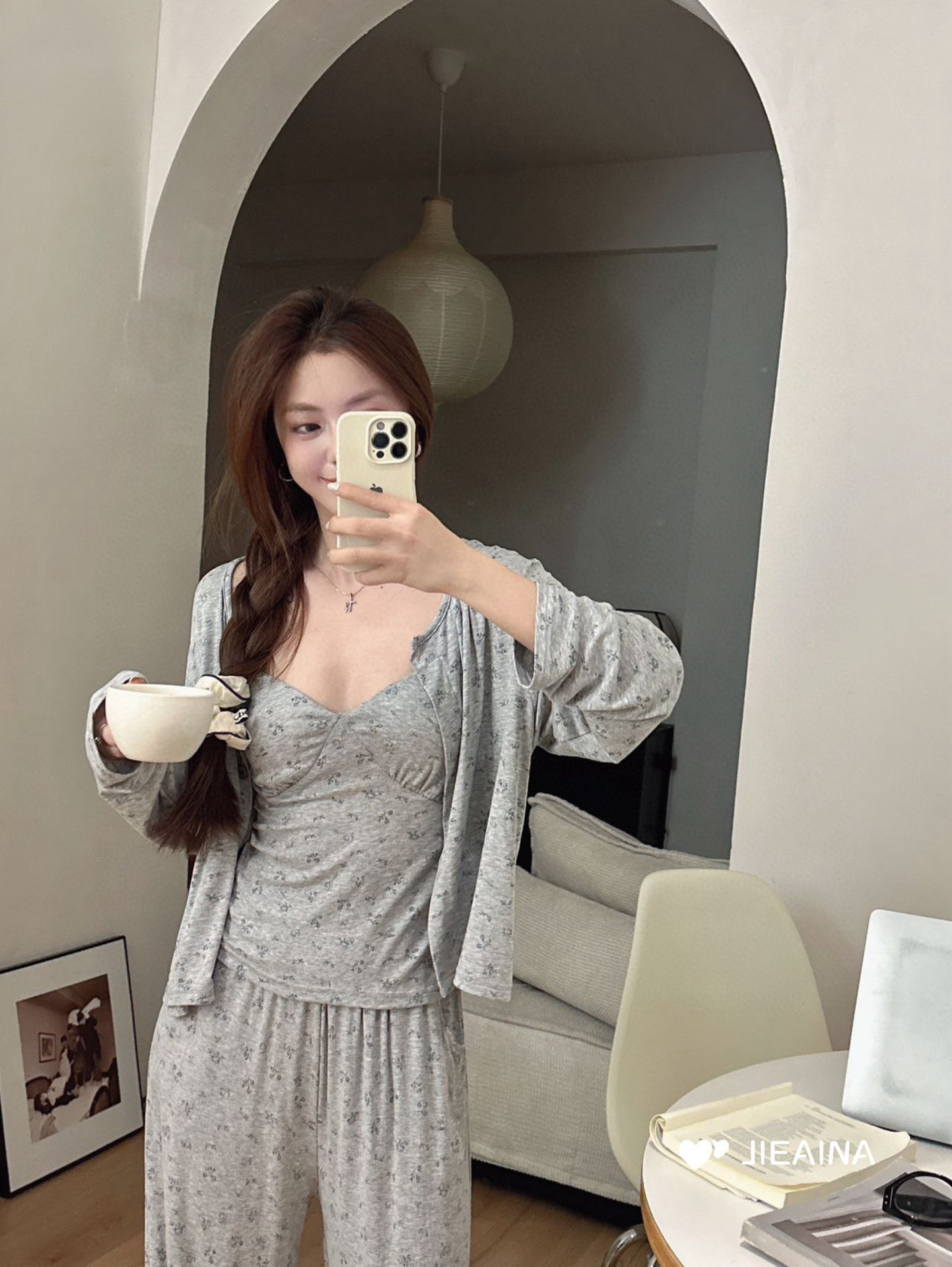 WD211 # 브라 순수한 욕망 바람 작은 꽃 슬링 3 조각 세트 여성의 봄과 가을 긴 소매 모달 홈 웨어스토어 가기