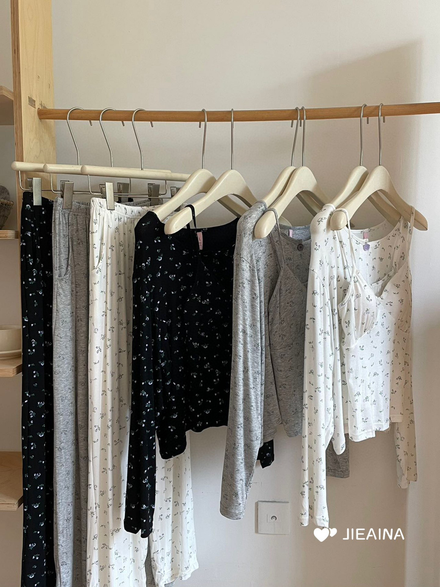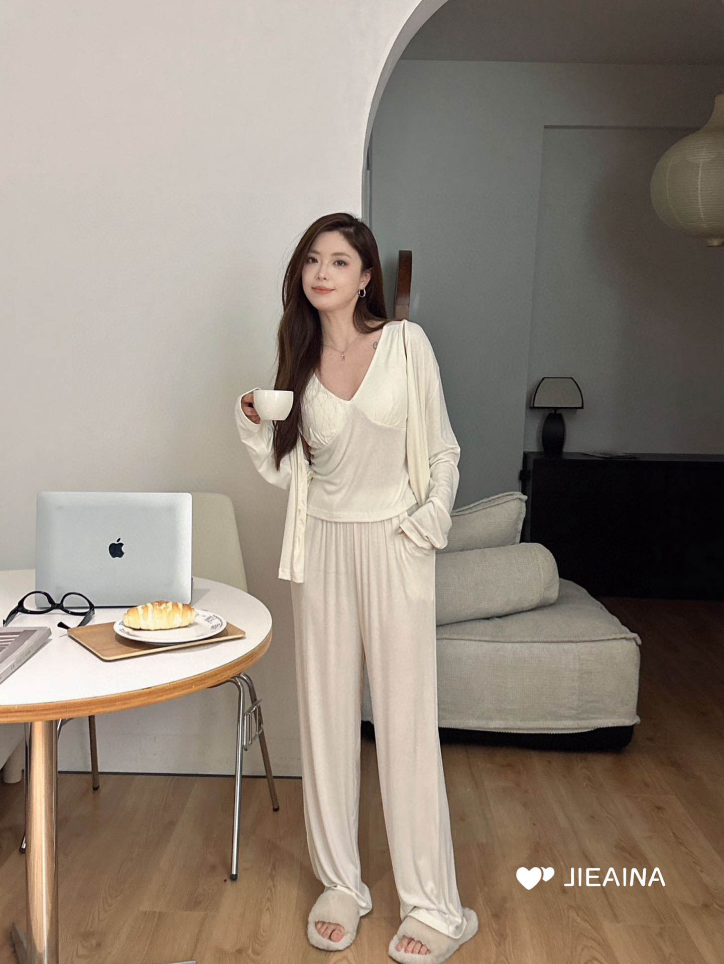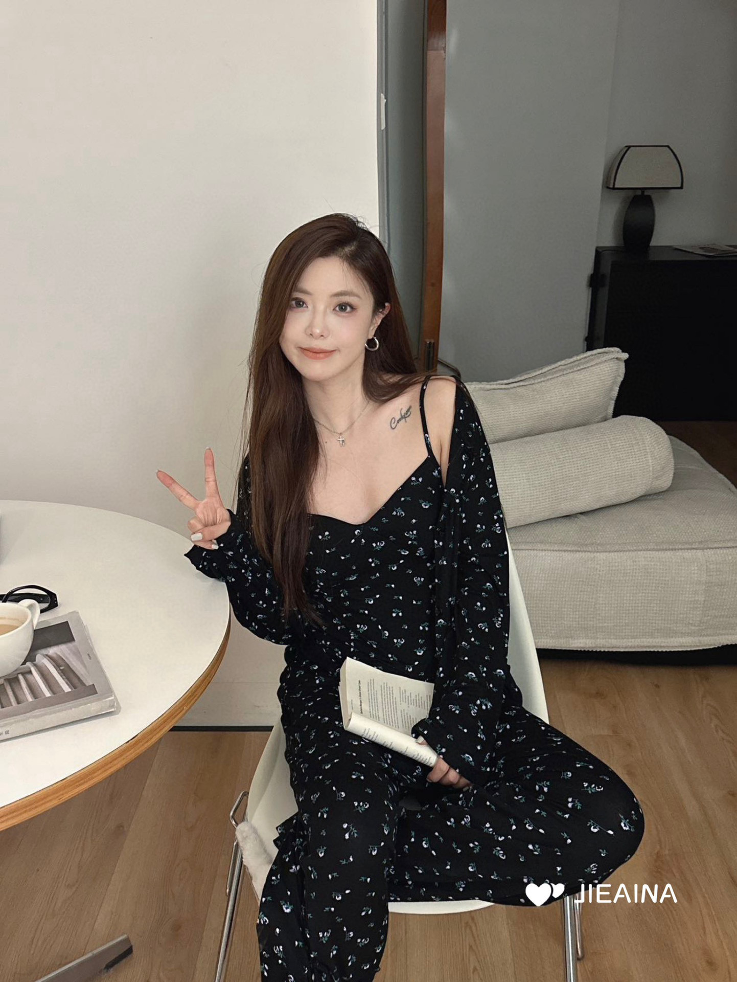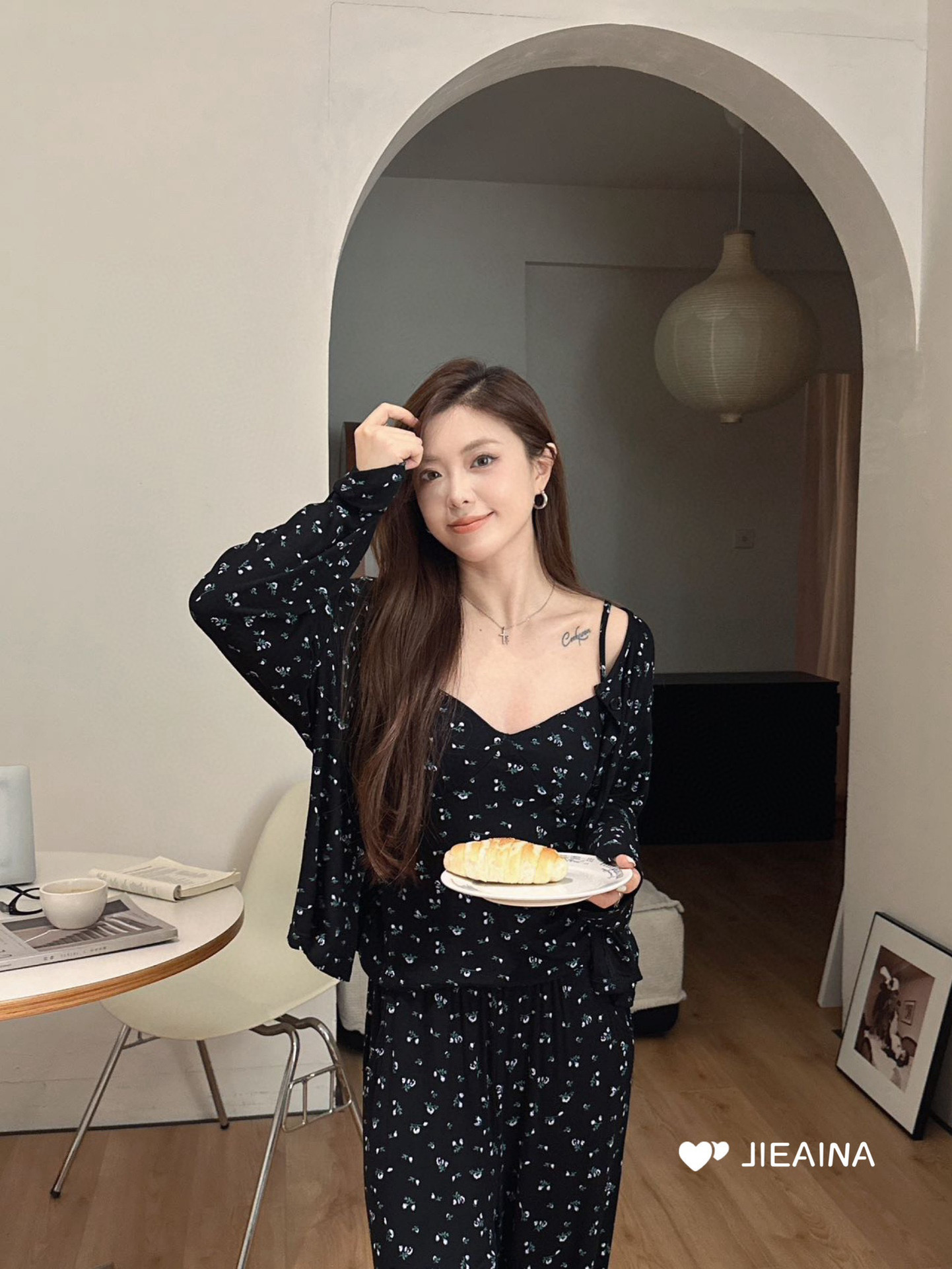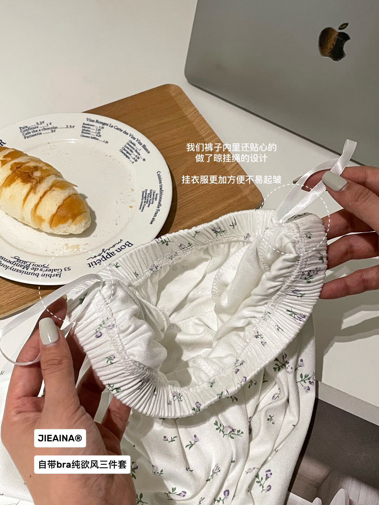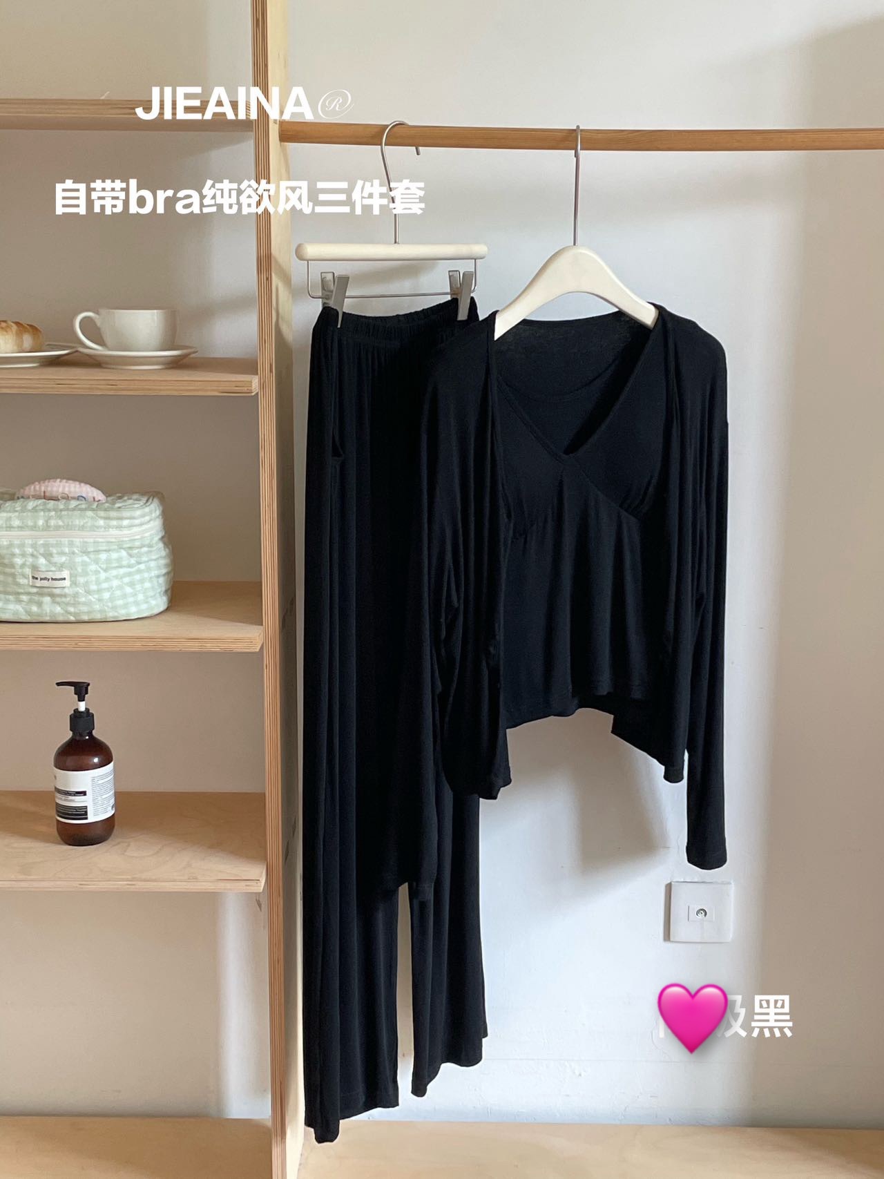 WD211 # 브라 순수한 욕망 바람 작은 꽃 슬링 3 조각 세트 여성의 봄과 가을 긴 소매 모달 홈 웨어스토어 가기