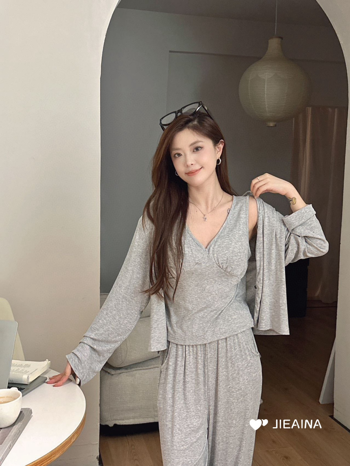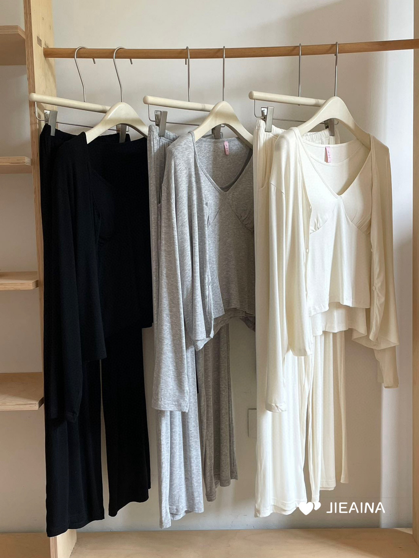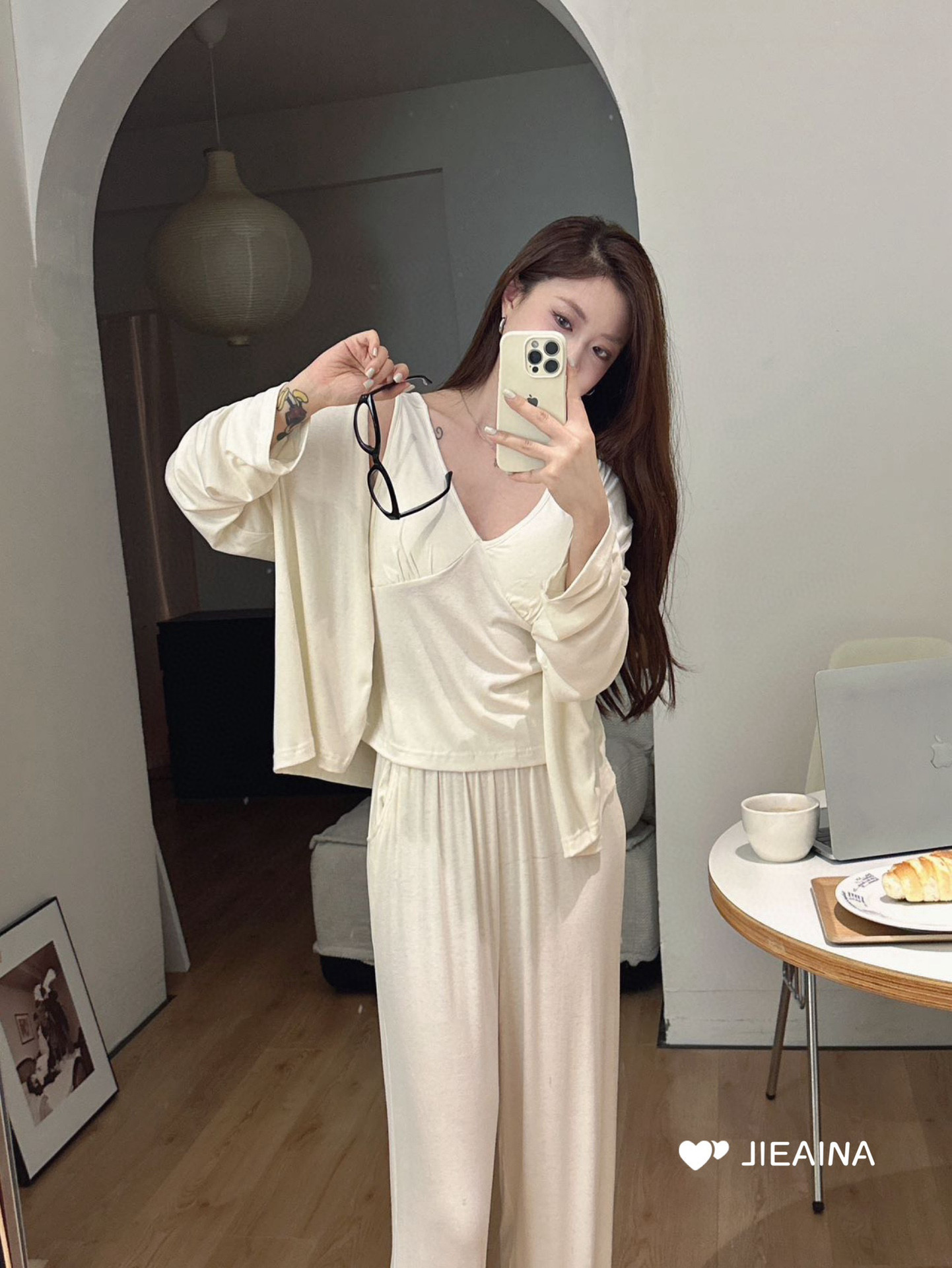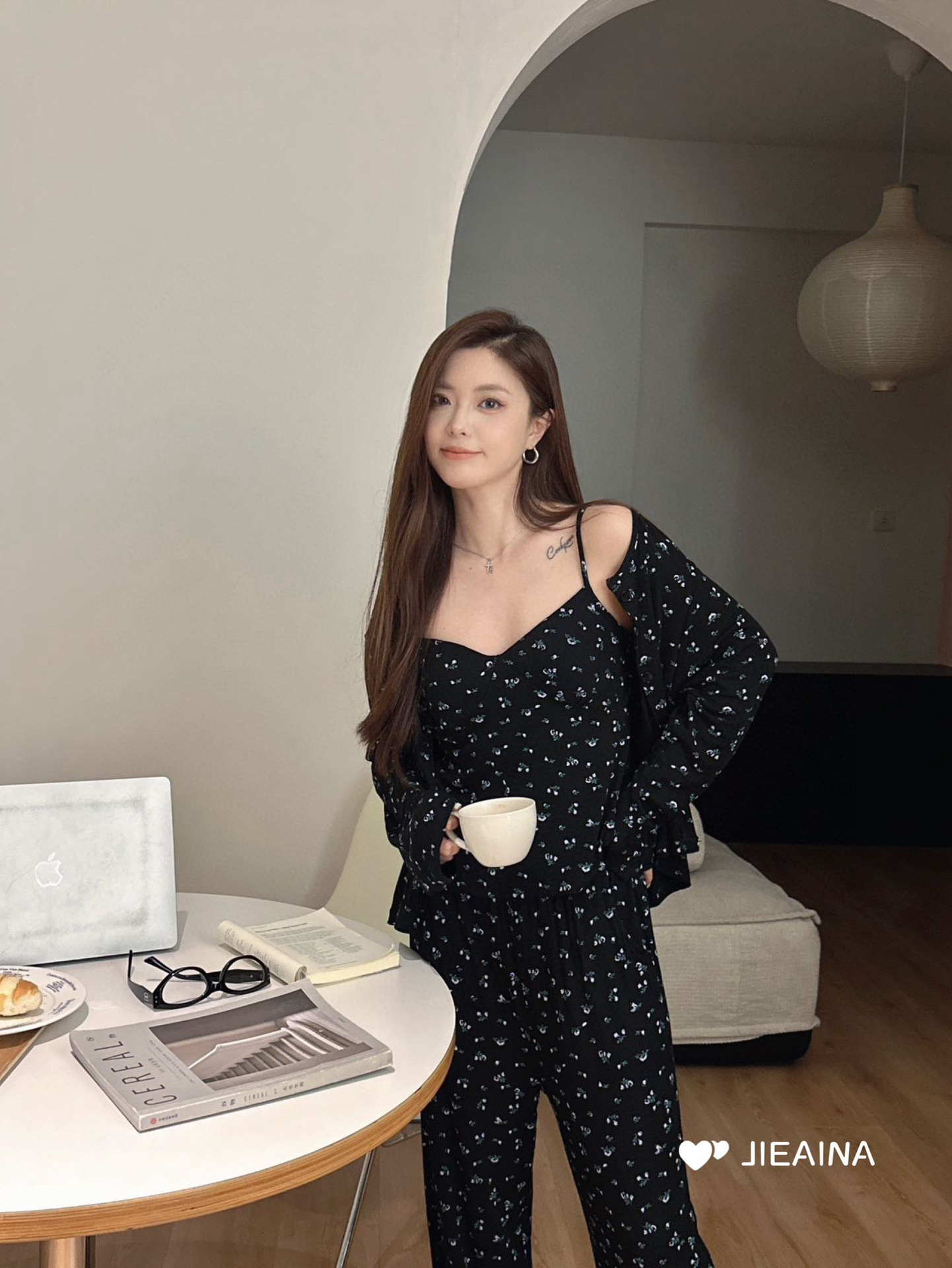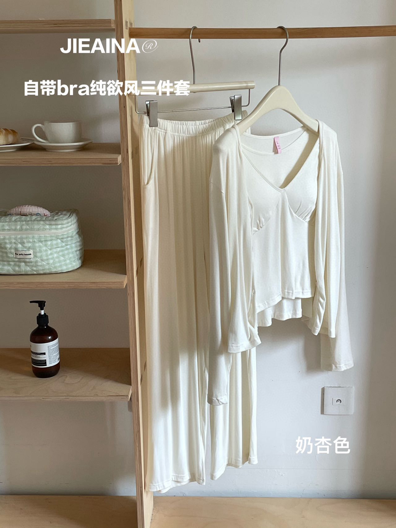 WD211 # 브라 순수한 욕망 바람 작은 꽃 슬링 3 조각 세트 여성의 봄과 가을 긴 소매 모달 홈 웨어스토어 가기