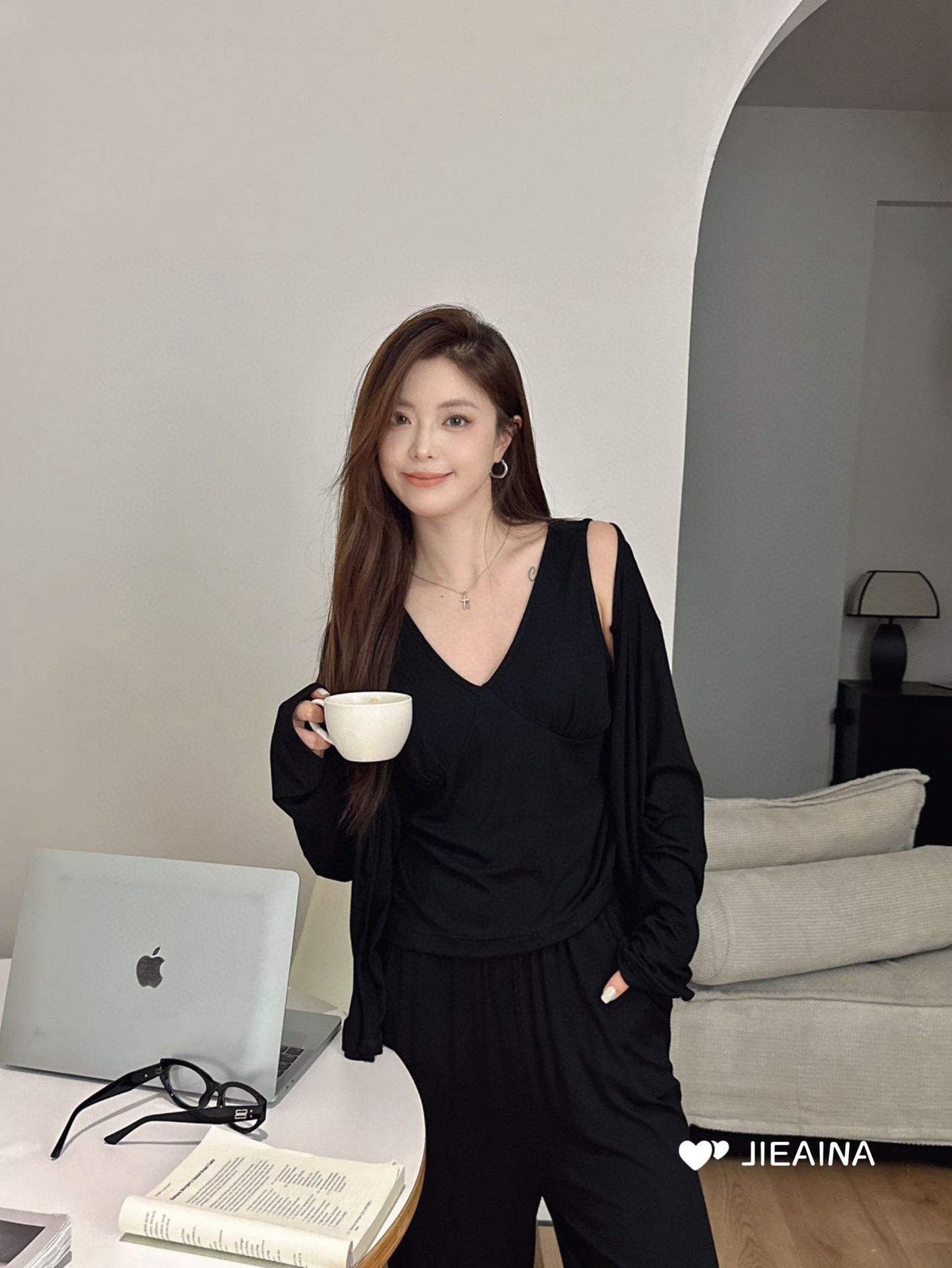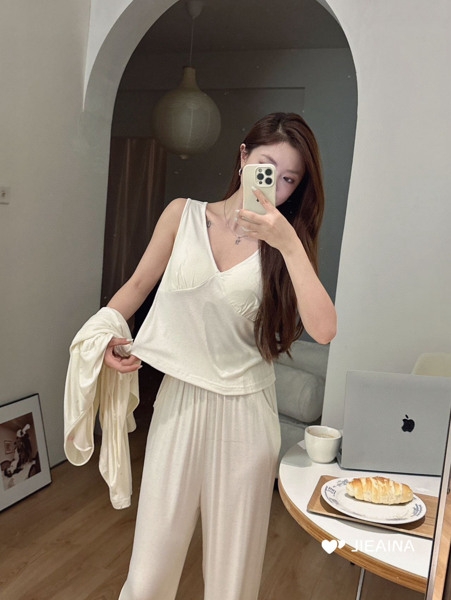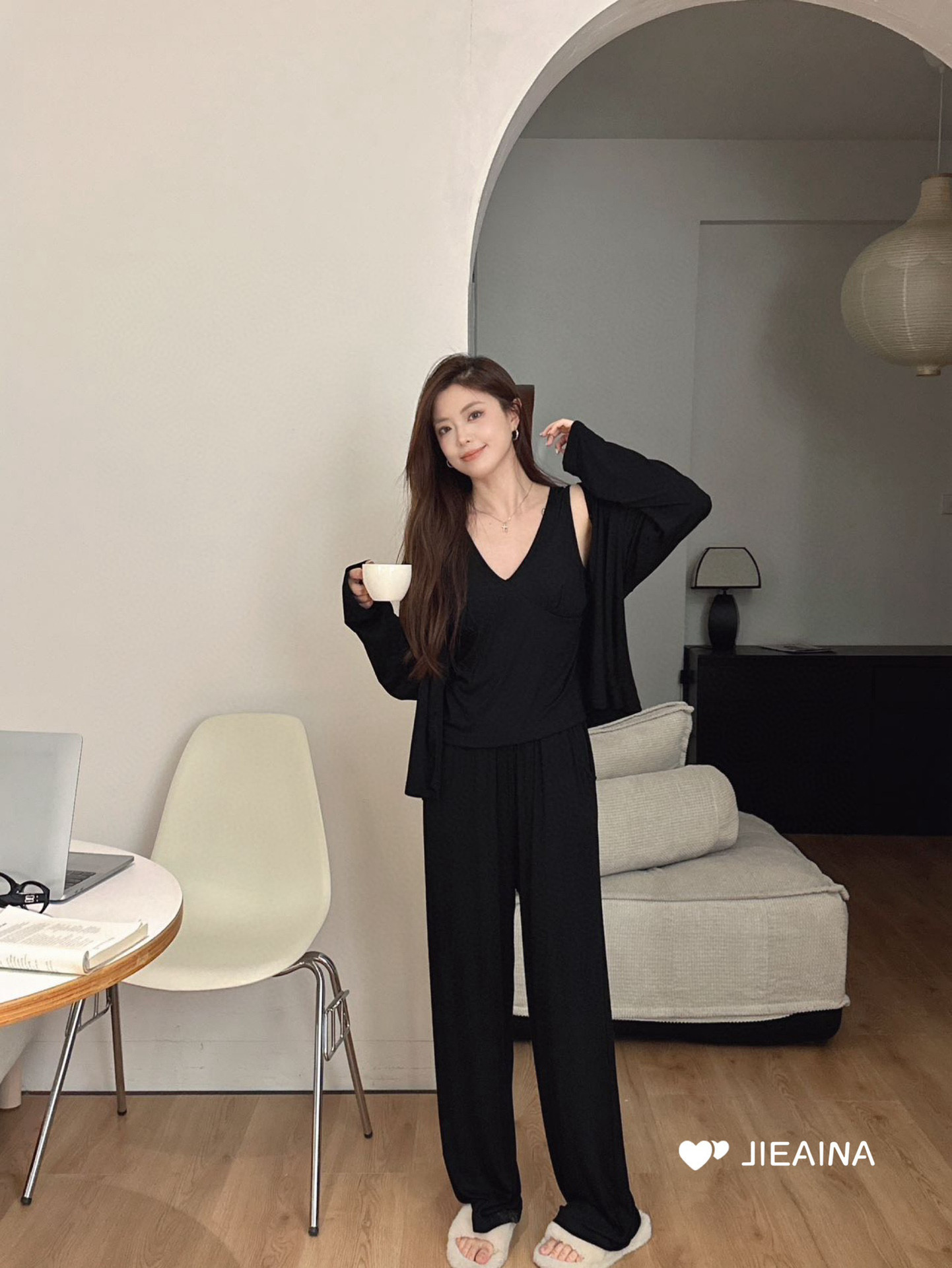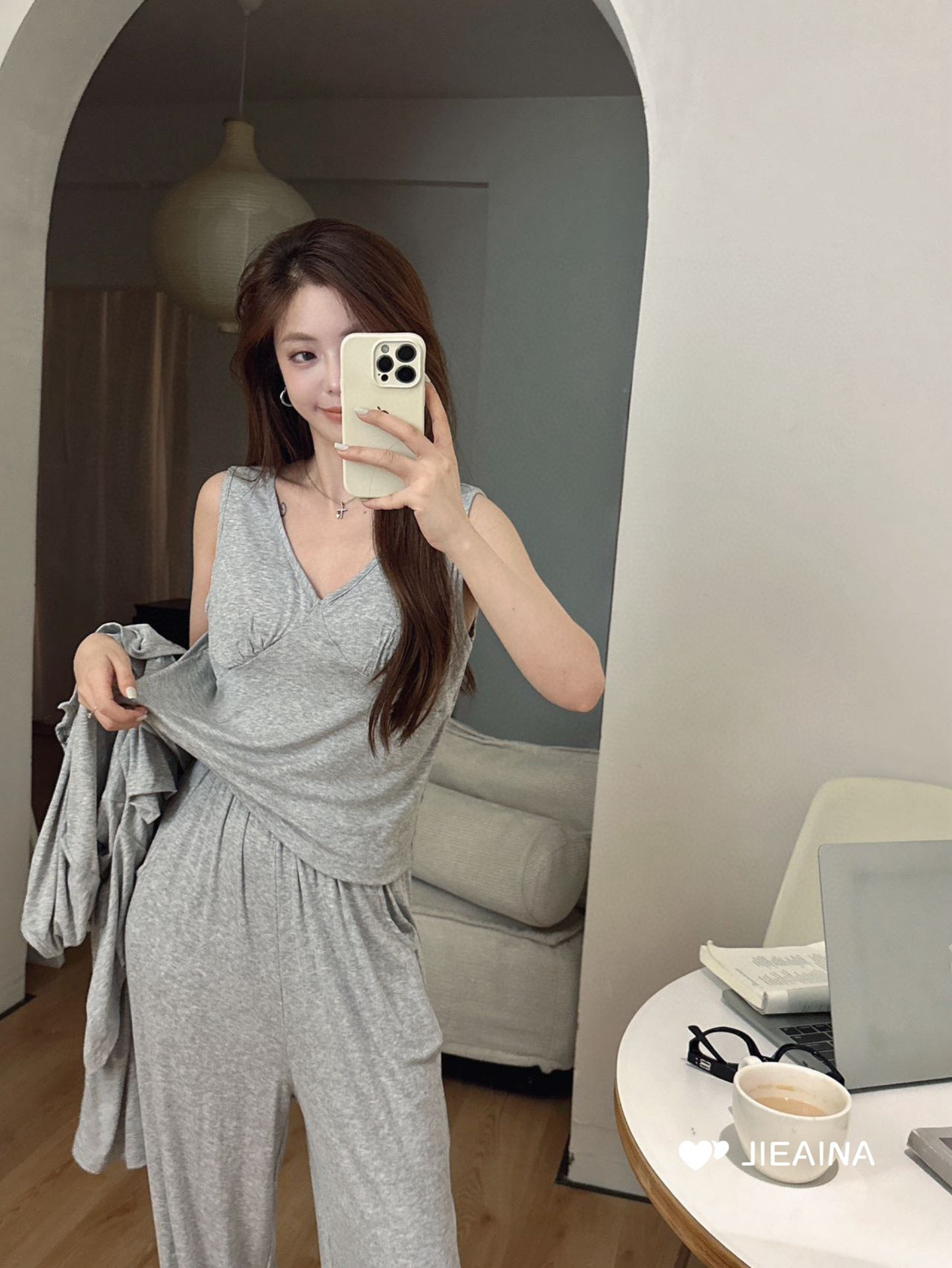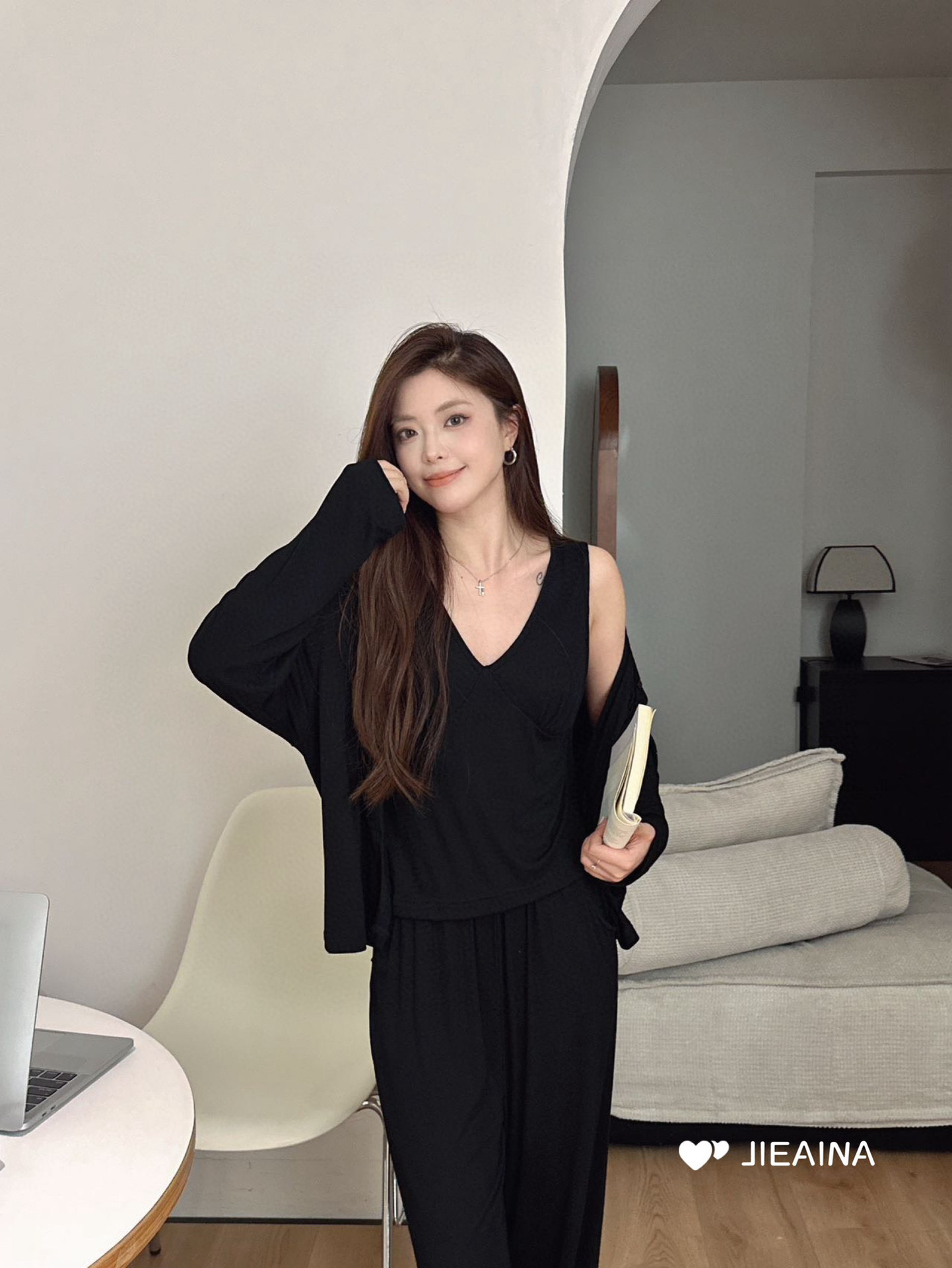 WD211 # 브라 순수한 욕망 바람 작은 꽃 슬링 3 조각 세트 여성의 봄과 가을 긴 소매 모달 홈 웨어스토어 가기