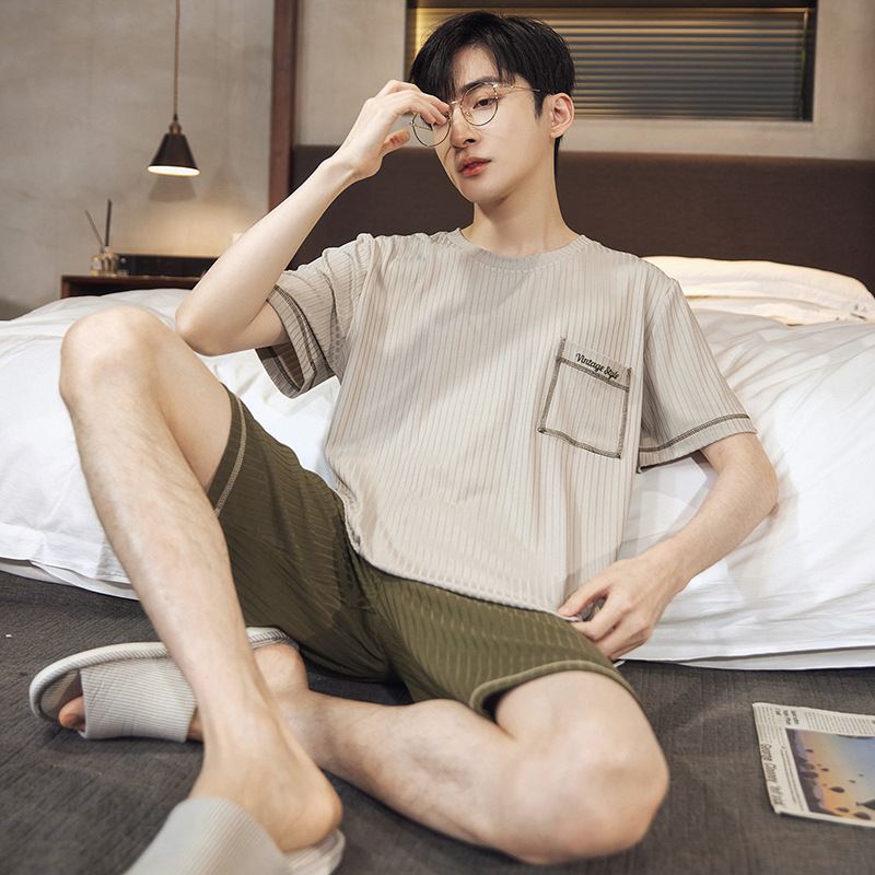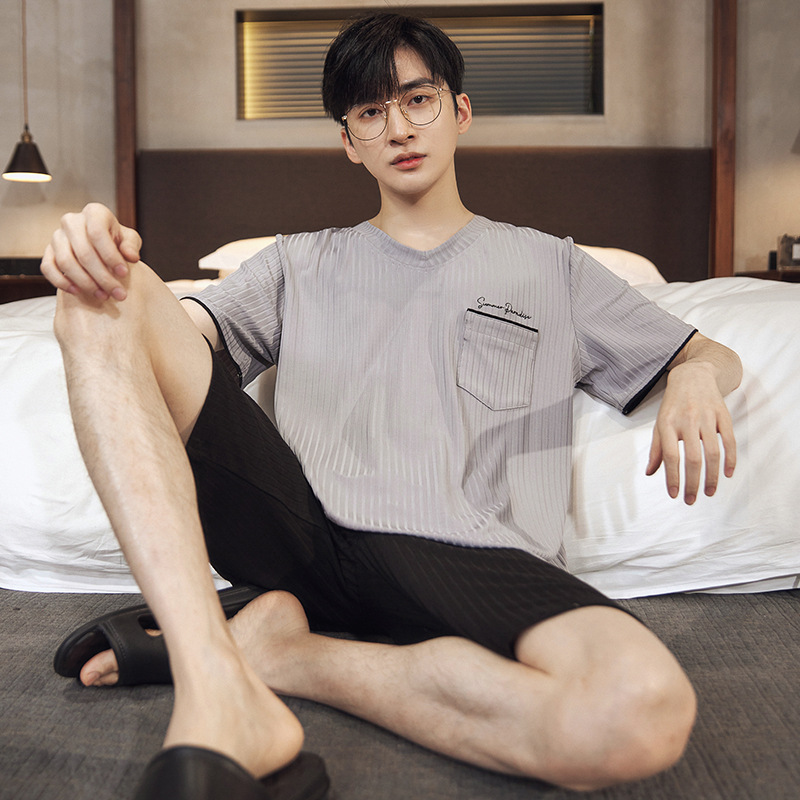 청소년 잠옷 남성 여름 모달 아이스 실크 반팔 반바지 남성 캐주얼 웨어러블 쿨 홈웨어스토어 가기