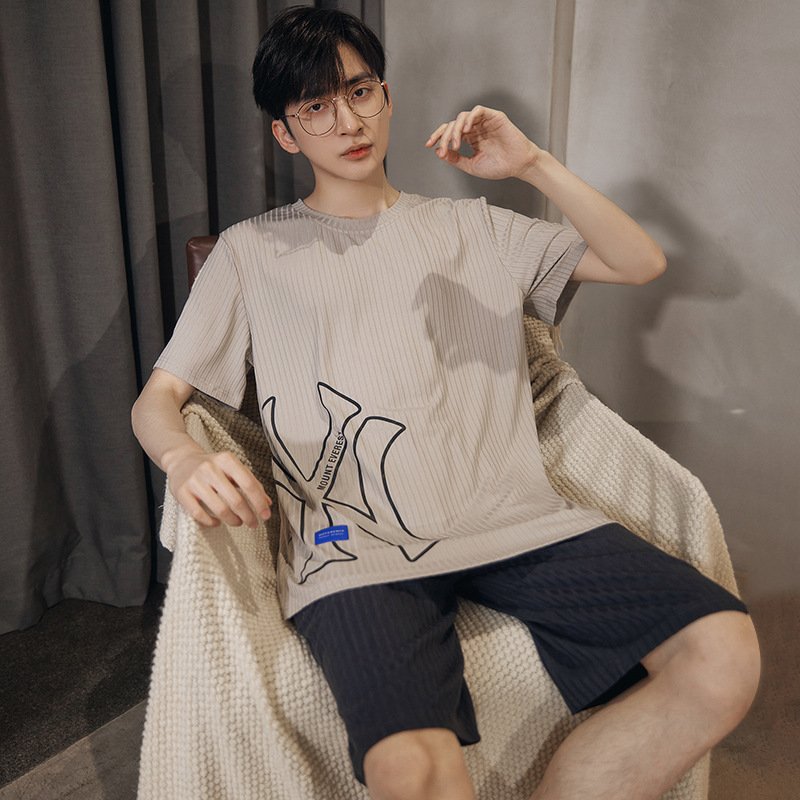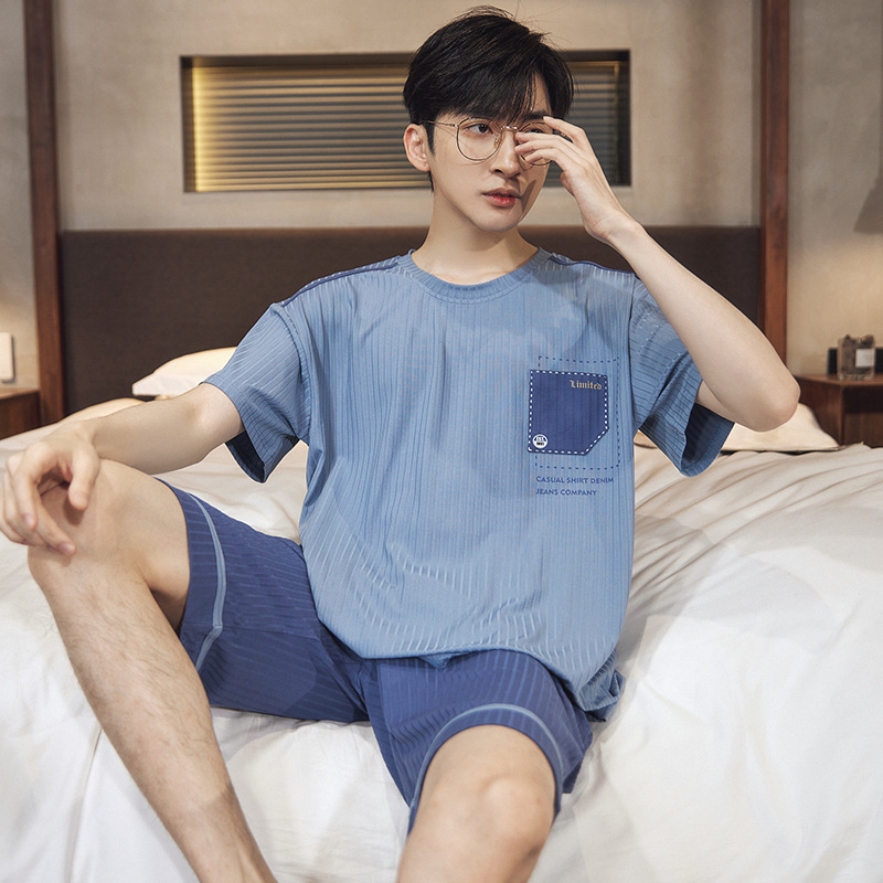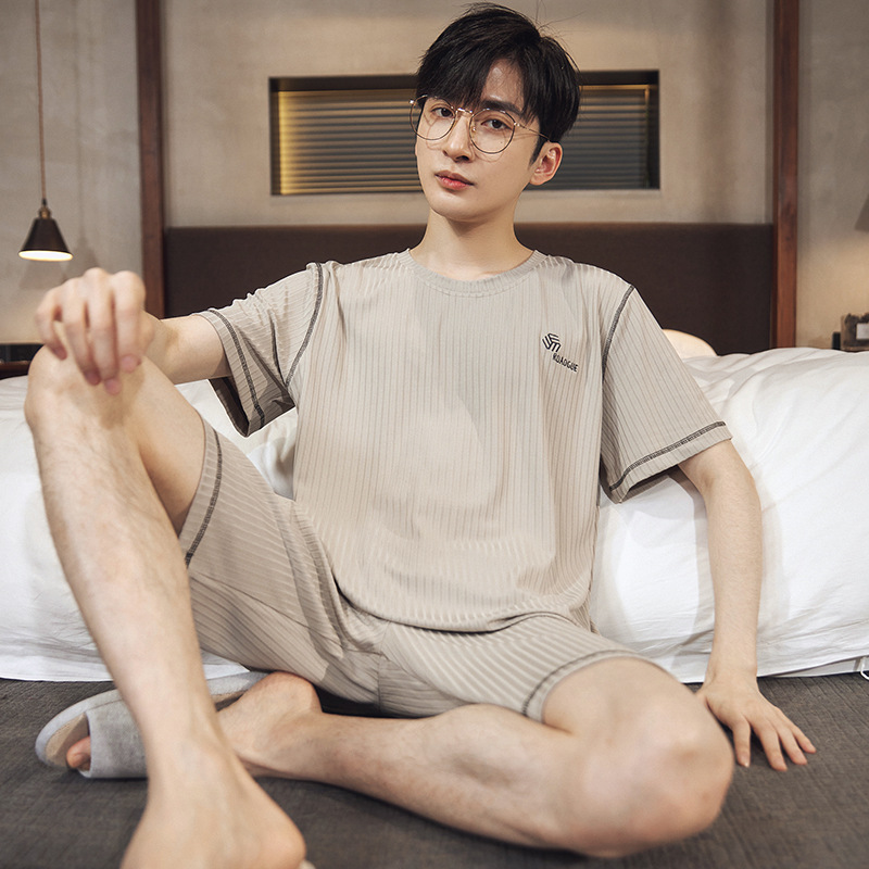 청소년 잠옷 남성 여름 모달 아이스 실크 반팔 반바지 남성 캐주얼 웨어러블 쿨 홈웨어