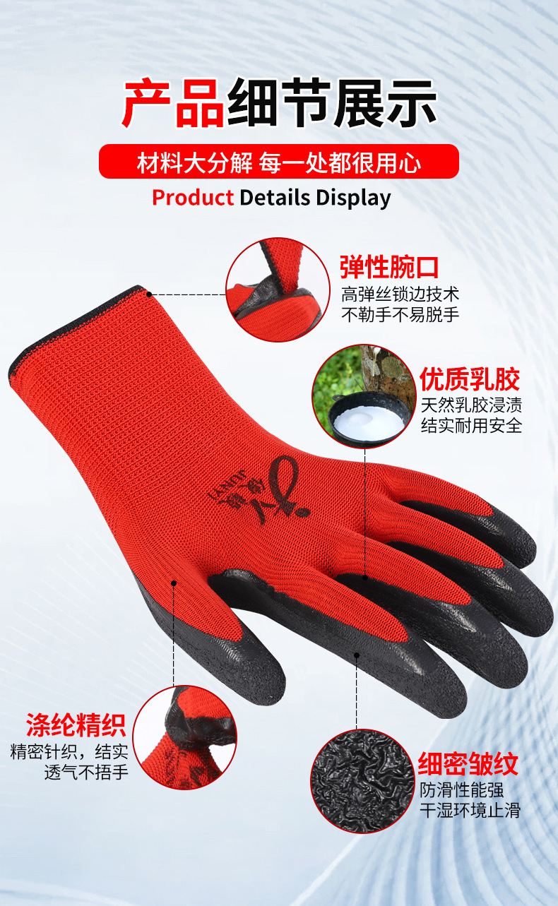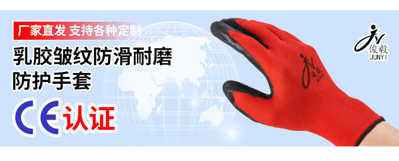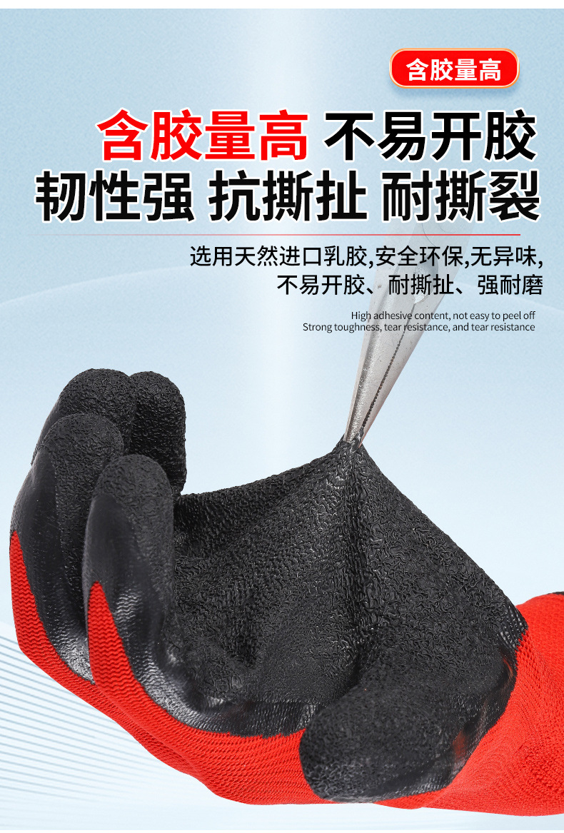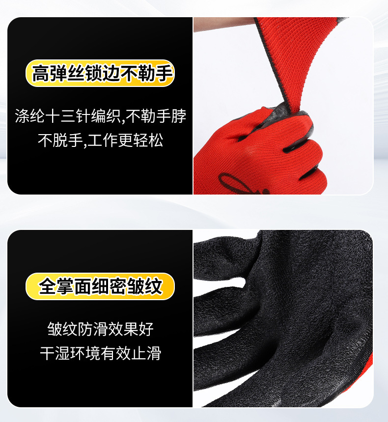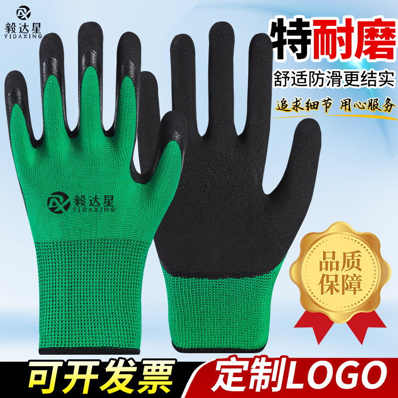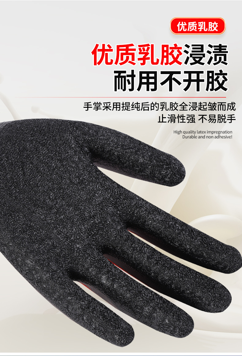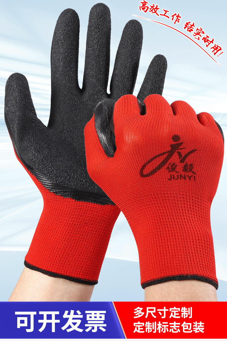 맞춤형 노동 보호 장갑, 내마모성 타이어 고무 주름진 고무 건설 현장 작업 미끄럼 방지 통기성 고무 함침 보호 장갑