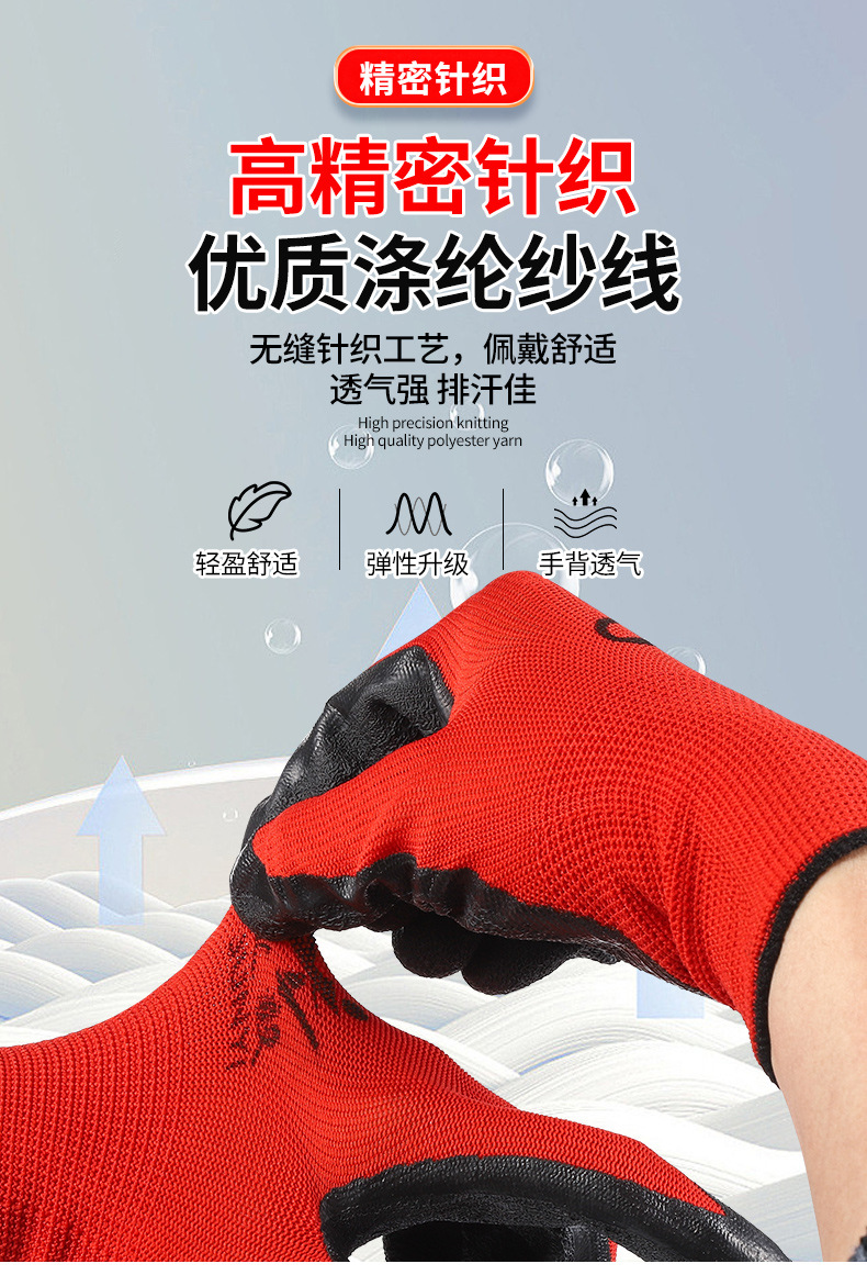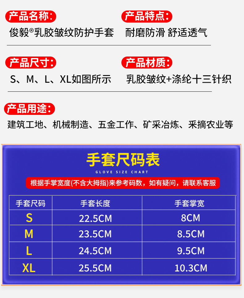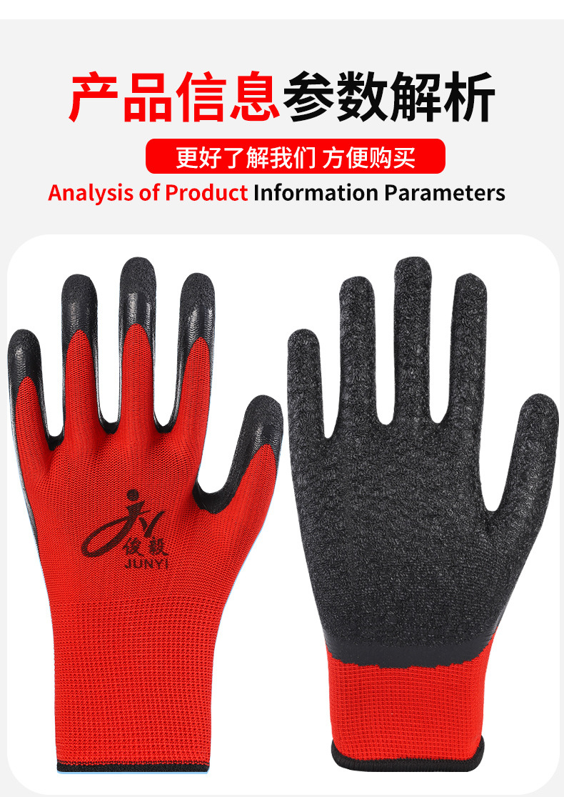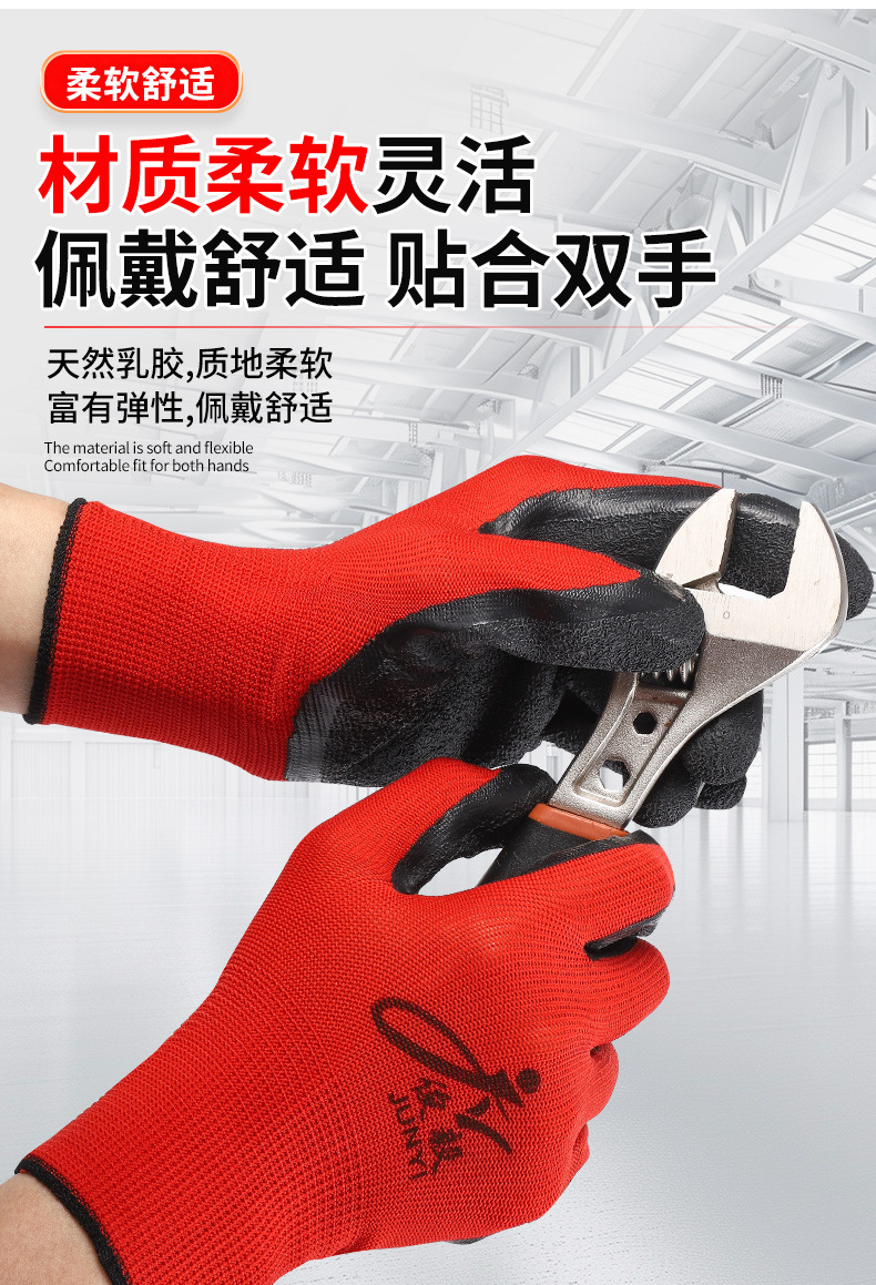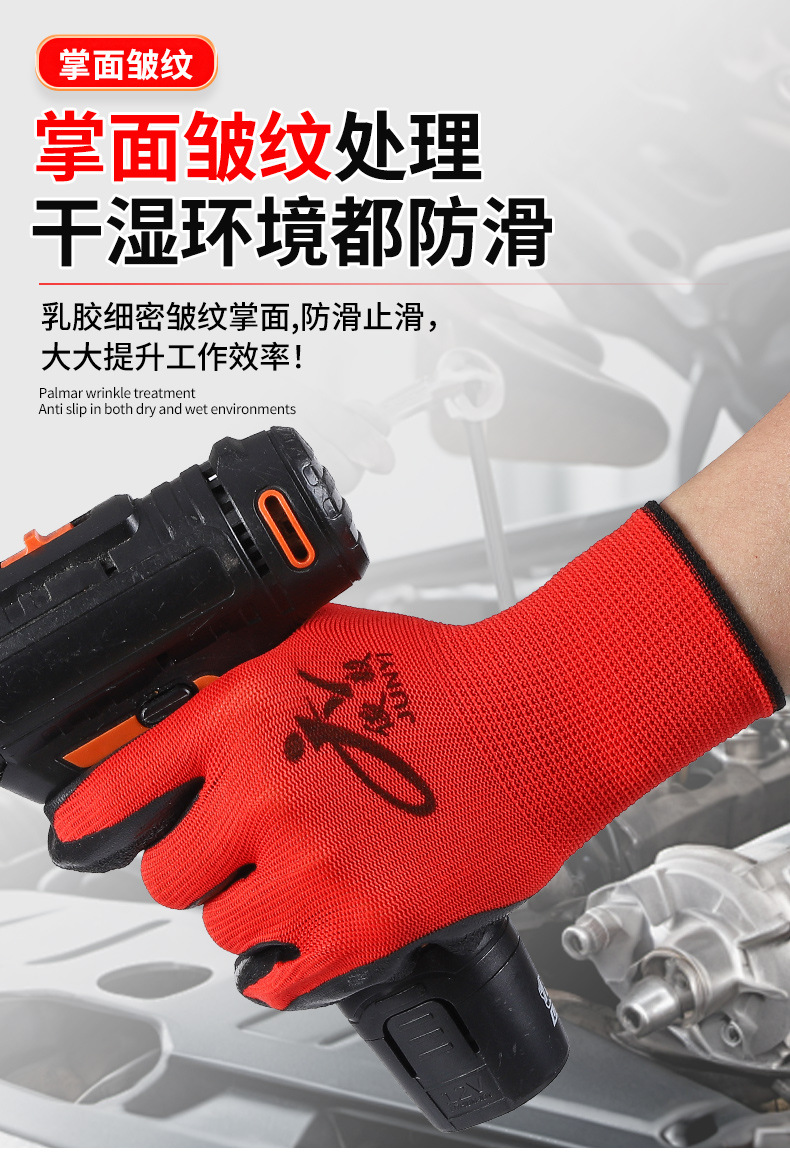 맞춤형 노동 보호 장갑, 내마모성 타이어 고무 주름진 고무 건설 현장 작업 미끄럼 방지 통기성 고무 함침 보호 장갑