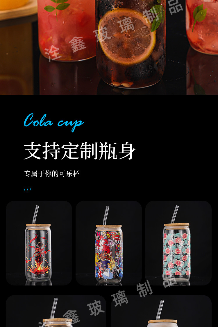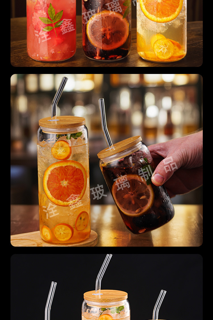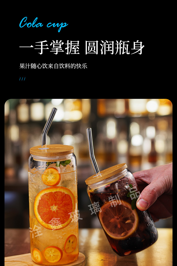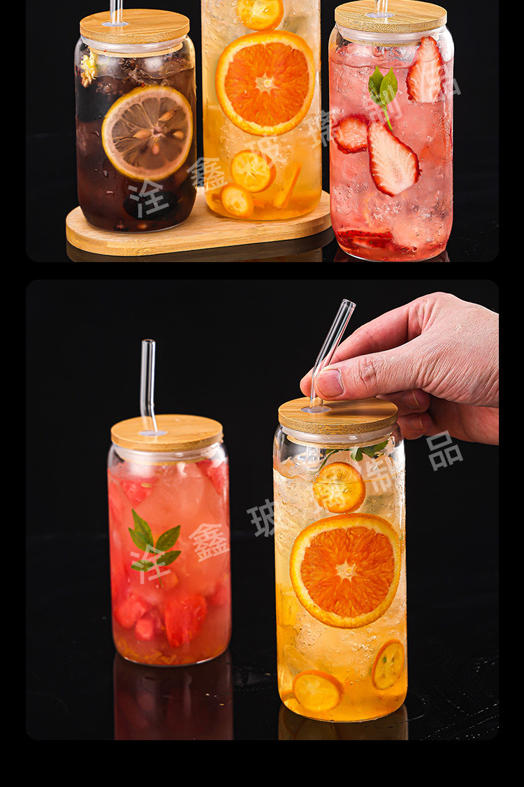 제조업체 맞춤형 투명 두꺼운 콜라 컵 밀짚 컵 뚜껑이있는 고 붕규산 유리 물 컵 우유 차 컵 주스 컵스토어 가기