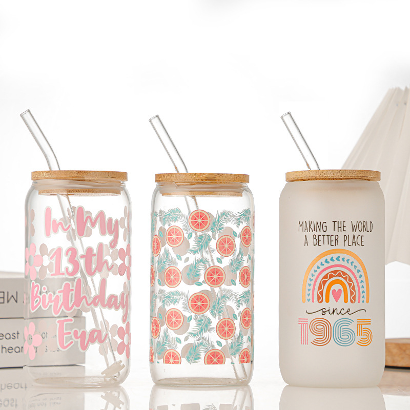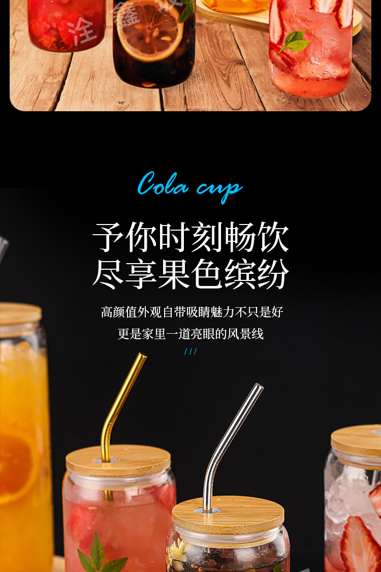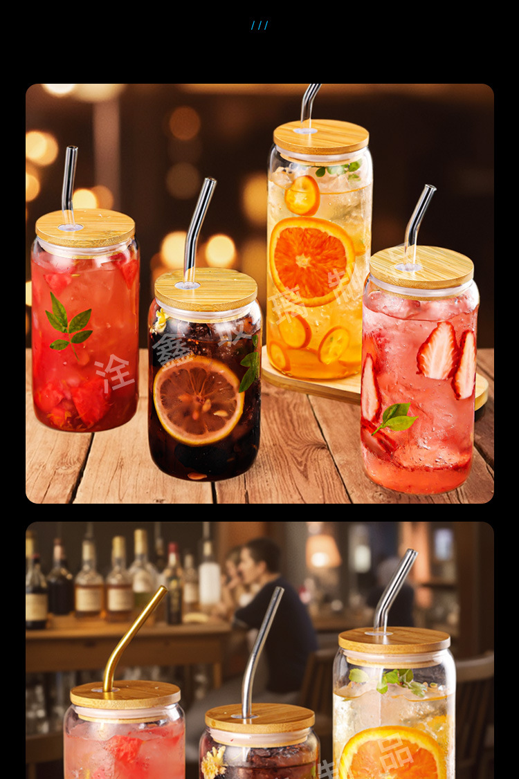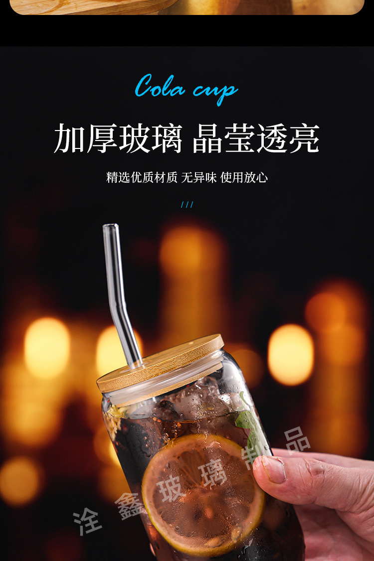 제조업체 맞춤형 투명 두꺼운 콜라 컵 밀짚 컵 뚜껑이있는 고 붕규산 유리 물 컵 우유 차 컵 주스 컵스토어 가기