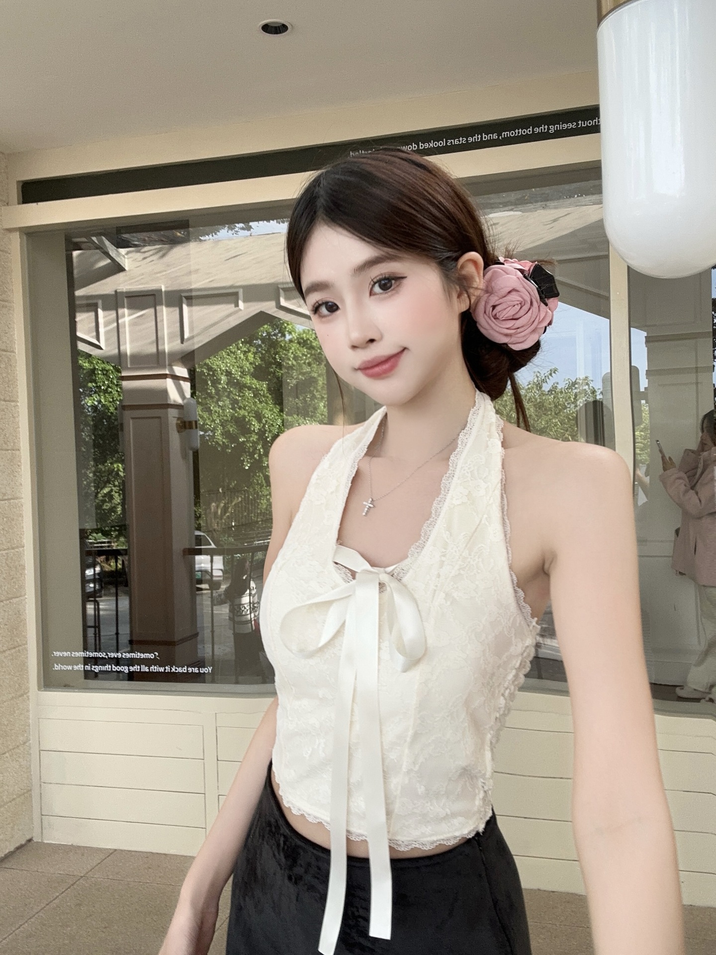 2042 # 뉴 보우 V-Neck 레이스 자카드 넥 스트랩 조끼 가슴 패드 원컵 퓨어 백리스 스트랩리스스토어 가기