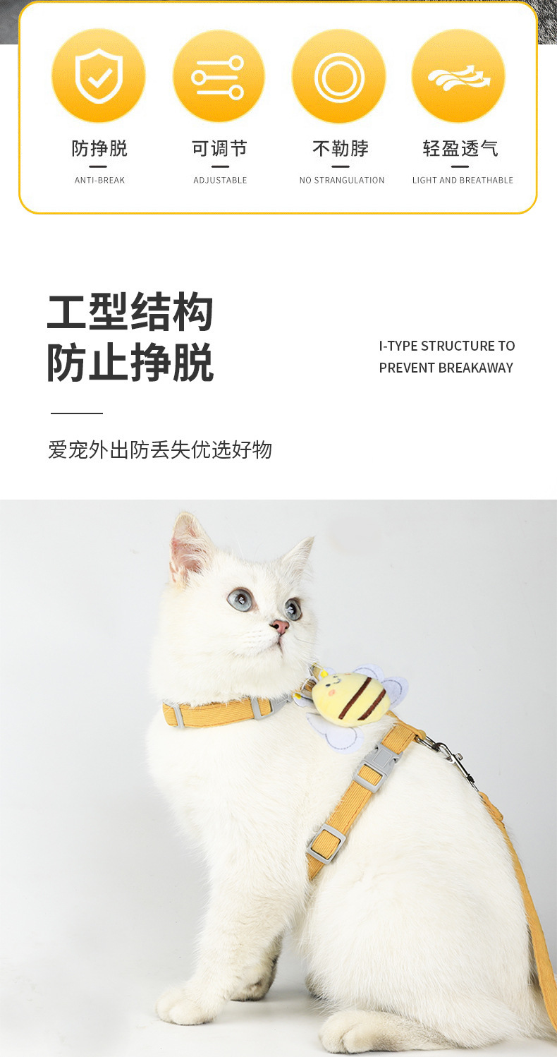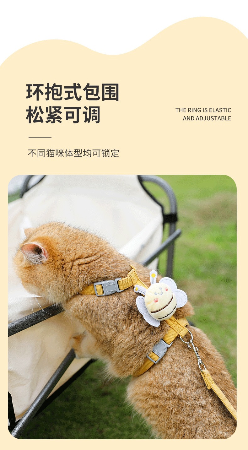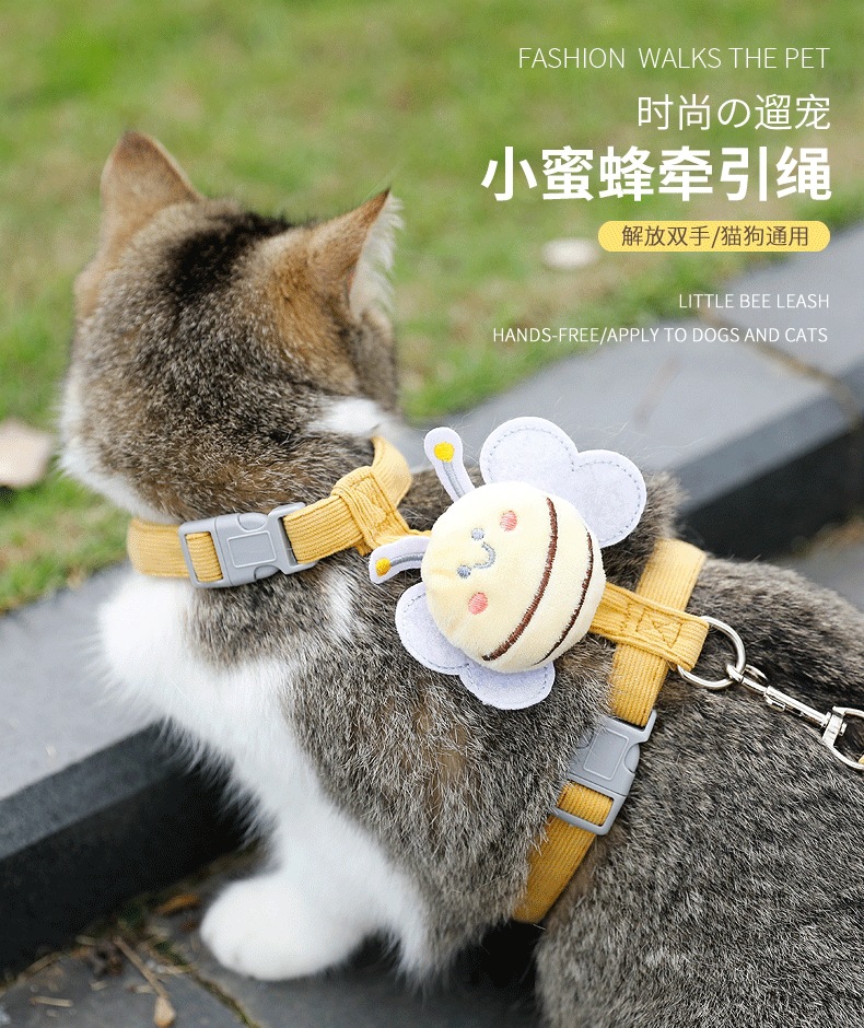 작은 꿀벌 고양이 견인 로프 I 모양의 안티 브레이크 아웃 걷는 고양이 로프 인터넷 인기있는 조정 가능한 가슴 스트랩 고양이 로프스토어 가기