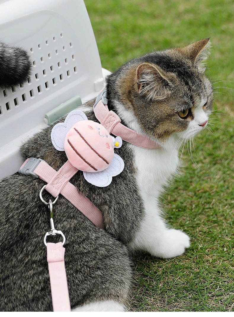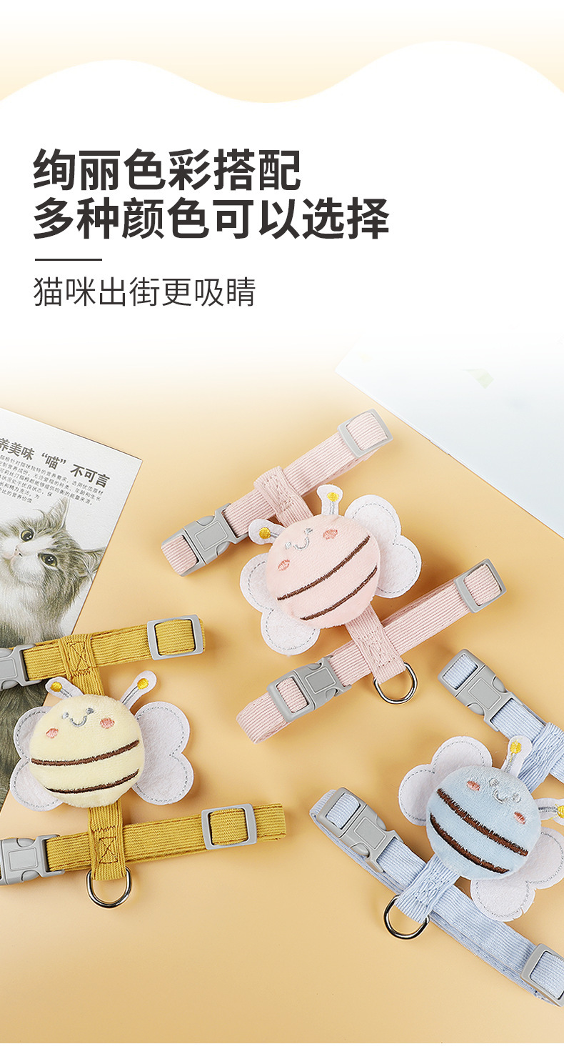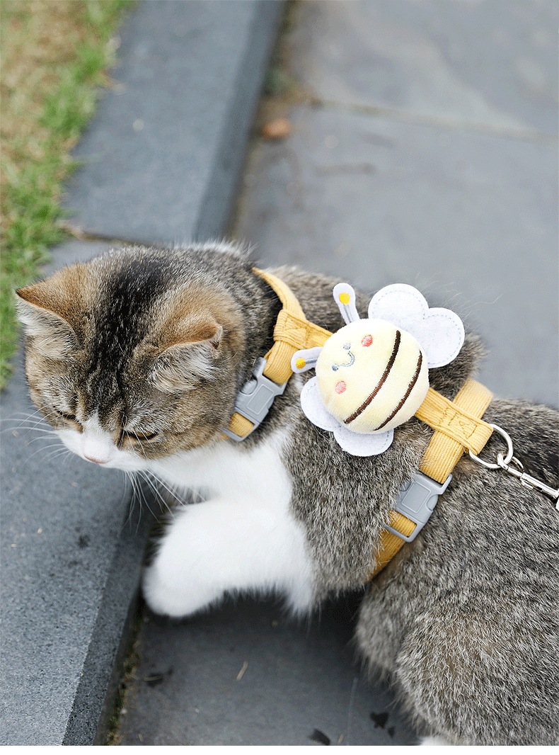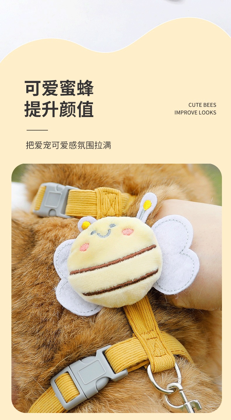 작은 꿀벌 고양이 견인 로프 I 모양의 안티 브레이크 아웃 걷는 고양이 로프 인터넷 인기있는 조정 가능한 가슴 스트랩 고양이 로프스토어 가기