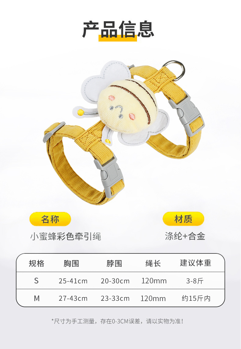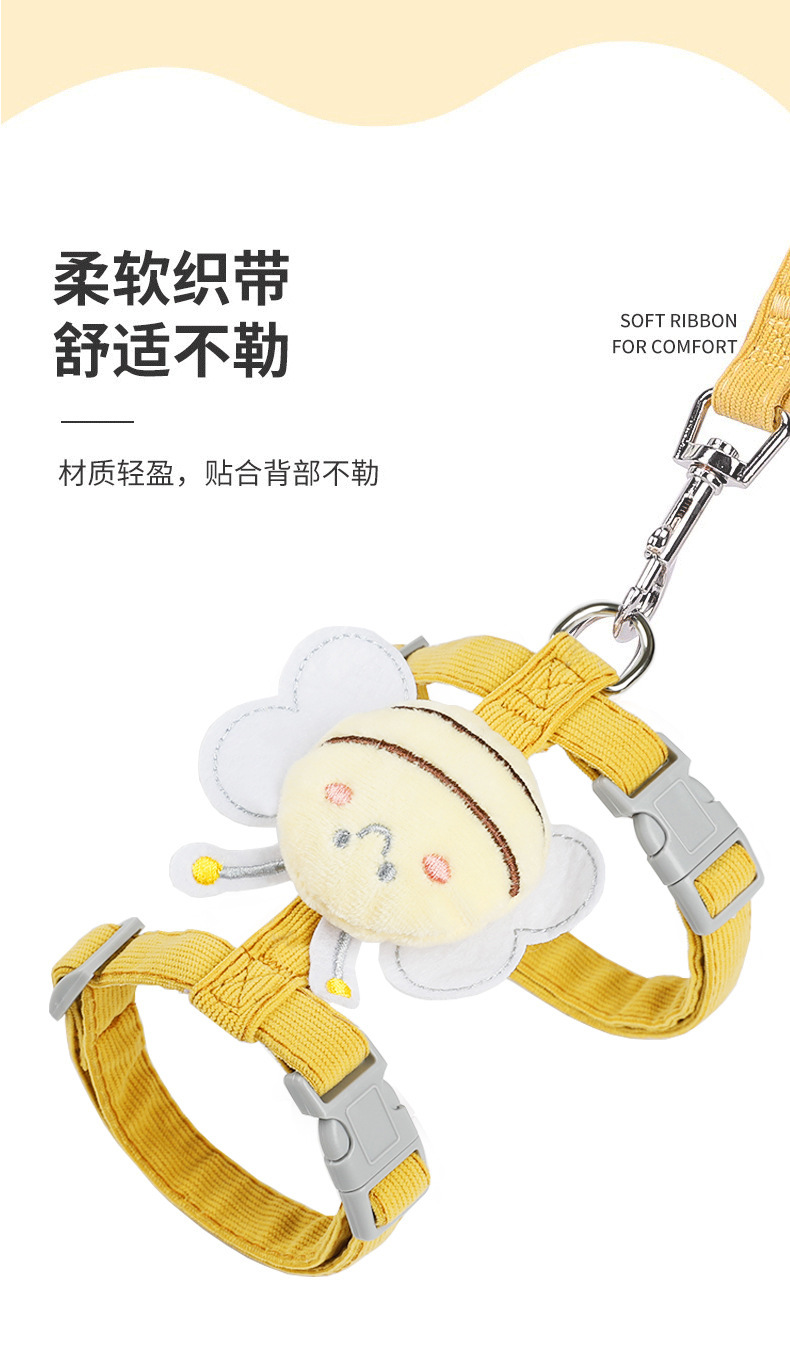 작은 꿀벌 고양이 견인 로프 I 모양의 안티 브레이크 아웃 걷는 고양이 로프 인터넷 인기있는 조정 가능한 가슴 스트랩 고양이 로프