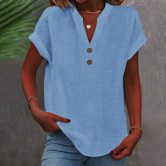 AliExpress 2024 유럽과 미국 여름 솔리드 컬러 스탠드 칼라 버튼 반팔 여성 셔츠스토어 가기