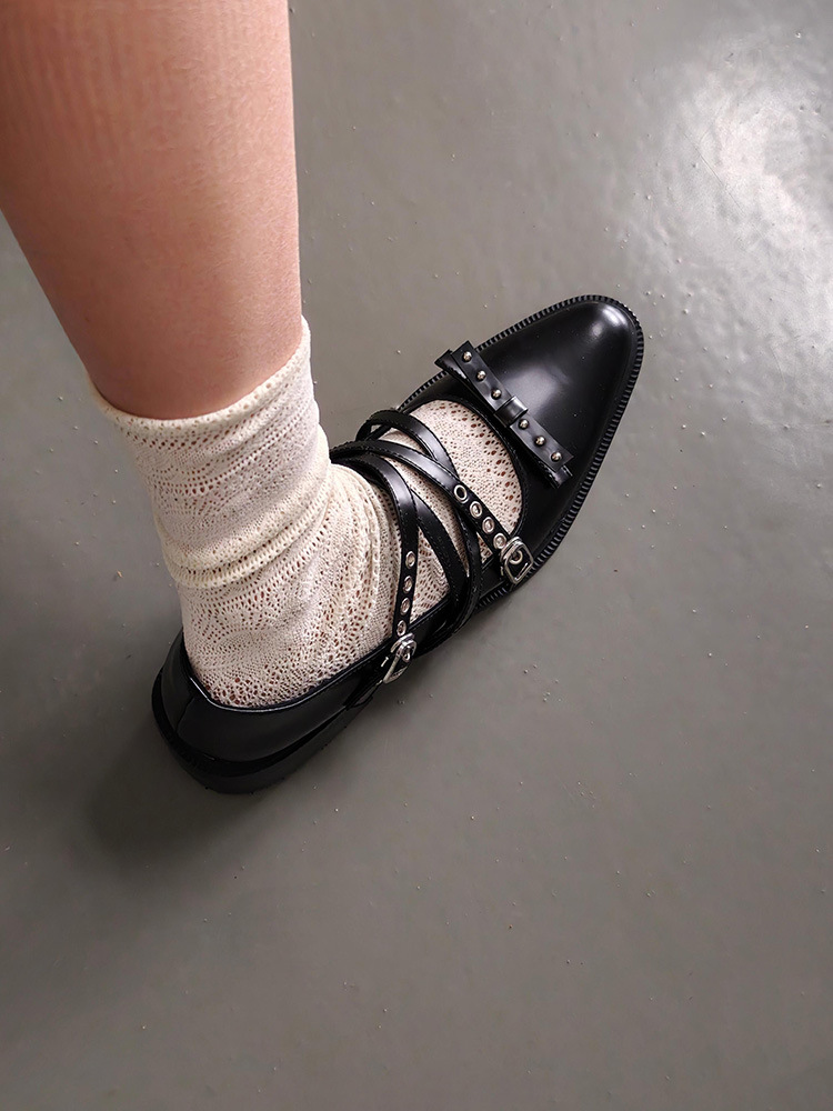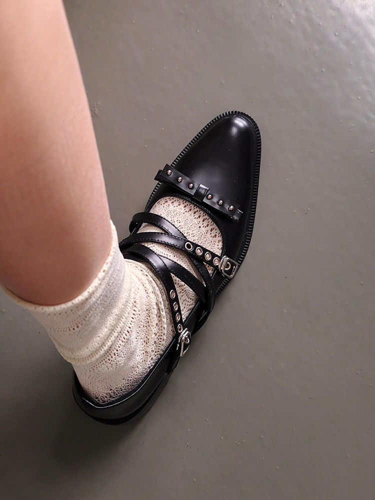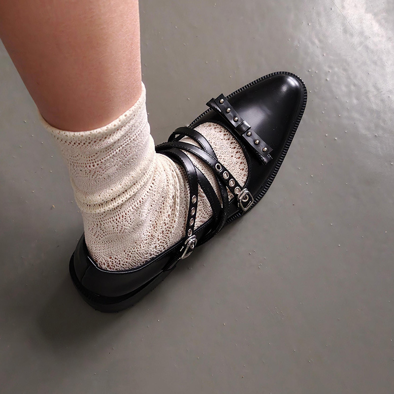 양가죽 버전 ~ 더블 보우 장식 싱글 슈즈, 뾰족한 투웨어, 다크 스타일의 작은 가죽 신발, 여름 여성 신발스토어 가기