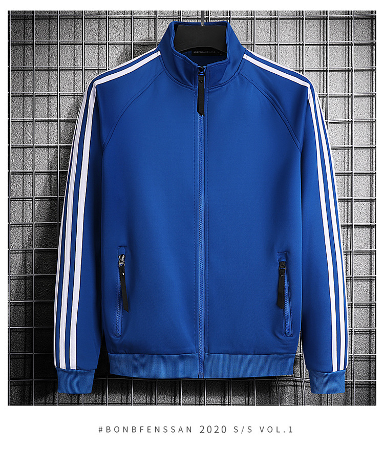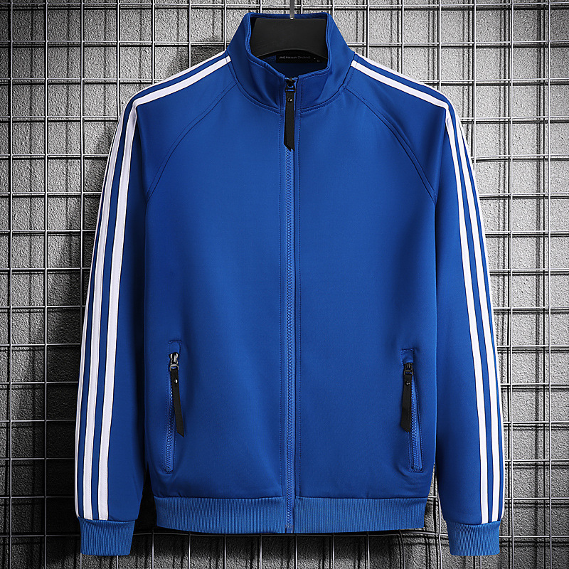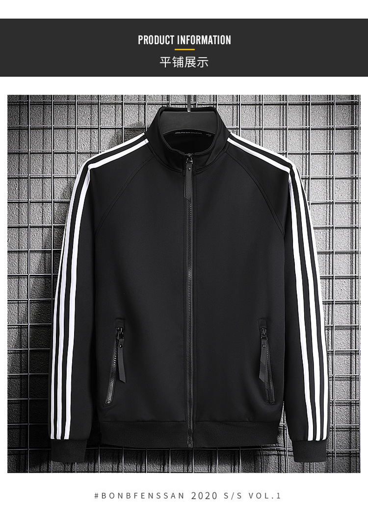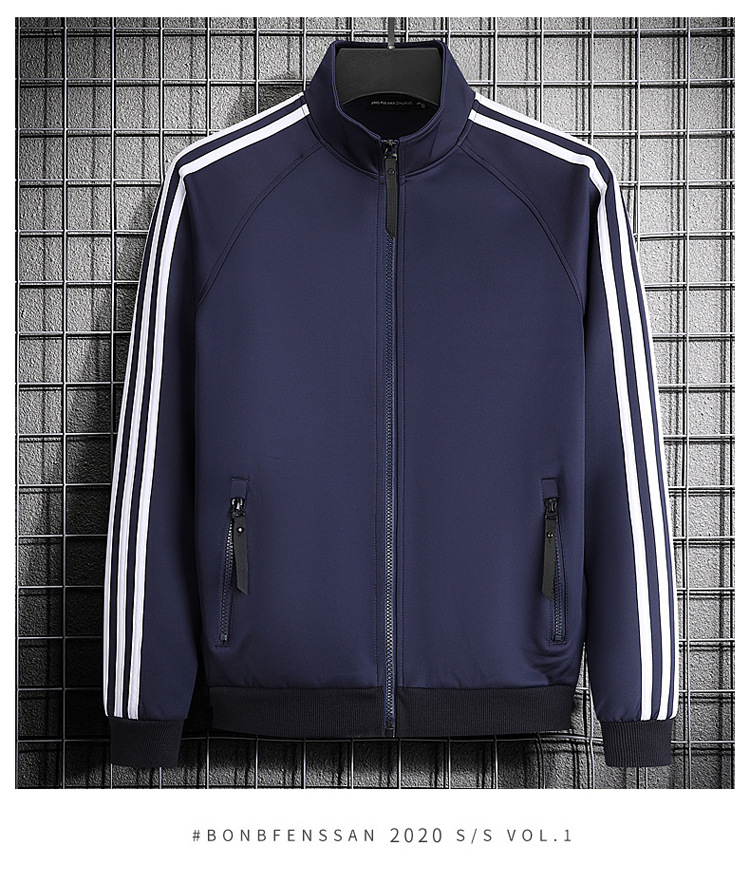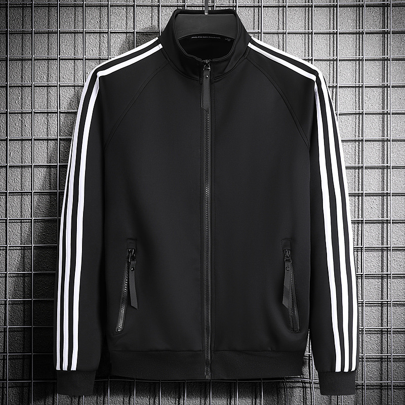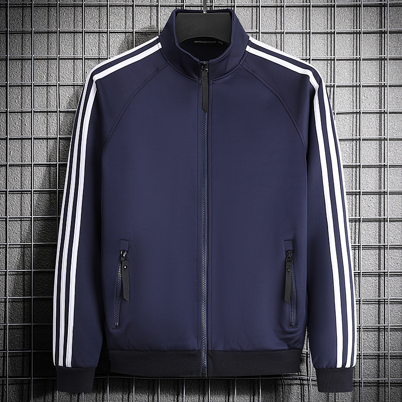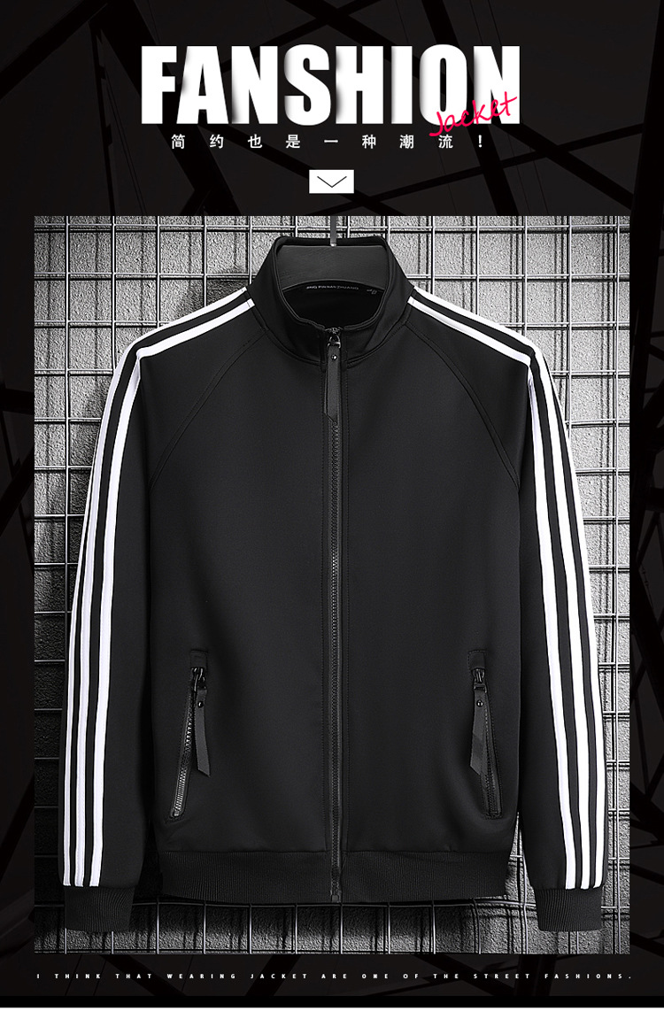 빅사이즈 크로스보더 트렌디 브랜드 스포츠 남성 스탠드업 칼라 3스트라이프 가디건 재킷 트렌디 스웨트셔츠로 로고를 맞춤 제작하기에 적합합니다.