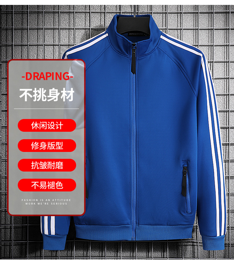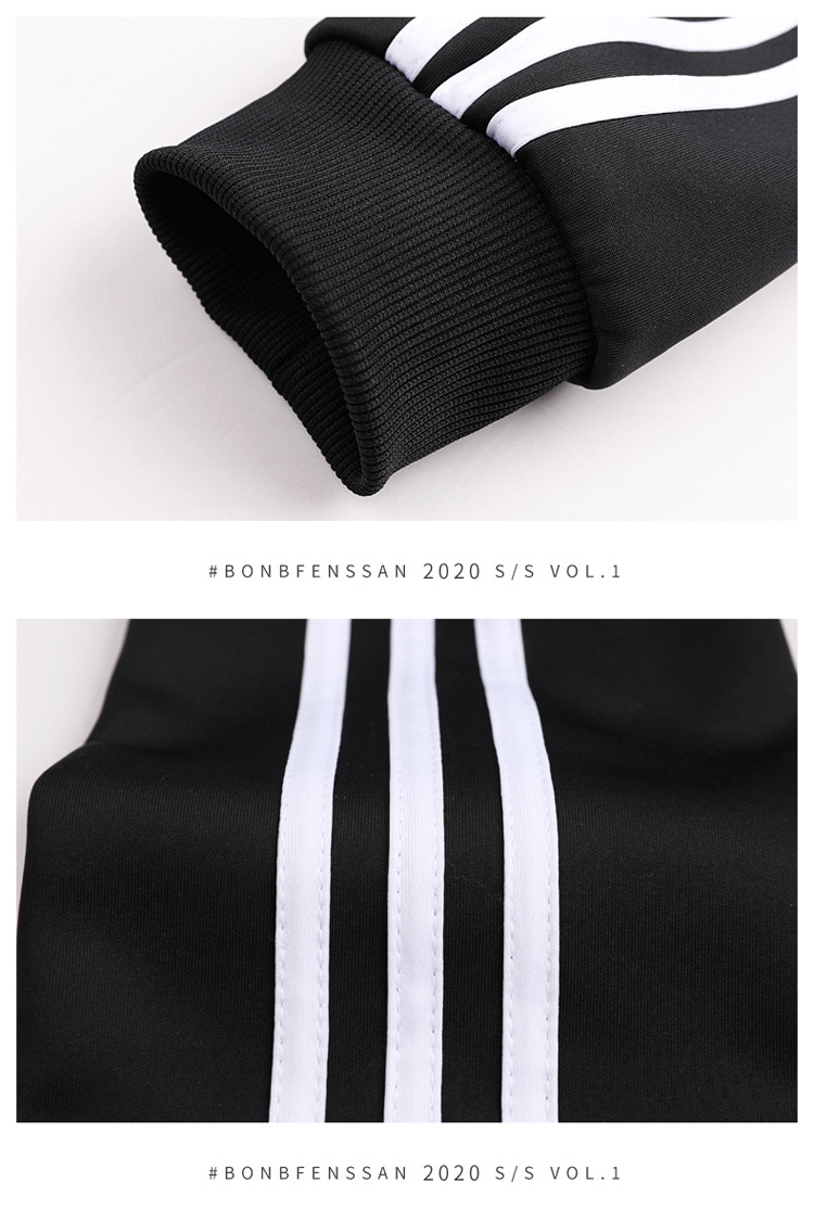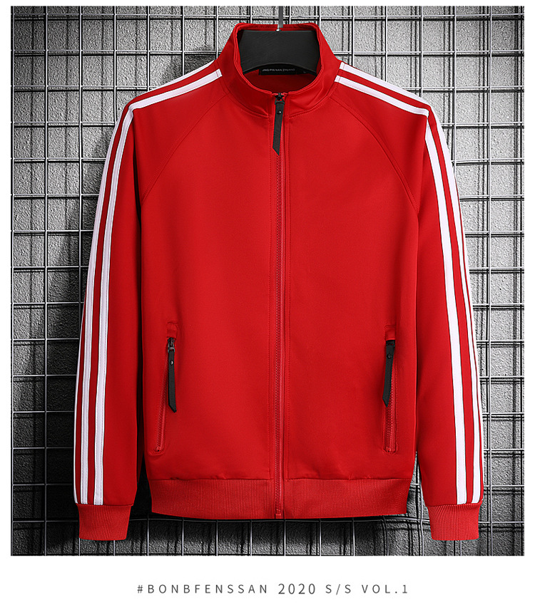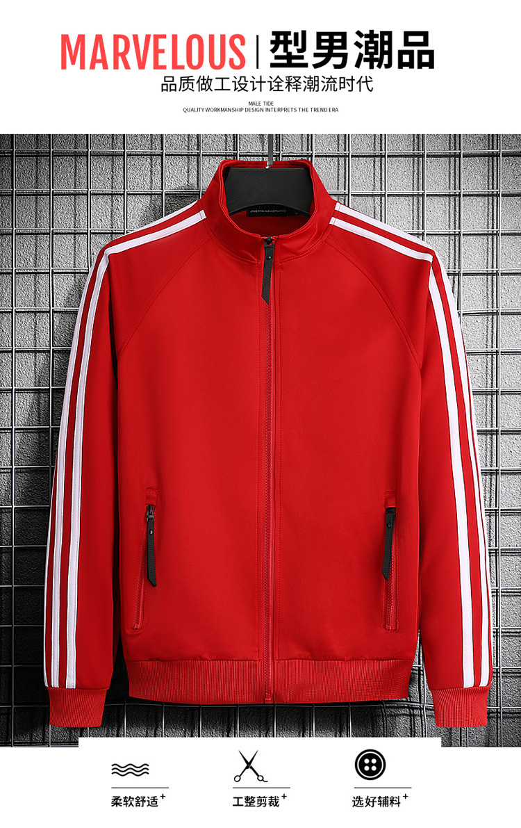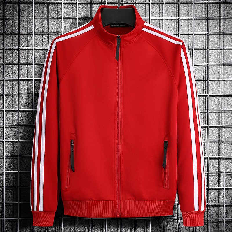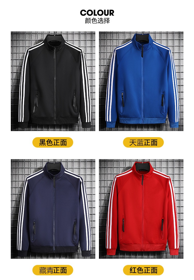 빅사이즈 크로스보더 트렌디 브랜드 스포츠 남성 스탠드업 칼라 3스트라이프 가디건 재킷 트렌디 스웨트셔츠로 로고를 맞춤 제작하기에 적합합니다.