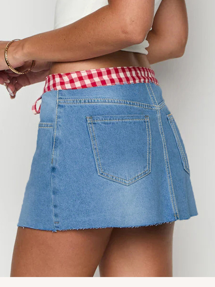 유럽과 미국의 대비 컬러 데님 스커트 미니 스커트 TEMU Amazon SHEIN 독립 스테이션 TK스토어 가기