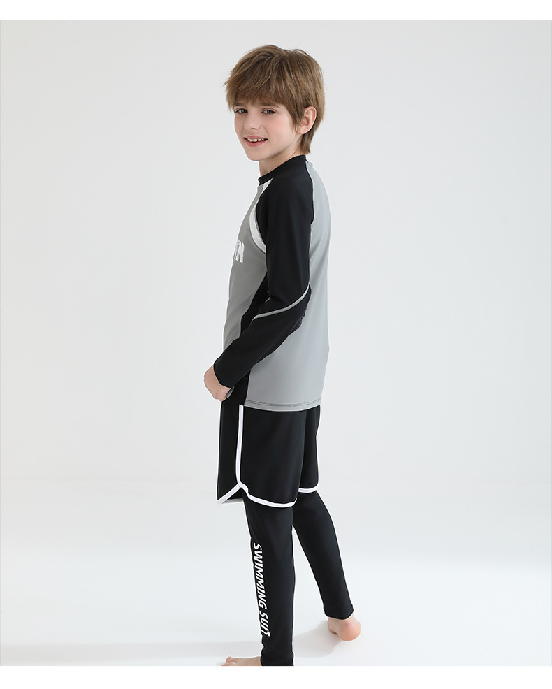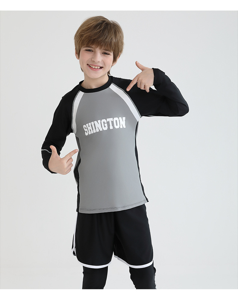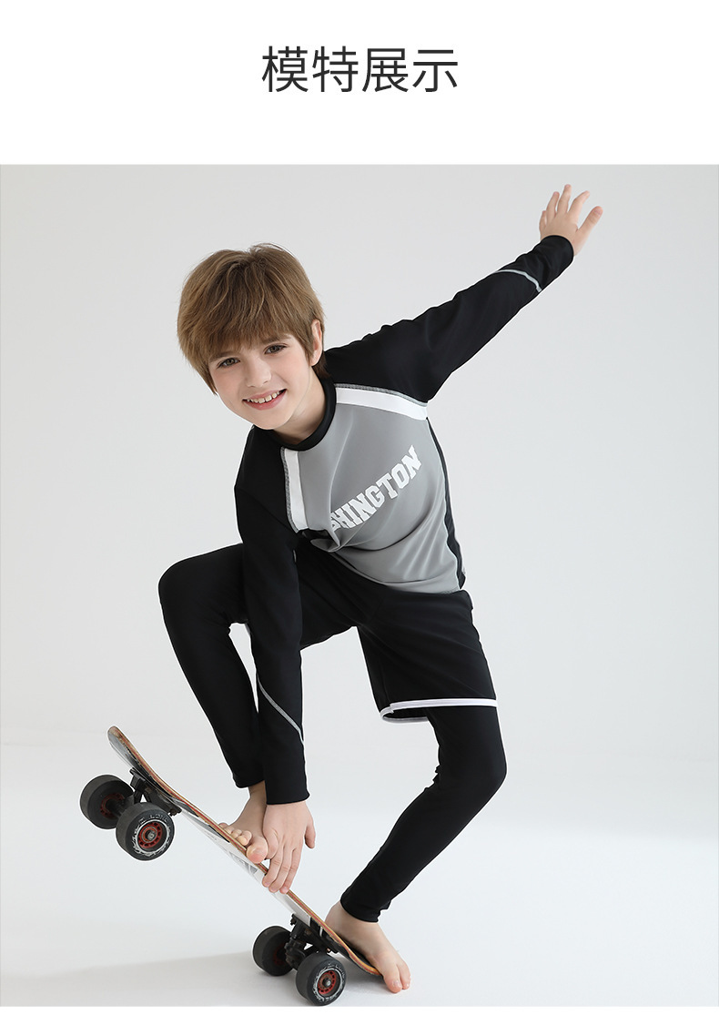 新款儿童泳衣长袖长裤防晒速干男童中大童分体套装学生专业游泳装