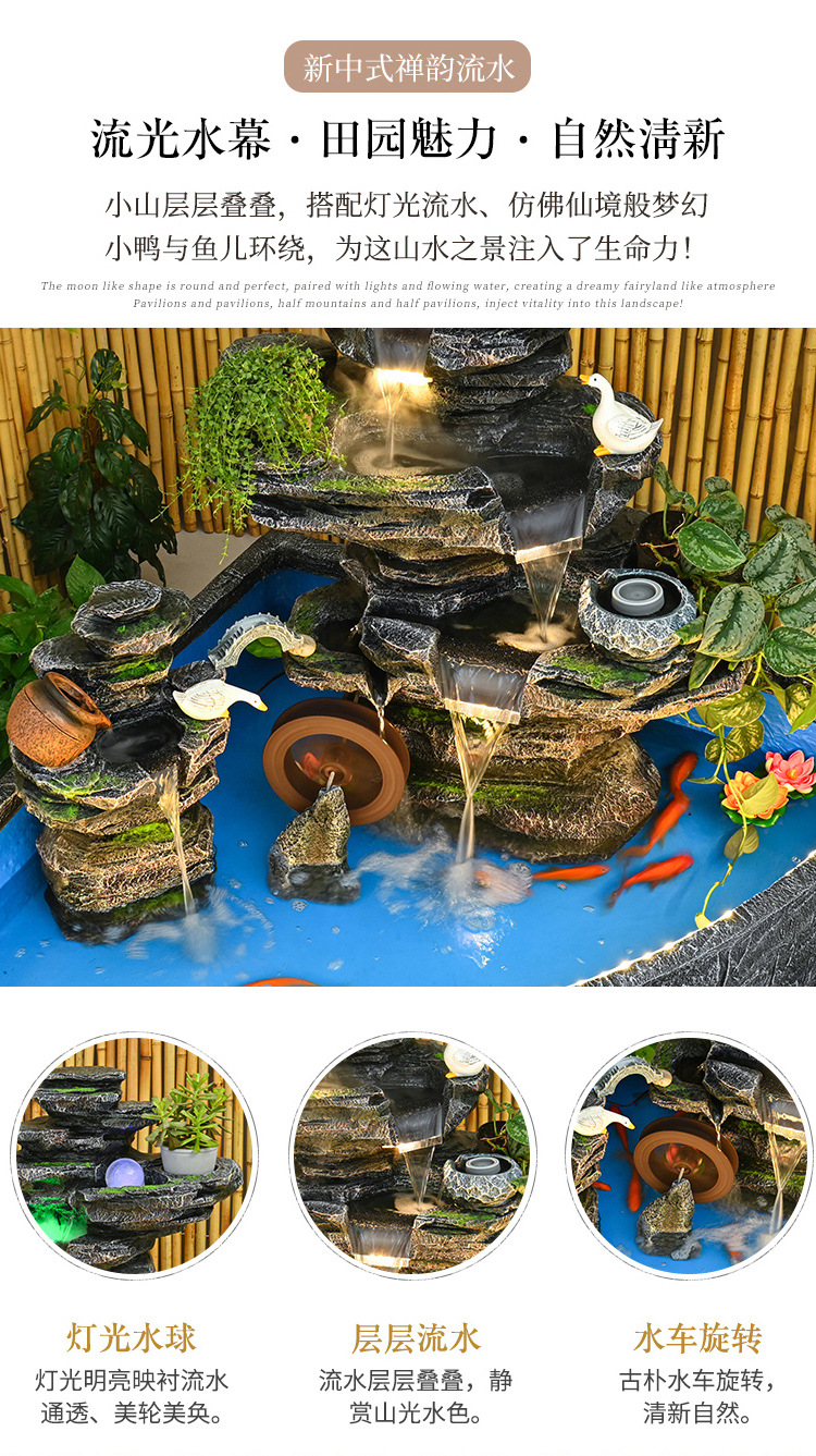 야외 안뜰 물고기 연못, 암석, 흐르는 물 분수, 조경 장식, 빌라 대형 풍수 휠, 조경 순환 물 장식품