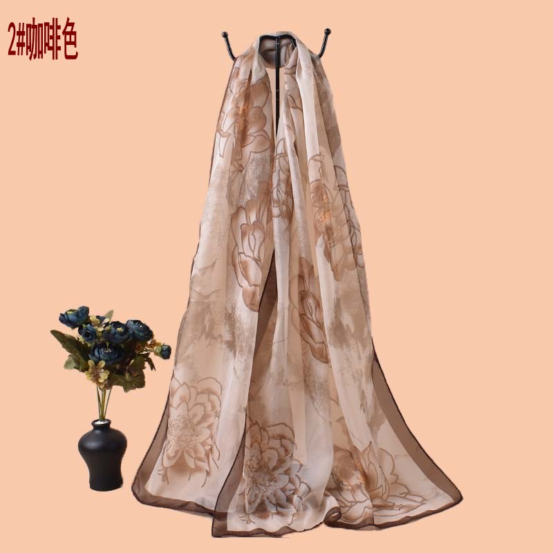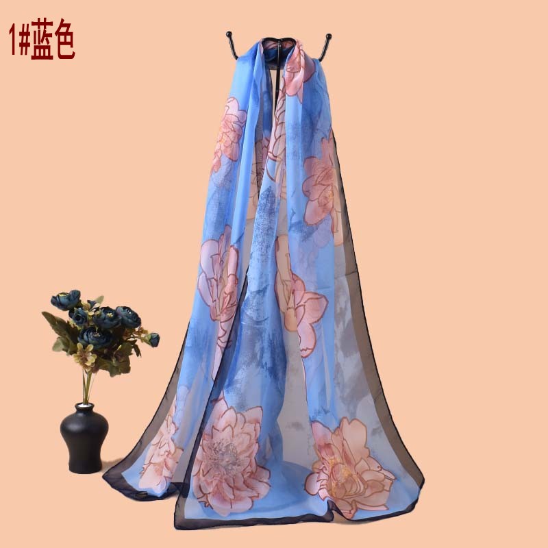 2025 새로운 우아하고 아름다운 꽃 인쇄 얇은 거즈 스카프 태양 보호 쉬폰 실크 스카프 통기성 스카프 도매스토어 가기
