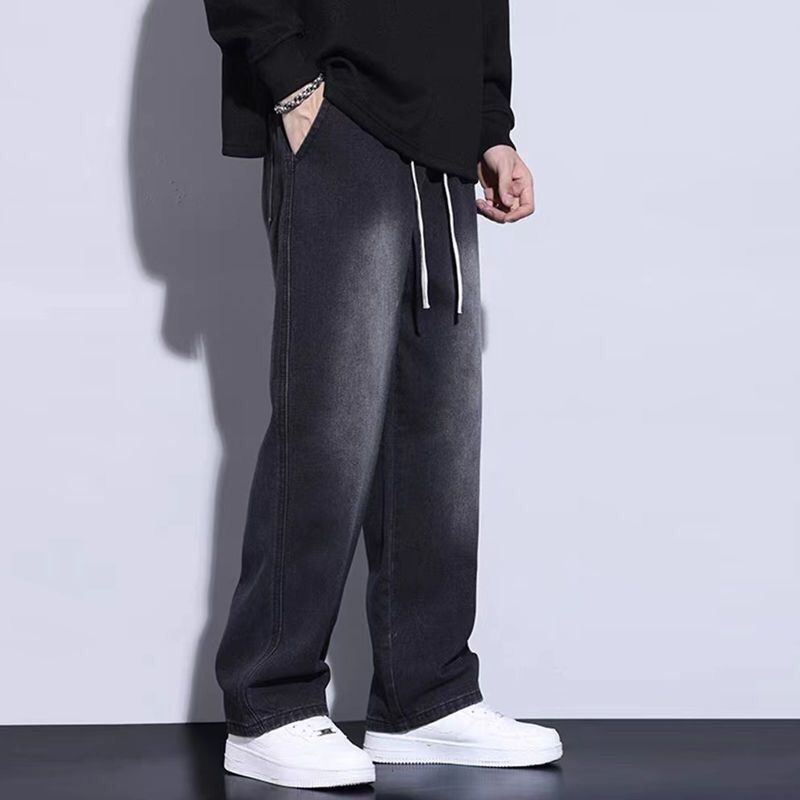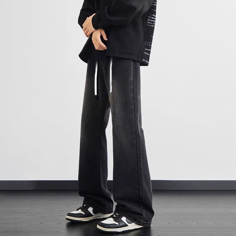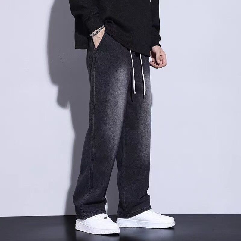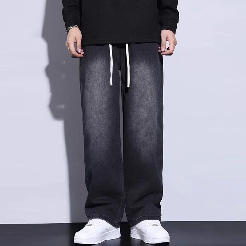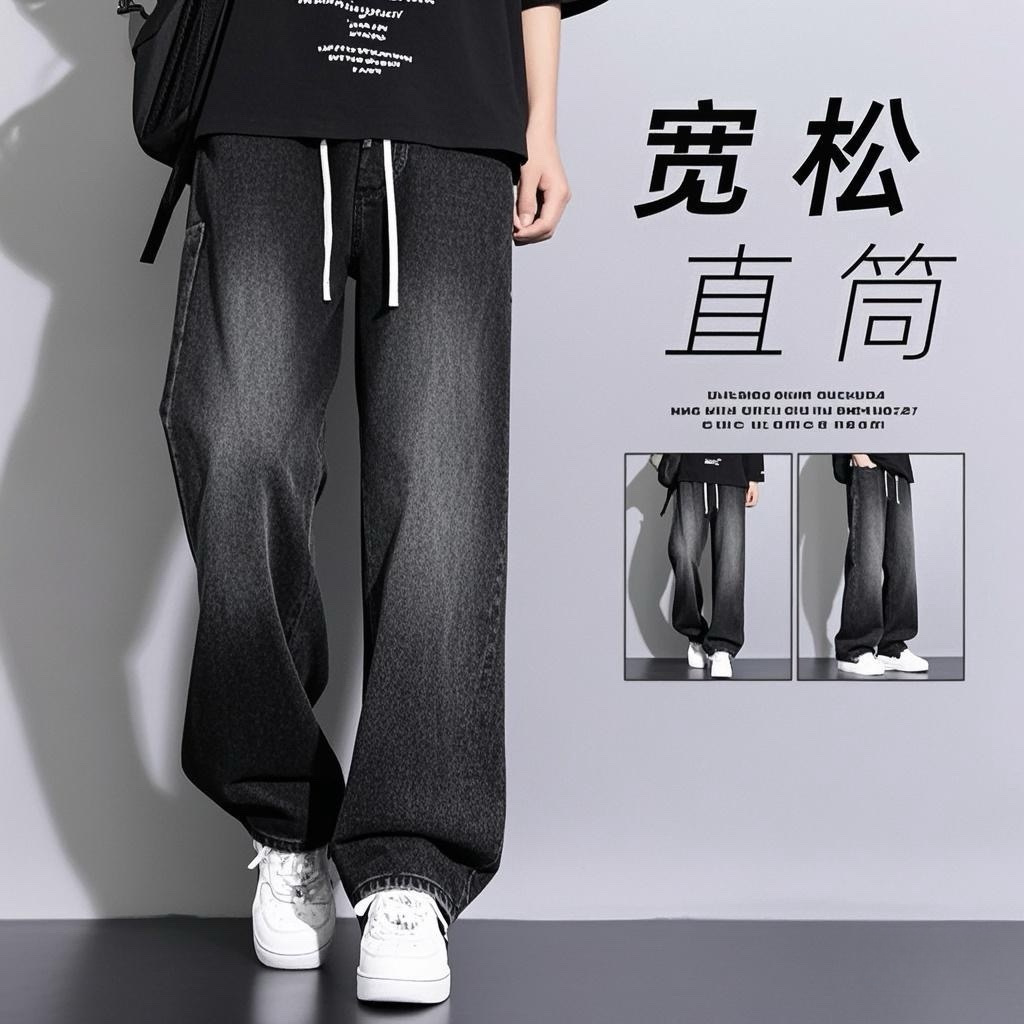 남성용 워싱 스트레이트 와이드 레그 청바지, 레트로 트렌디 브랜드 루즈 캐주얼 팬츠, 봄 여름 다용도 트렌디 롱 팬츠스토어 가기