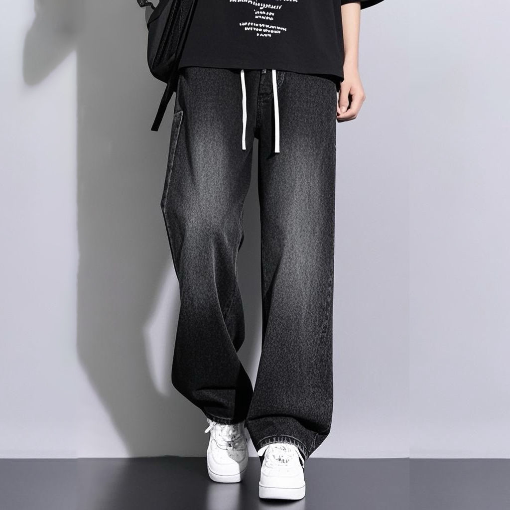 남성용 워싱 스트레이트 와이드 레그 청바지, 레트로 트렌디 브랜드 루즈 캐주얼 팬츠, 봄 여름 다용도 트렌디 롱 팬츠