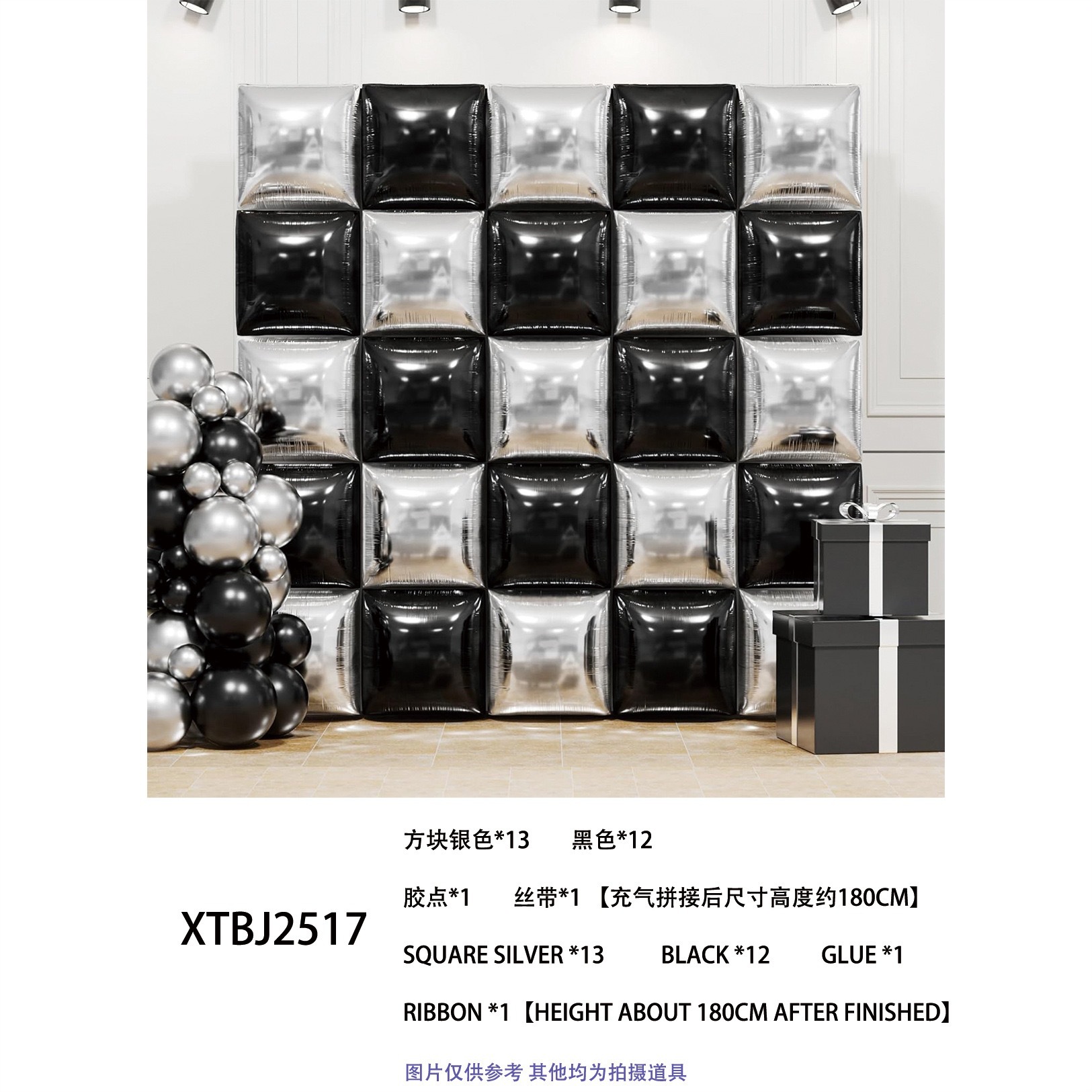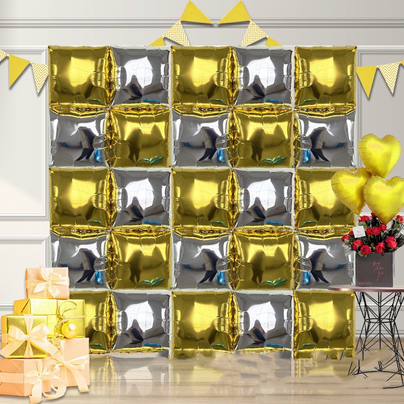 양면 벨트 스트랩 사각형 배경 벽 알루미늄 필름 풍선 생일 파티 웨딩 웨딩 배경 벽 장식 용품
