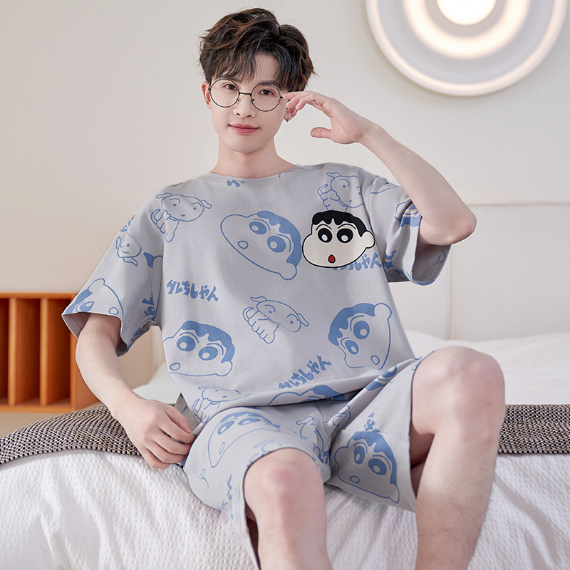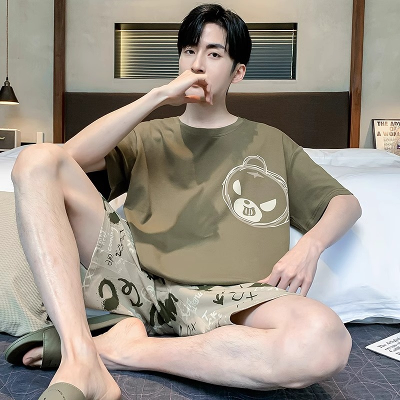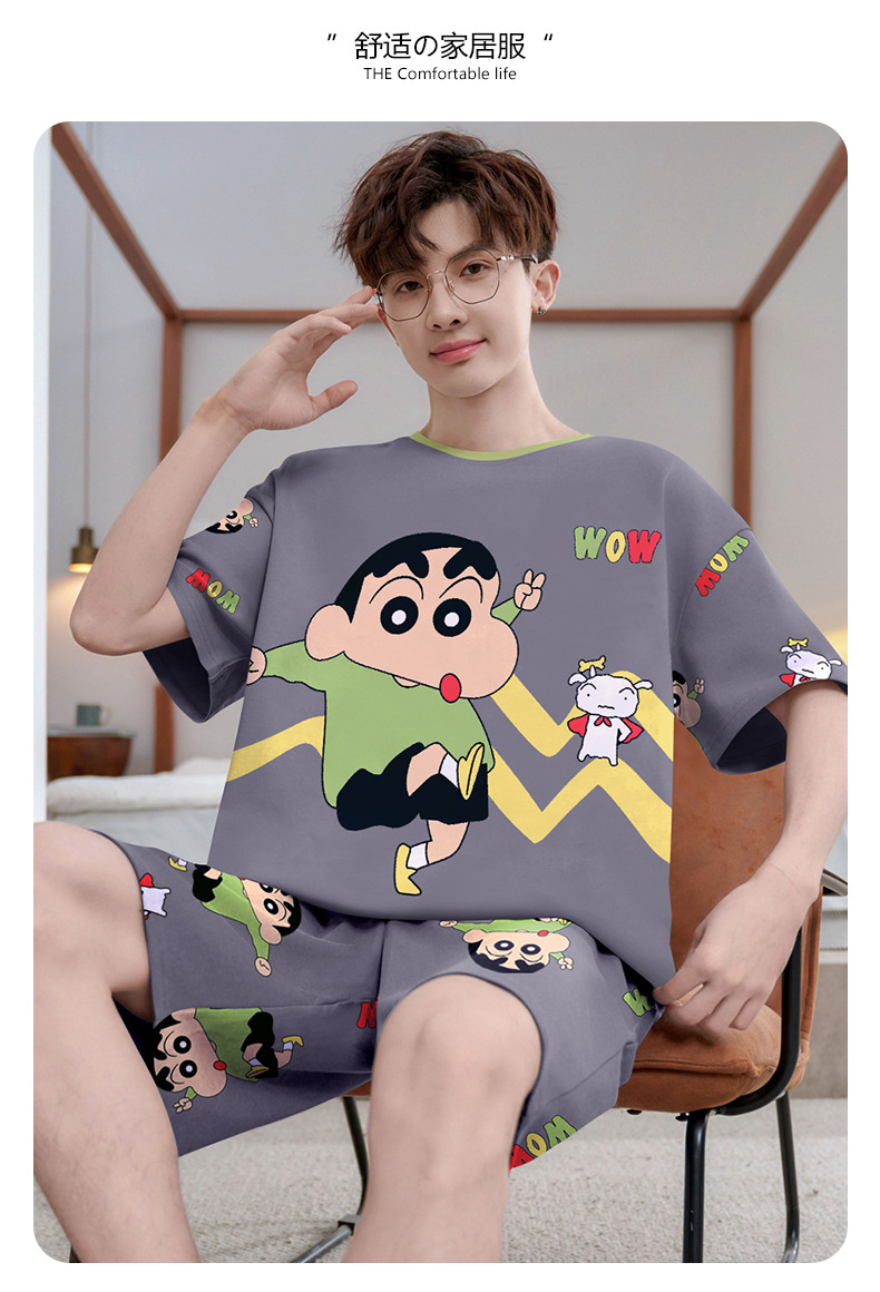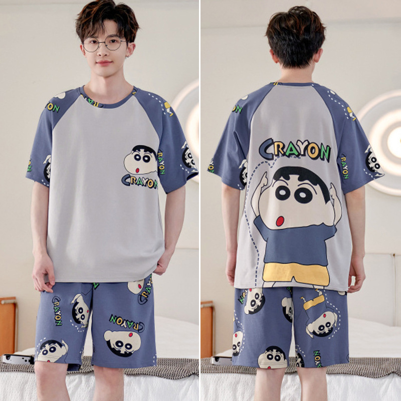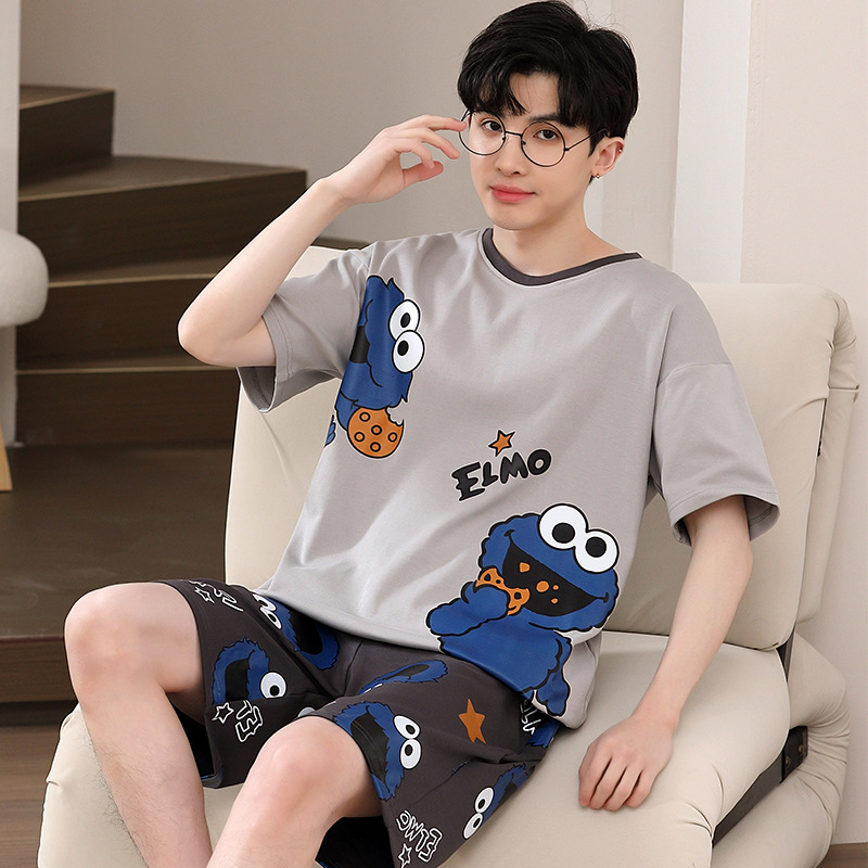 여름 잠옷 남자 반팔 반바지 얇은 십대 만화 느슨한 편안한 외부 착용 홈 의류 세트스토어 가기