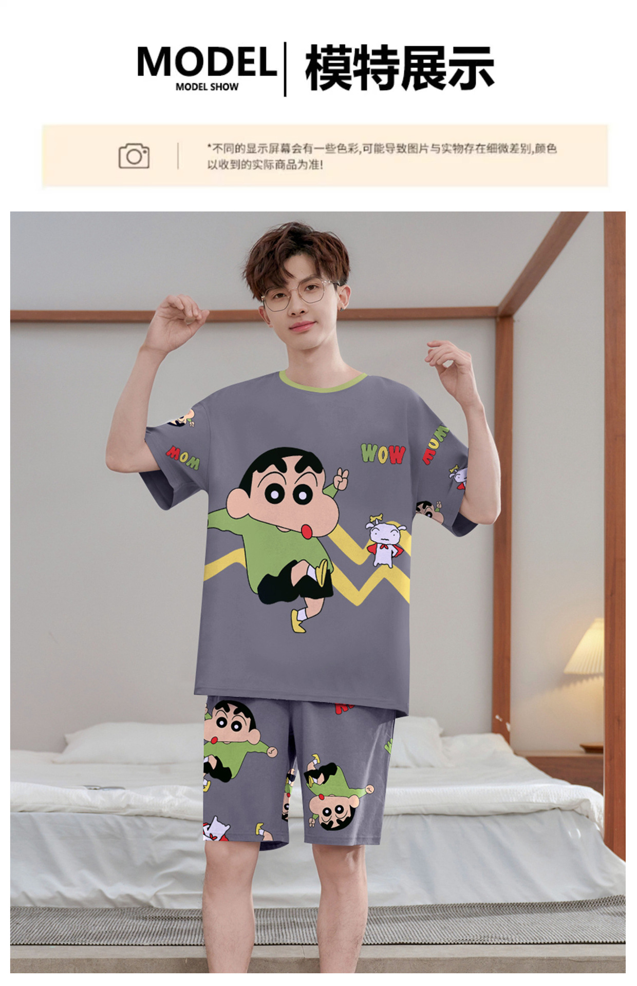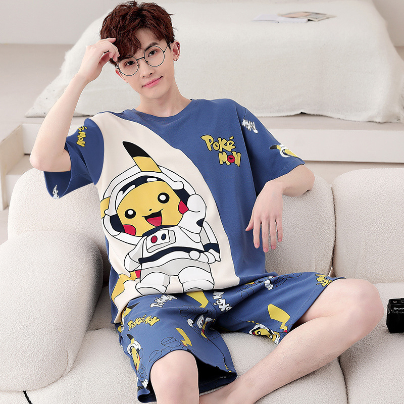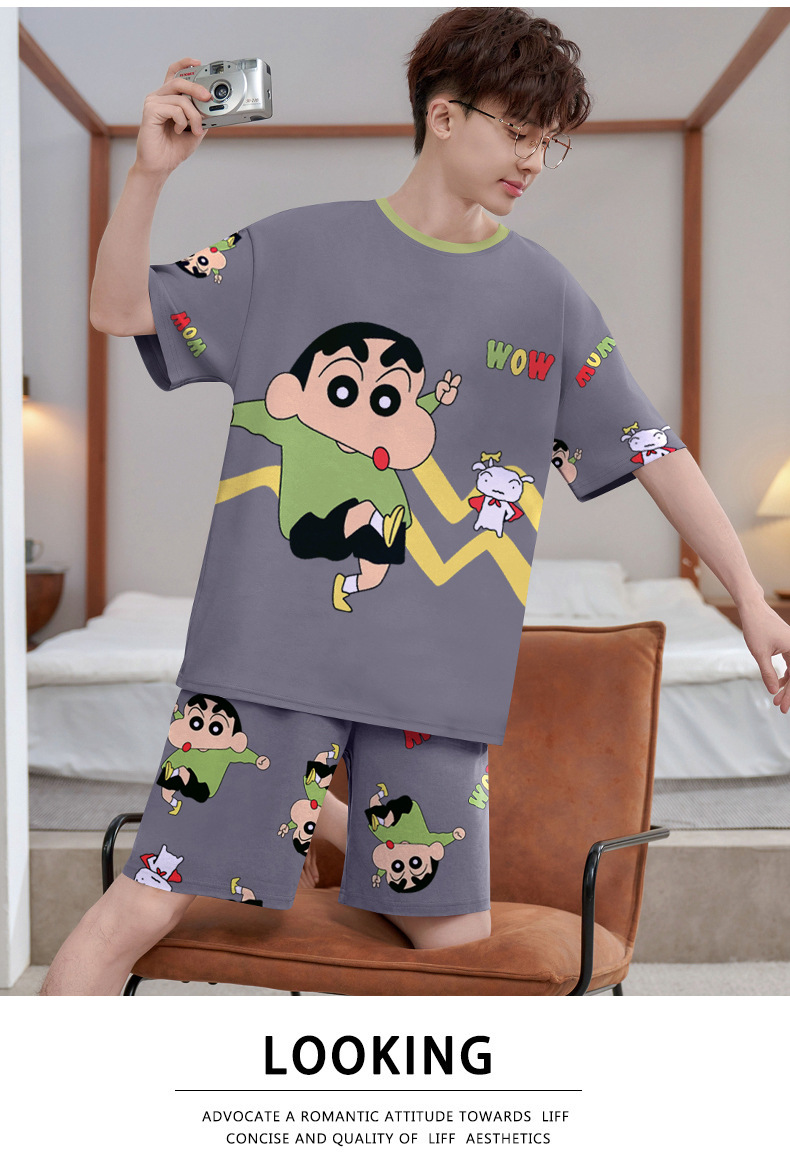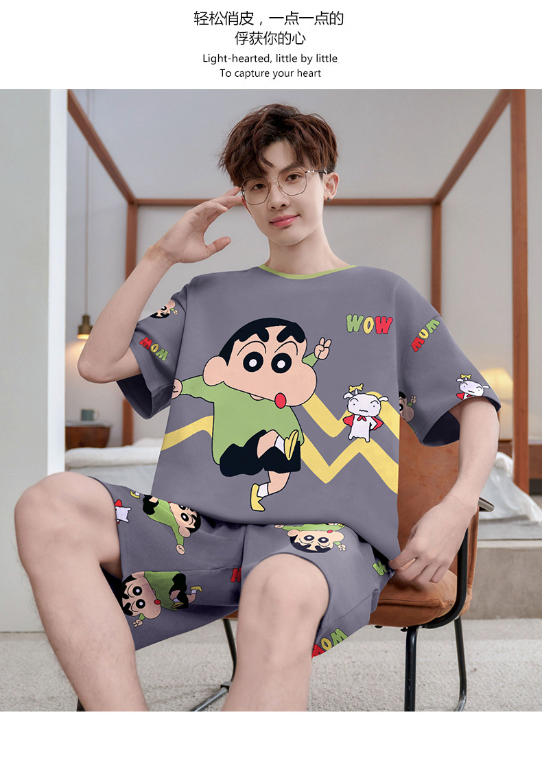 여름 잠옷 남자 반팔 반바지 얇은 십대 만화 느슨한 편안한 외부 착용 홈 의류 세트스토어 가기
