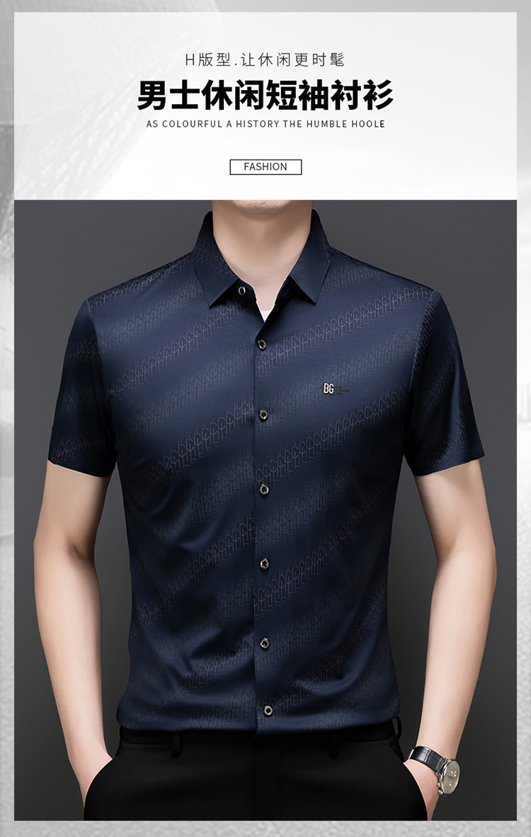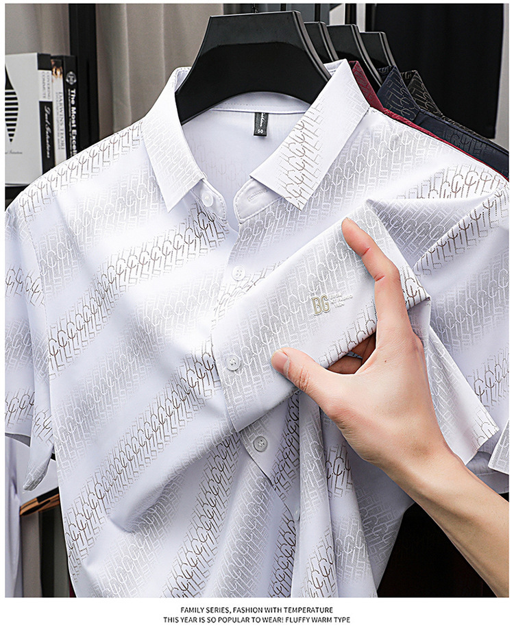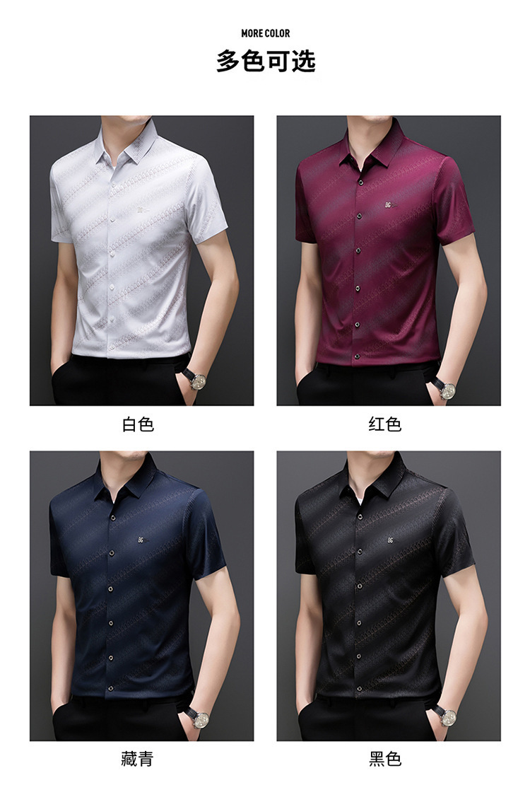 라이트 럭셔리 정통 2025 여름 남성 아이스 실크 셔츠 비즈니스 캐주얼 스트라이프 다목적 중년 옷깃 하이 엔드 셔츠스토어 가기