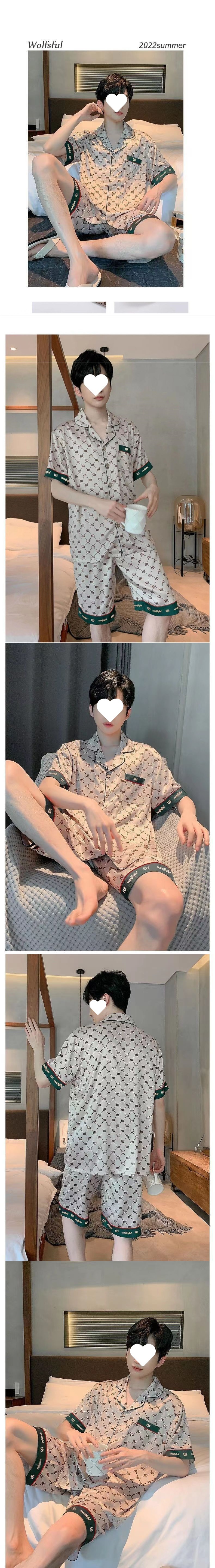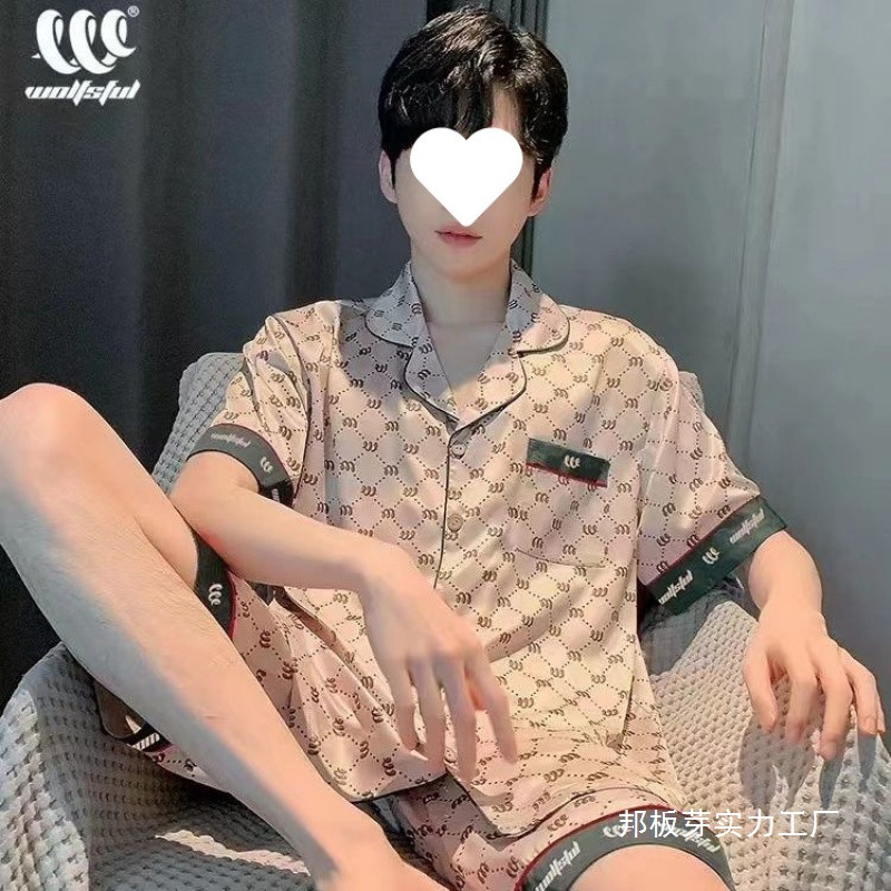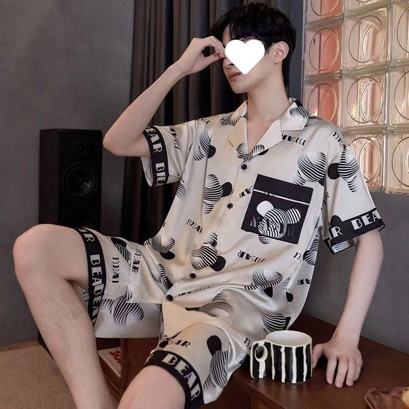새로운 얼음 실크 반팔 반바지 남성 잠옷 남성 봄 여름 2025 봄 여름 얇은 스타일은 집 밖에서 착용할 수 있습니다 도매스토어 가기