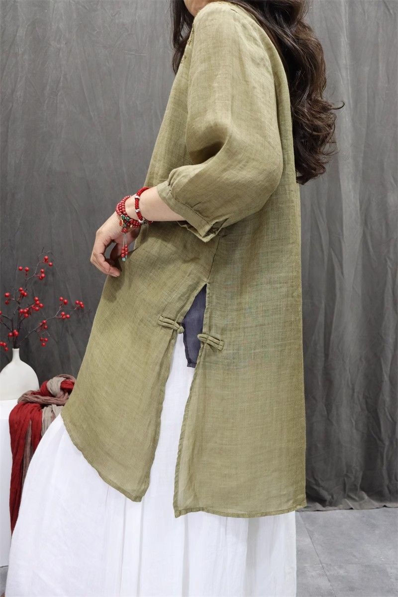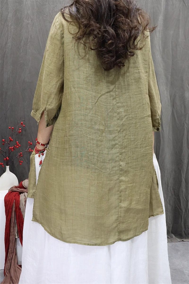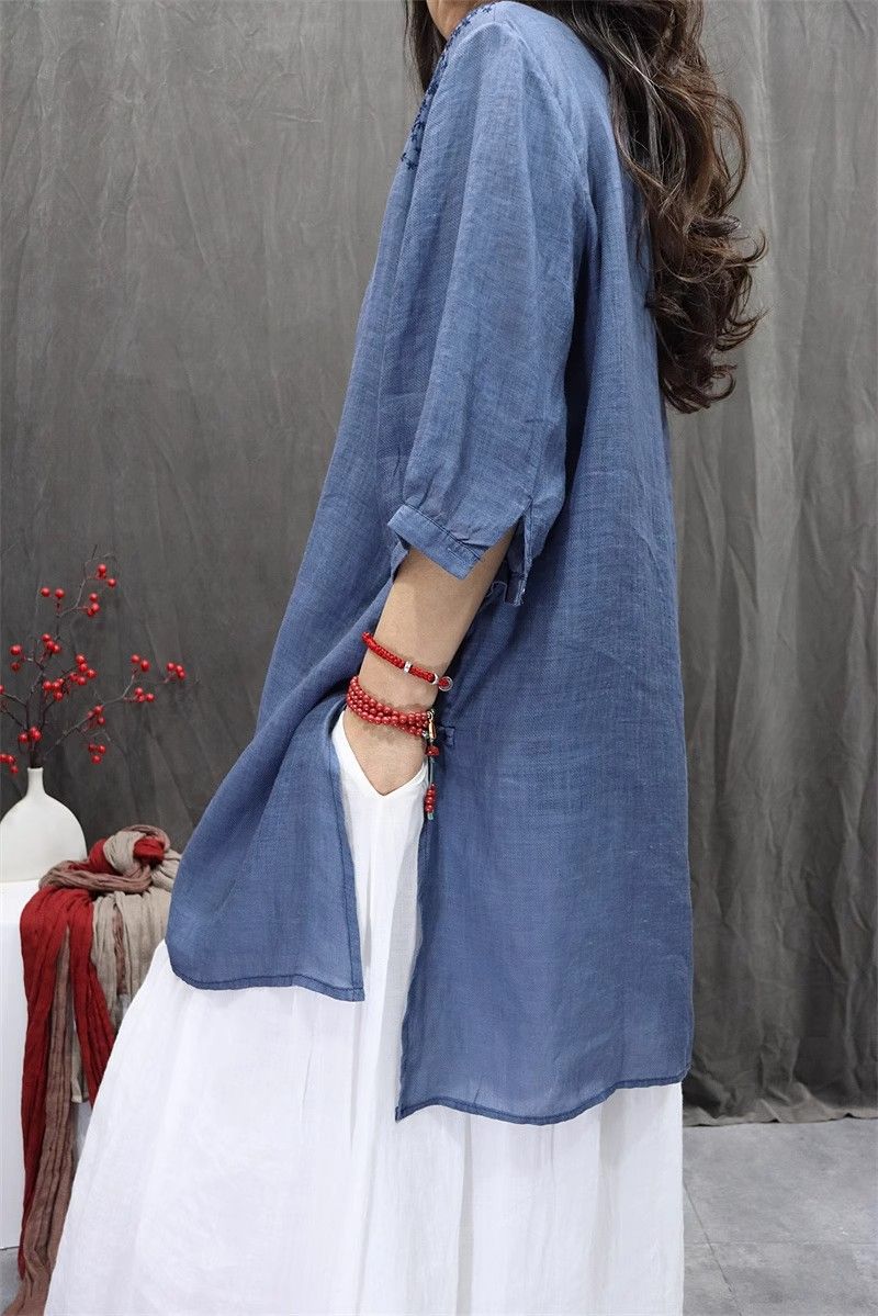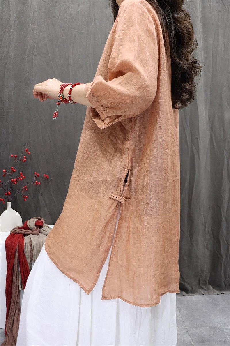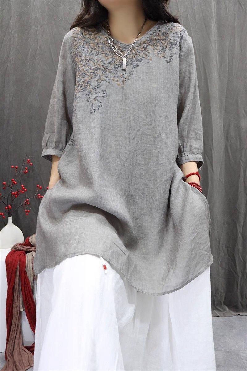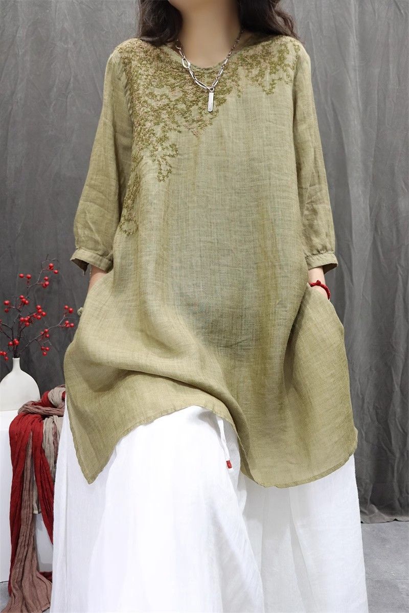 2025 봄 여름 새로운 복고풍 자수 티셔츠 루즈 슬리밍 예술적 캐주얼 중간 길이 탑 여성 민족 스타일