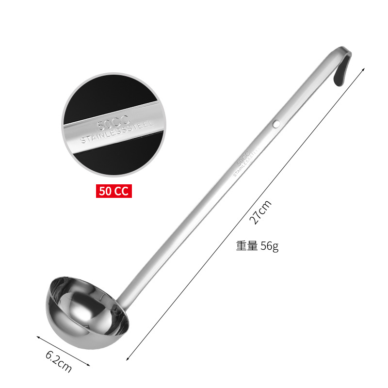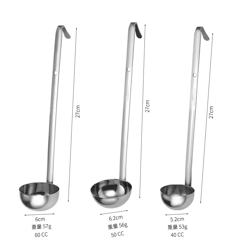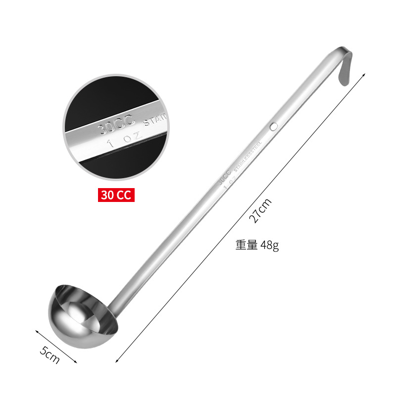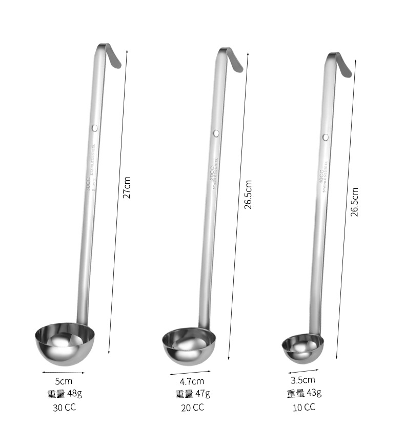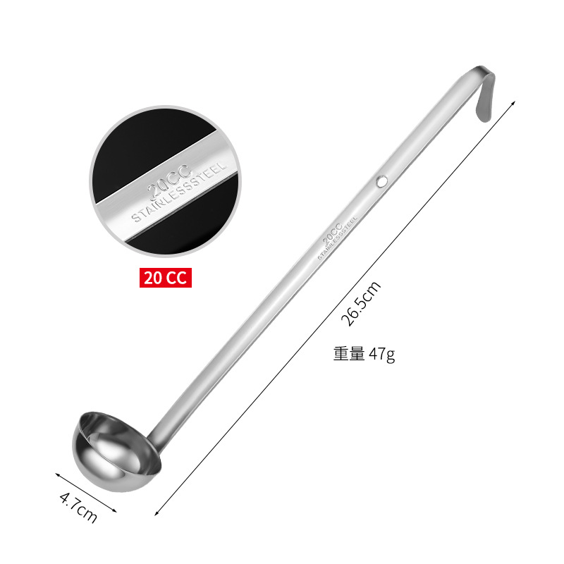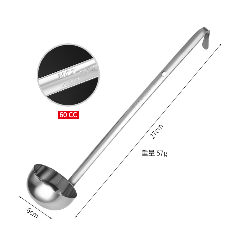 후크가 있는 스테인레스 스틸 수프 쉘 롱 핸들 온스 스푼 호텔 주방 조미료 온스 스푼 밀크 티 음료 잼 측정 스푼