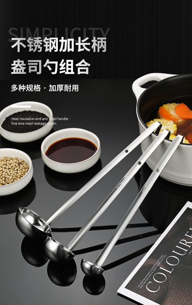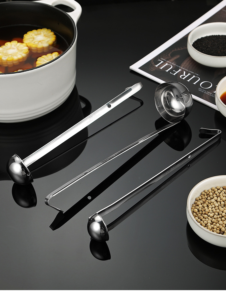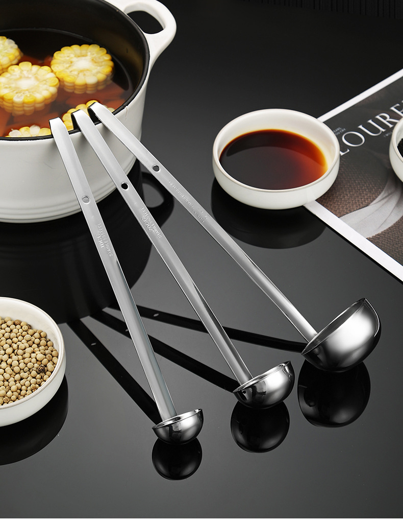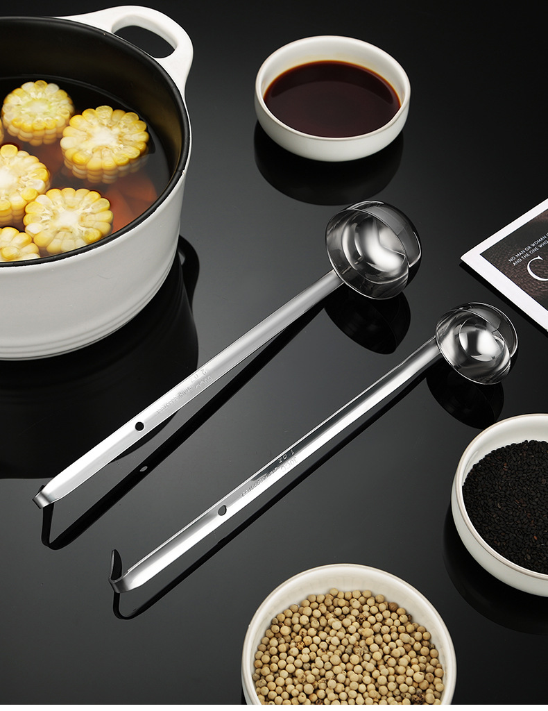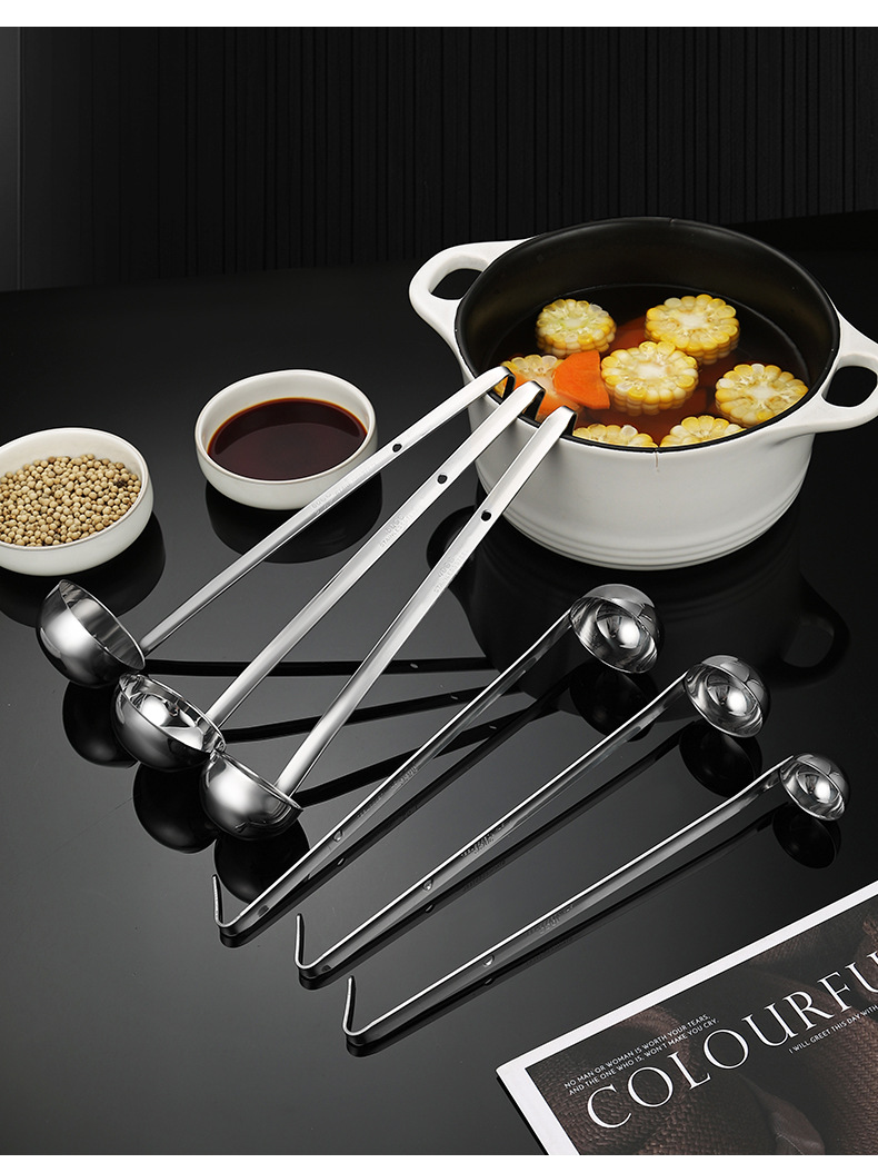 후크가 있는 스테인레스 스틸 수프 쉘 롱 핸들 온스 스푼 호텔 주방 조미료 온스 스푼 밀크 티 음료 잼 측정 스푼