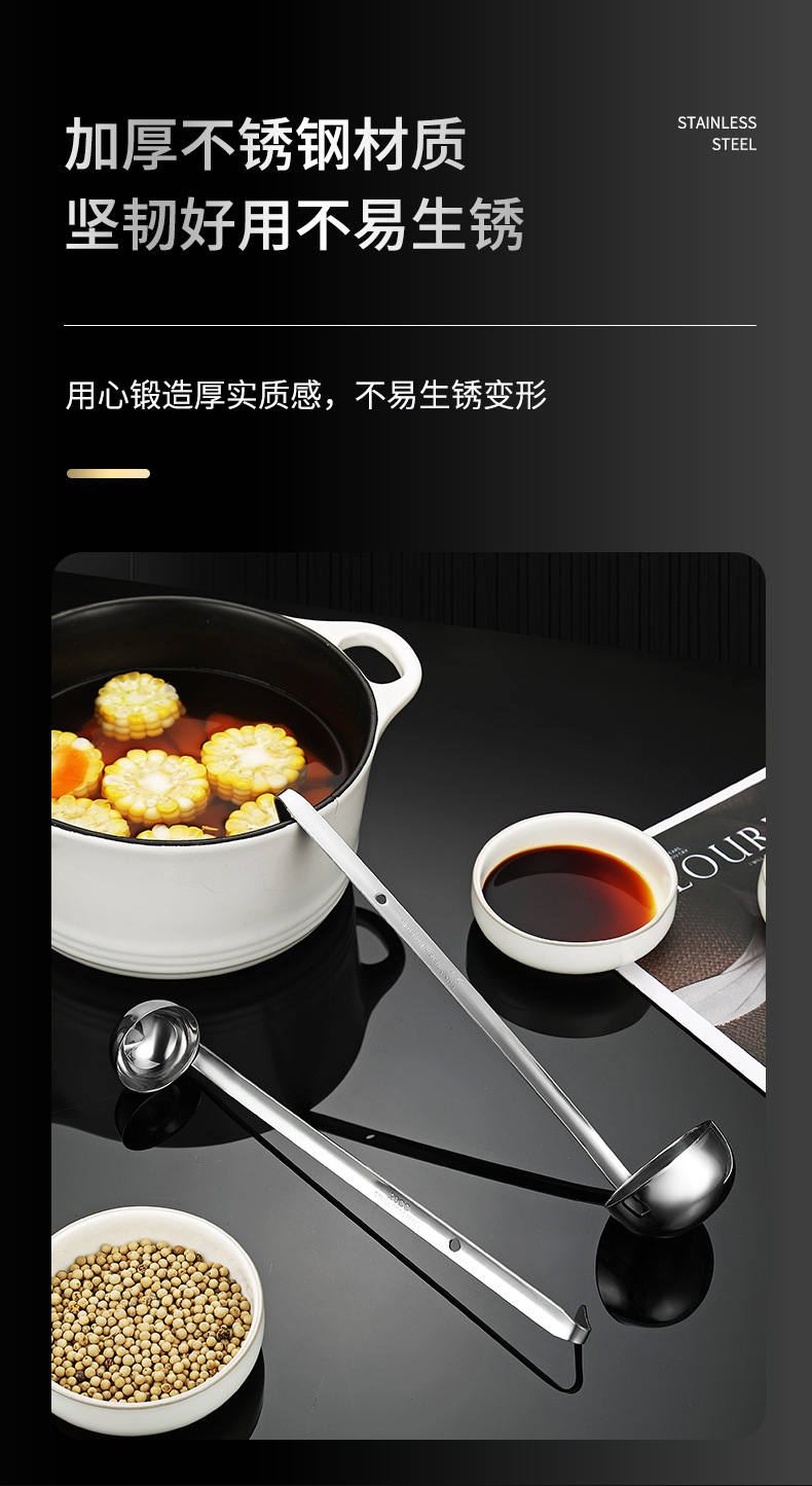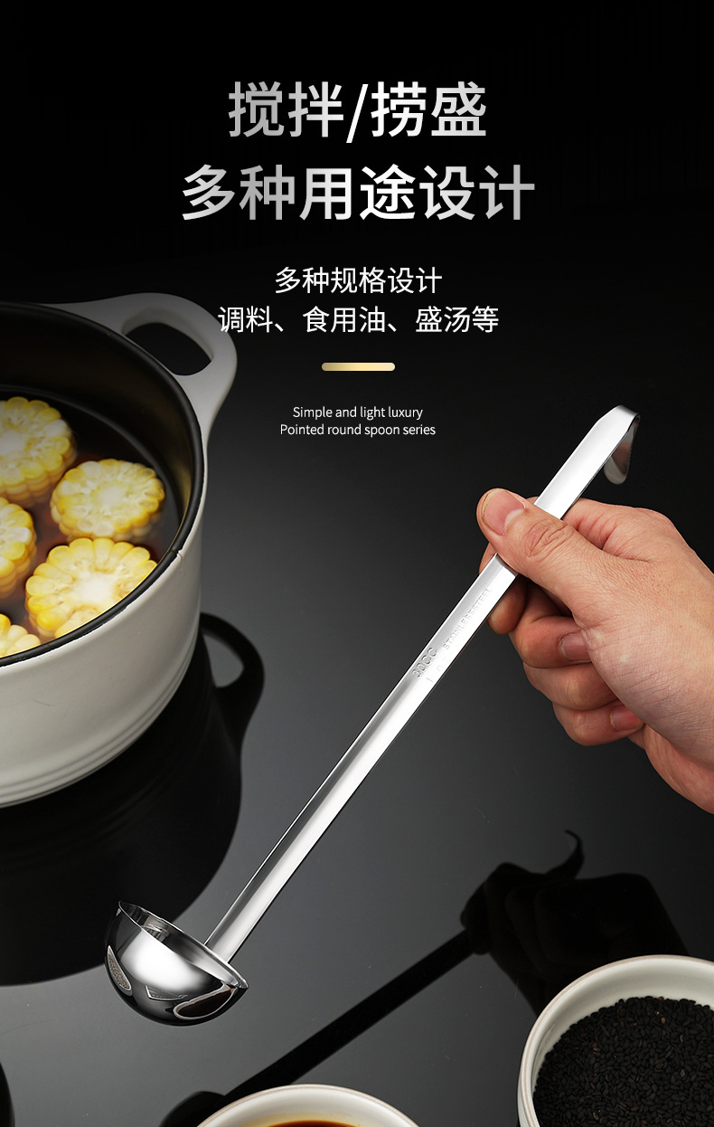 후크가 있는 스테인레스 스틸 수프 쉘 롱 핸들 온스 스푼 호텔 주방 조미료 온스 스푼 밀크 티 음료 잼 측정 스푼스토어 가기