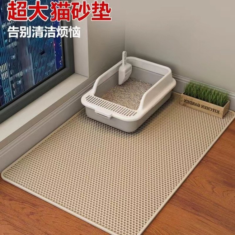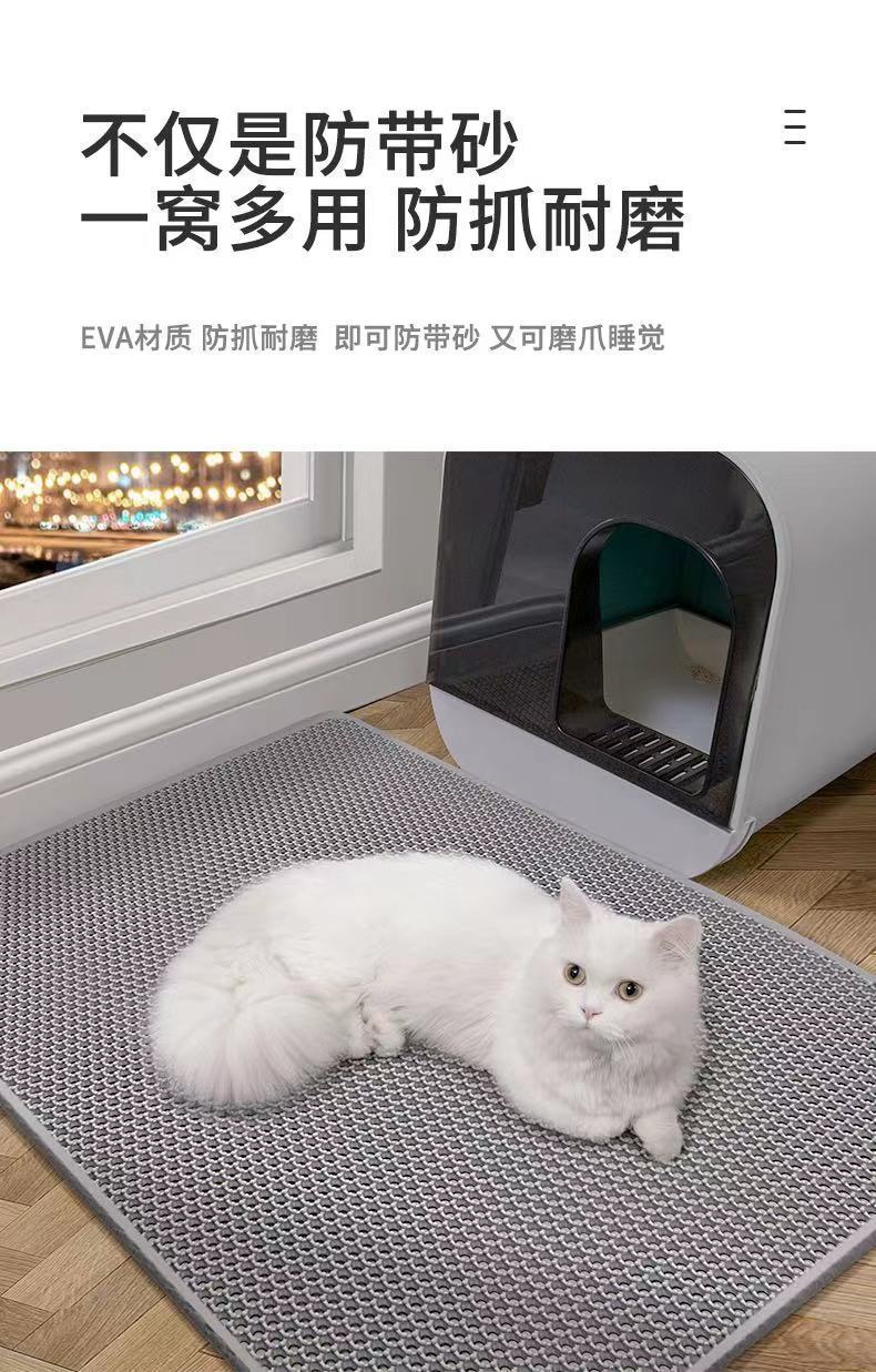 고양이 모래 매트 더블 레이어 대형 더블 레이어 워셔블 바닥 매트는 속이 빈 필터로 제거 방지, 물 튀김 방지 및 모래 제어 고양이 화장실 용품스토어 가기