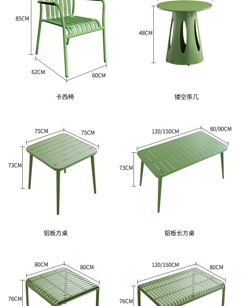 • 의자 6개 + 120*80cm 알루미늄 판 직사각형 테이블