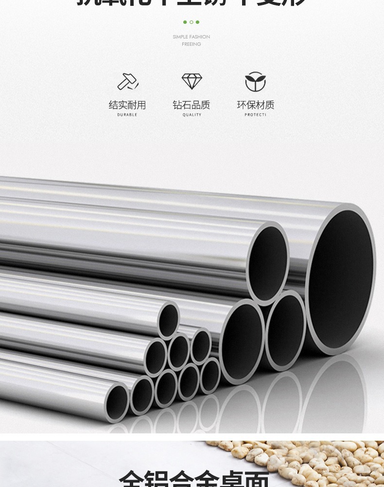 • 의자 6개+120_80cm 알루미늄 스트립 직사각형 테이블