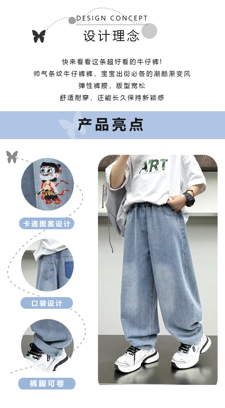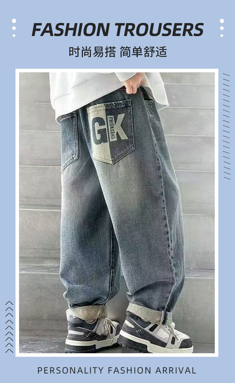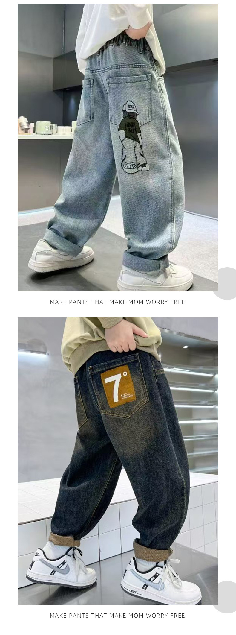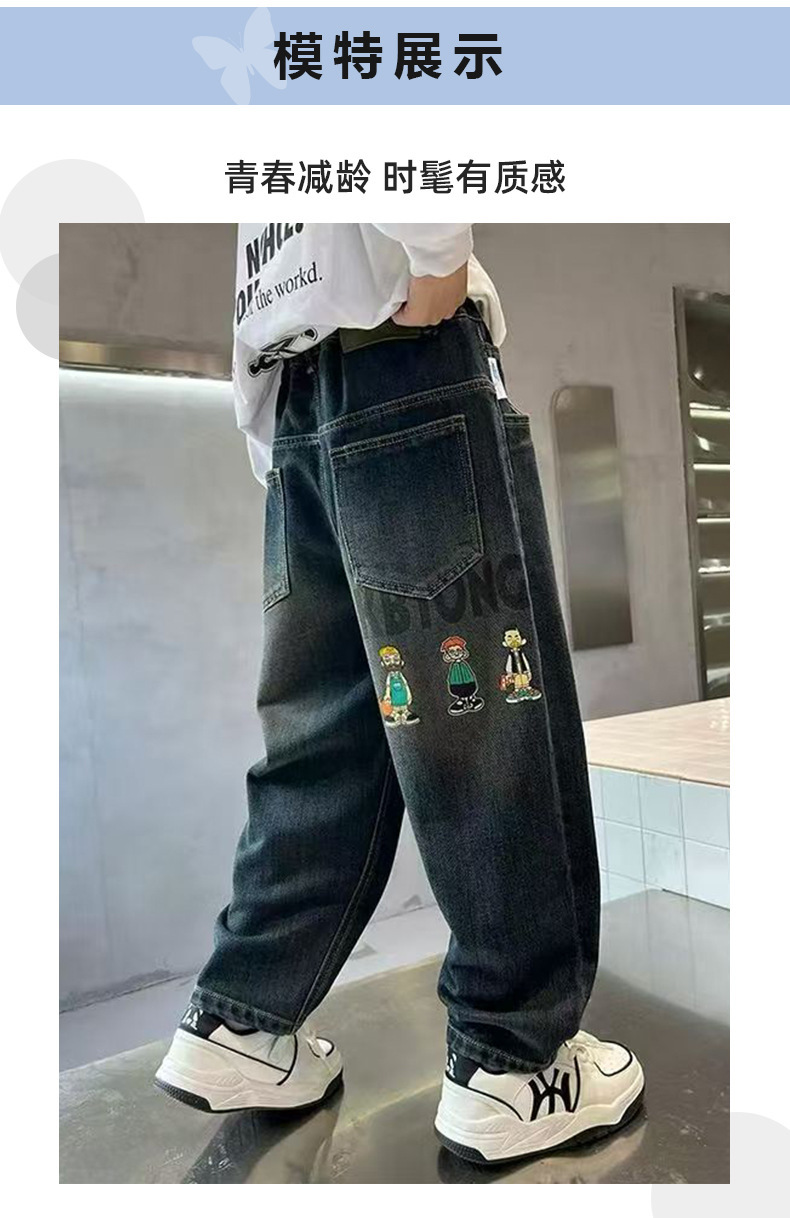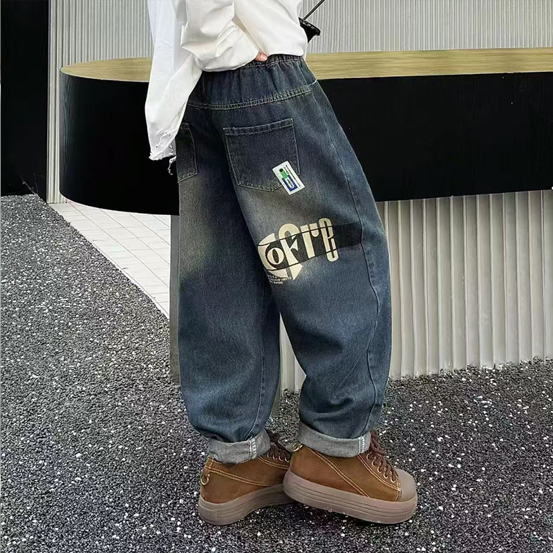 소년 청바지 봄 2025 봄 새로운 더피 잘 생긴 스타일 어린 소년 스트레이트 바지 봄과 가을 어린이 트렌디 한 바지스토어 가기