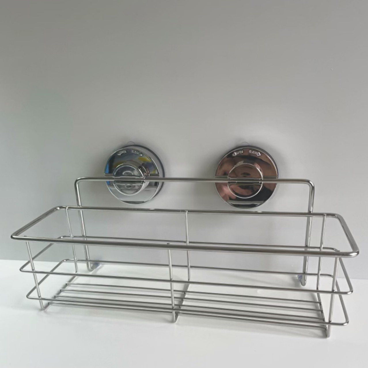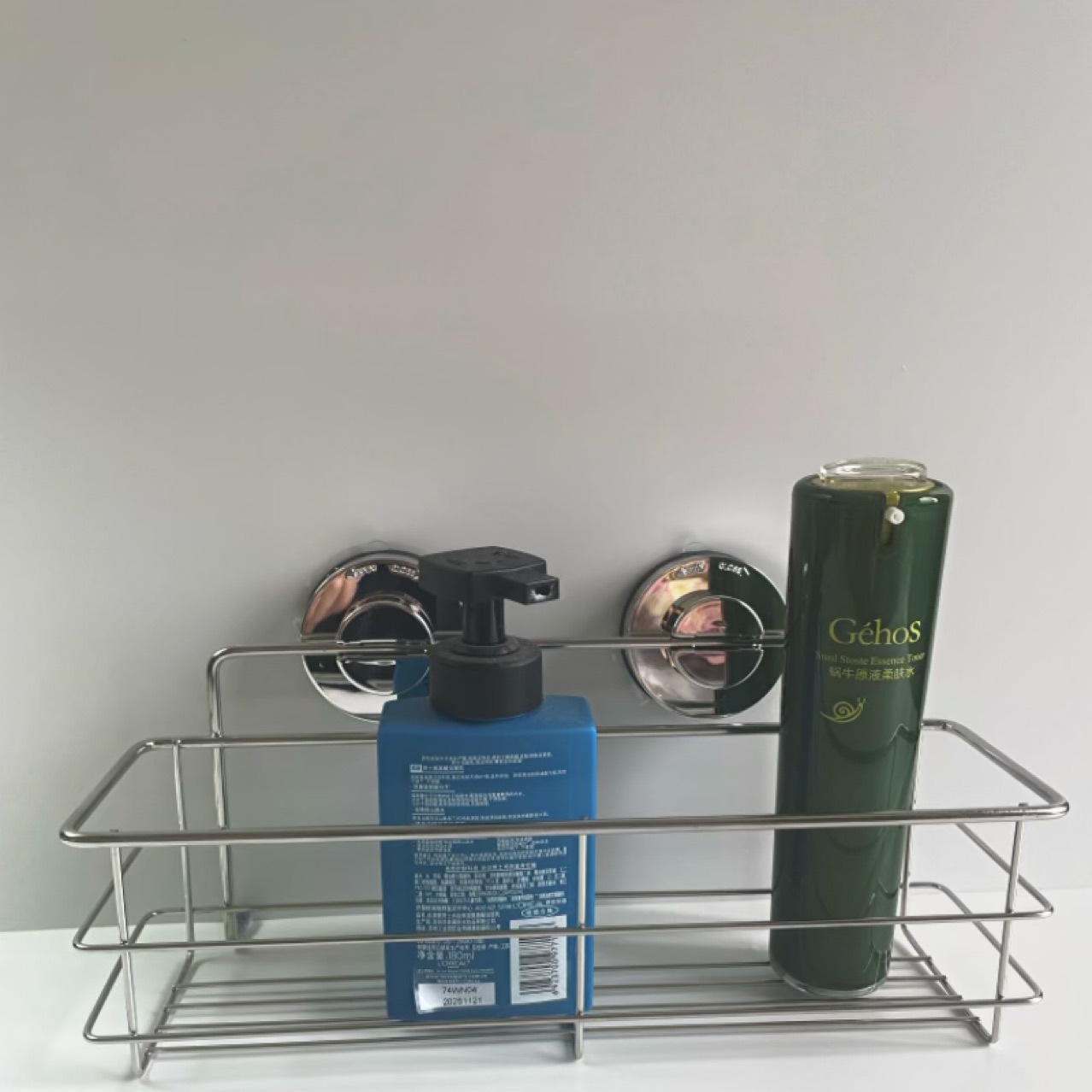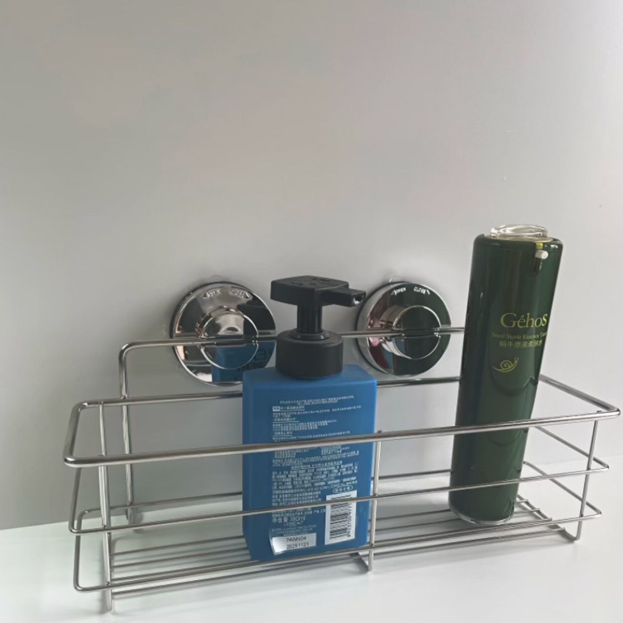 구멍을 뚫지 않는 욕실 수납 선반 화장품 정리대 흡착식 스테인리스 샴푸 보관대