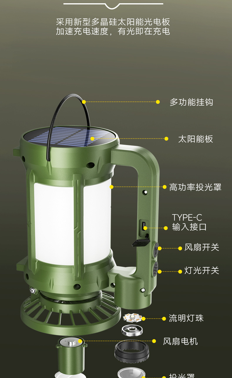 T5J 태양 야외 팬 캠핑 빛 충전 긴 내구성 텐트 빛 캠핑 지상 빛 비상 휴대용 빛