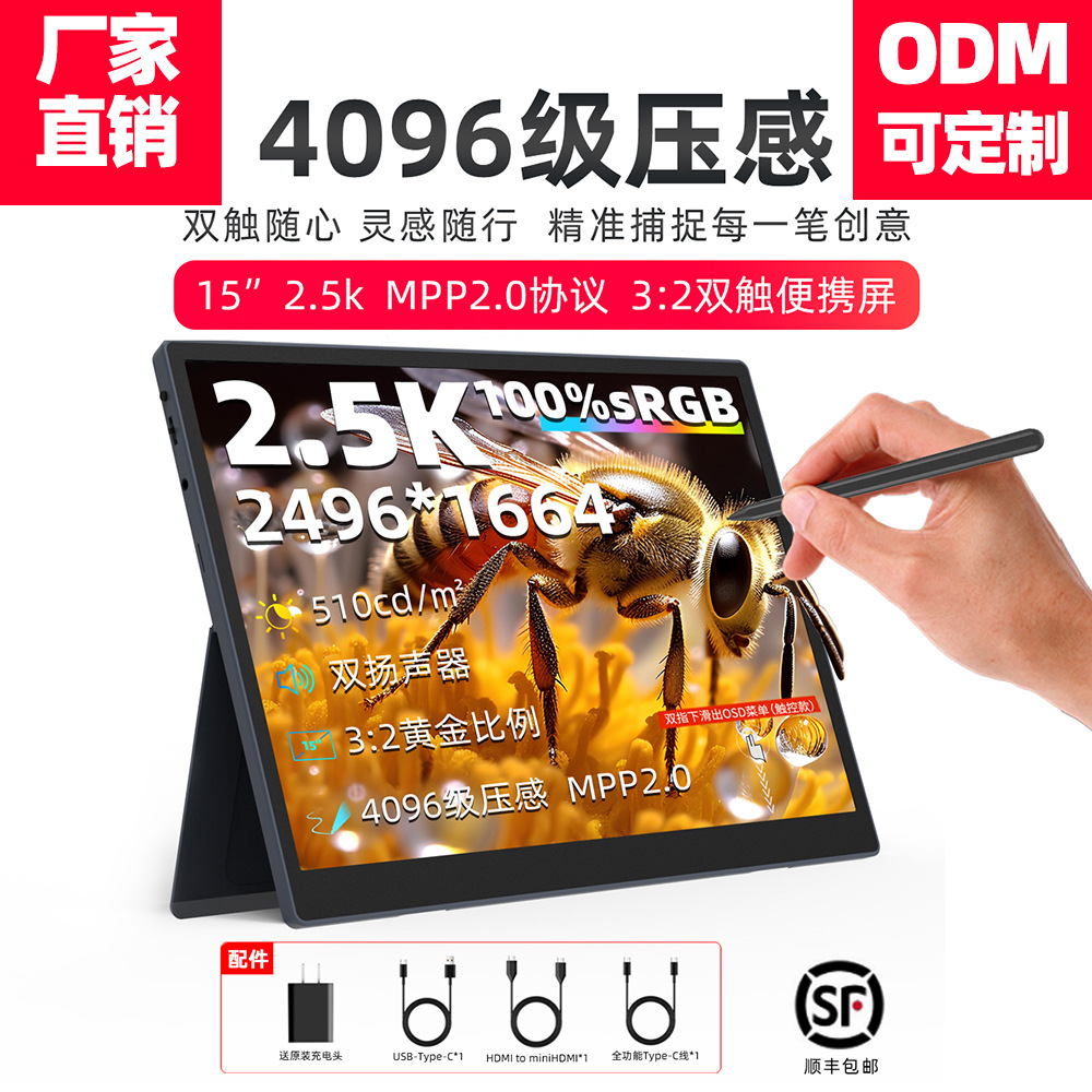 15인치 2.5K 페인팅 휴대용 모니터 4096 레벨 압력 감지 노트북 PS5 외부 화면 터치 IPS 스크린