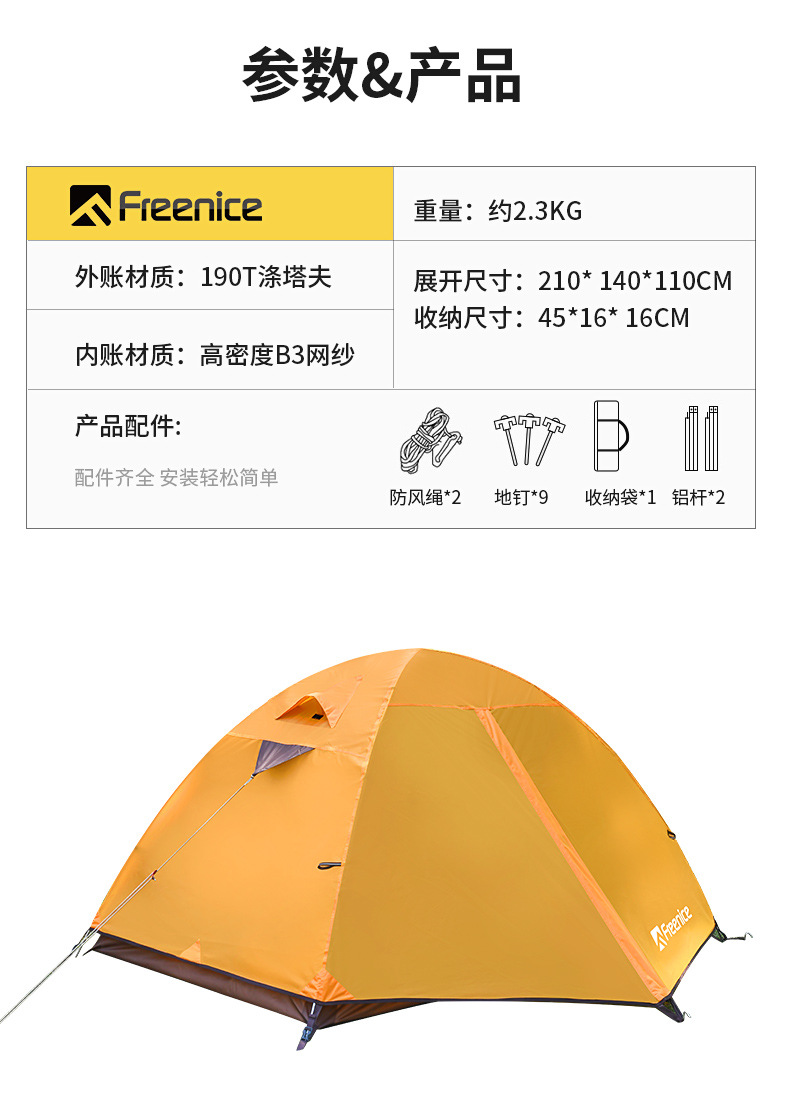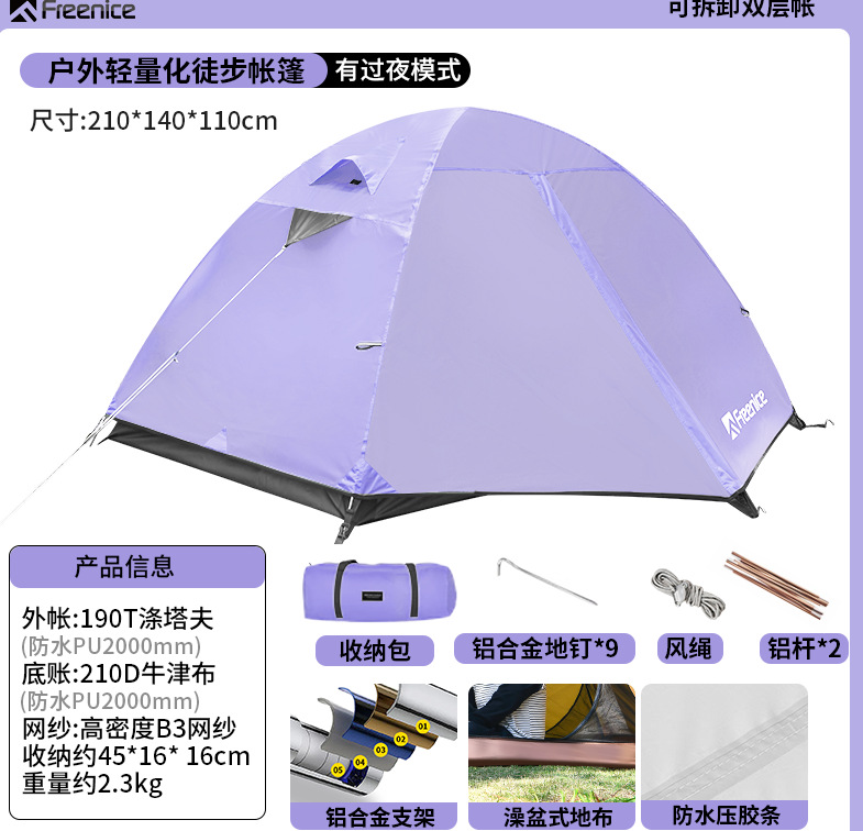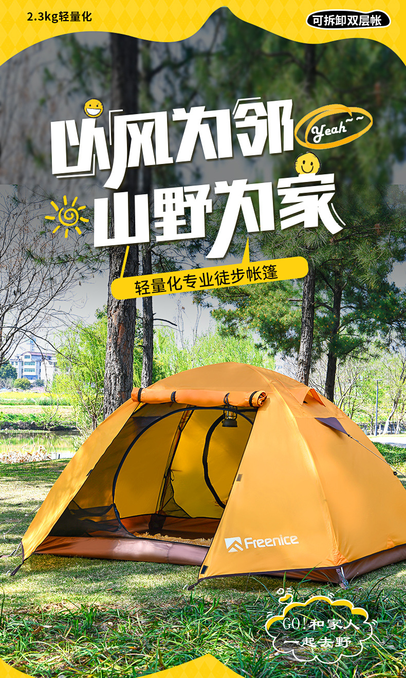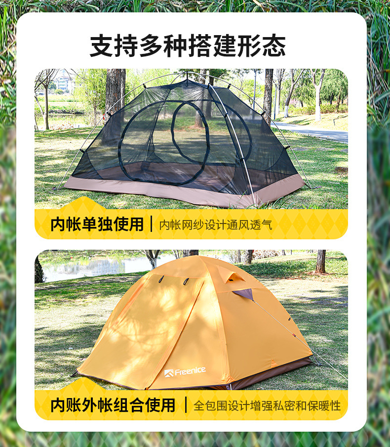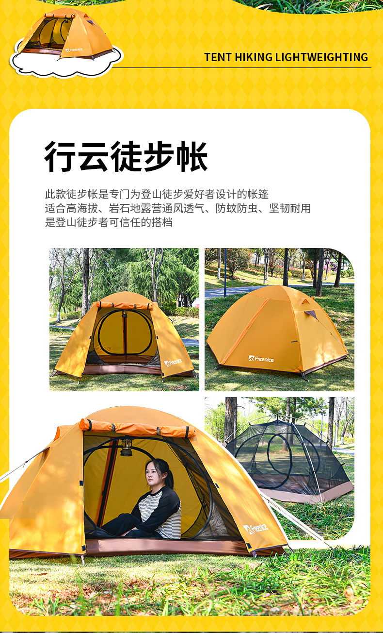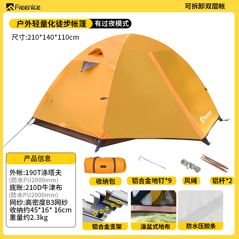 국경 간 하이킹 텐트 야외 캠핑 하룻밤 방비 경량 등산 캠핑 휴대용 알루미늄 합금 방풍 더블 레이어스토어 가기