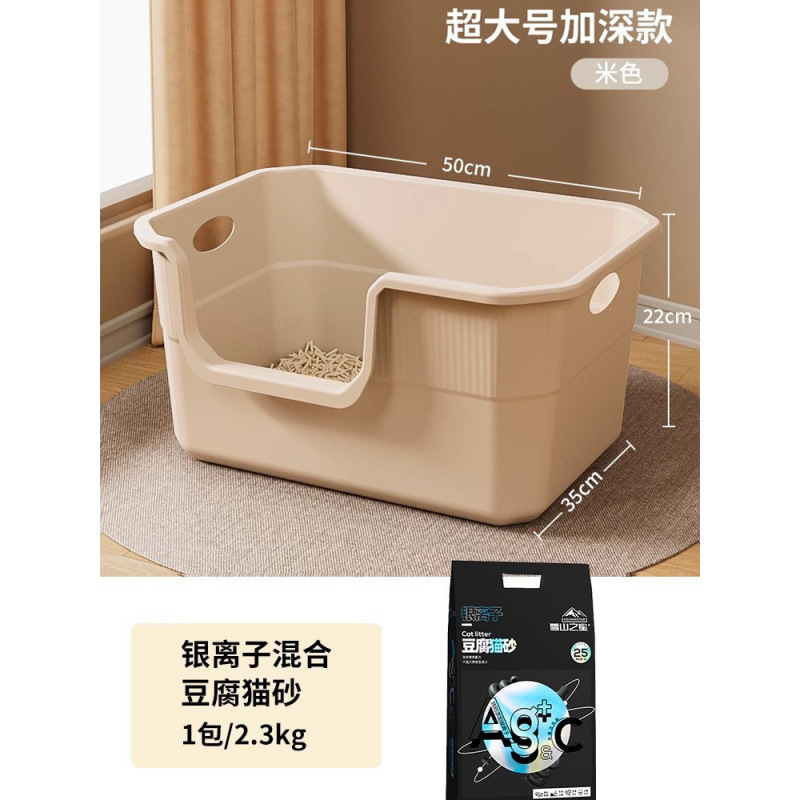 • [고양이 모래 세트] 베이지 대형 욕조 고양이 배변 상자 50CM + 혼합 두부 고양이 모래 1 봉지 ✦ ✦