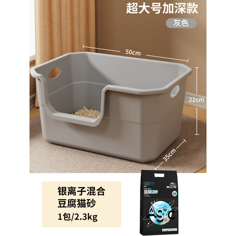 • [고양이 모래 세트] 회색 대형 욕조 고양이 배변 상자 50CM + 혼합 두부 고양이 모래 1 봉지 ✦ ✦